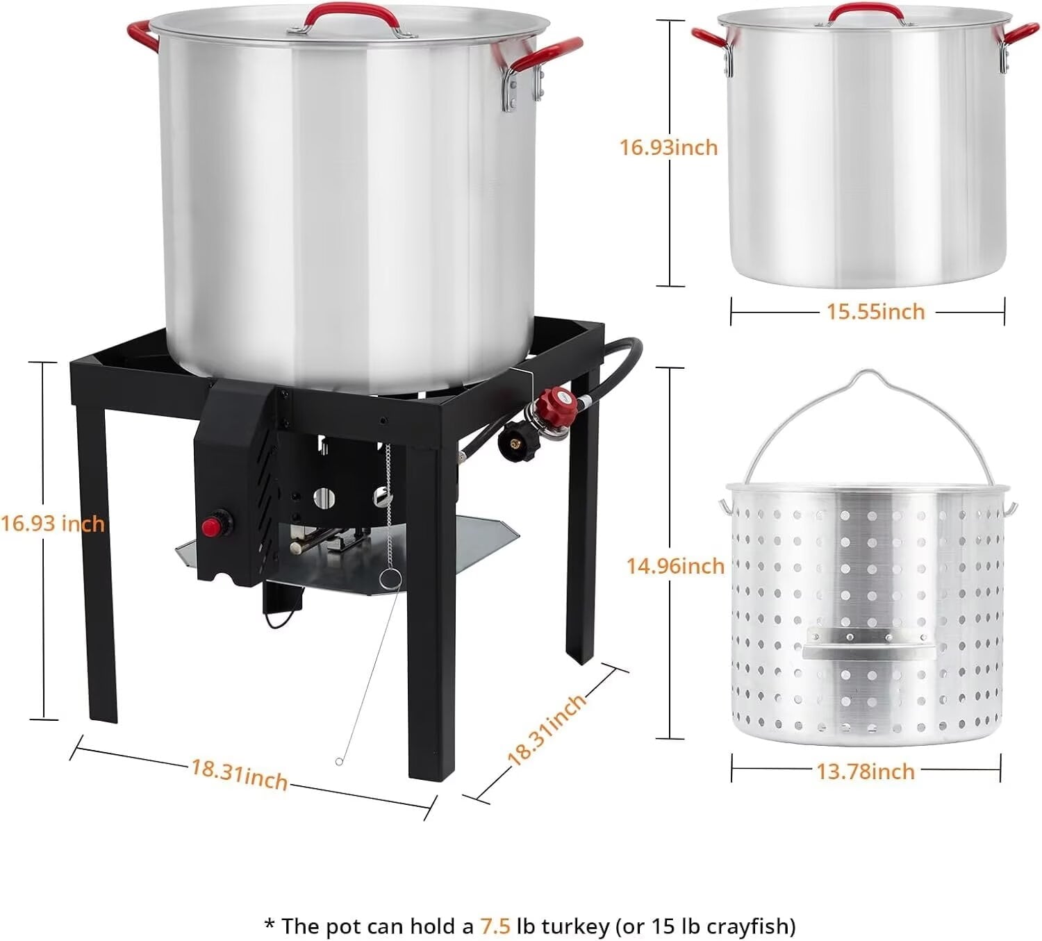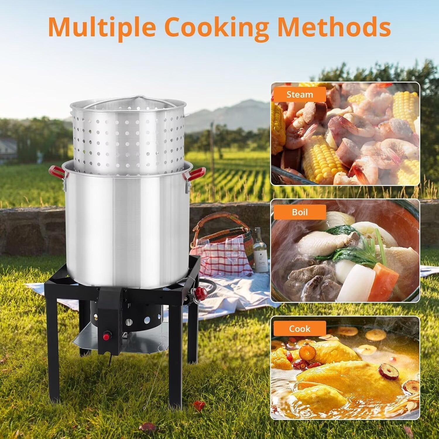• Generous Capacity: The 60-quart pot is perfect for preparing large quantities of seafood, making it easy to host family and friends during festive celebrations or outdoor adventures.