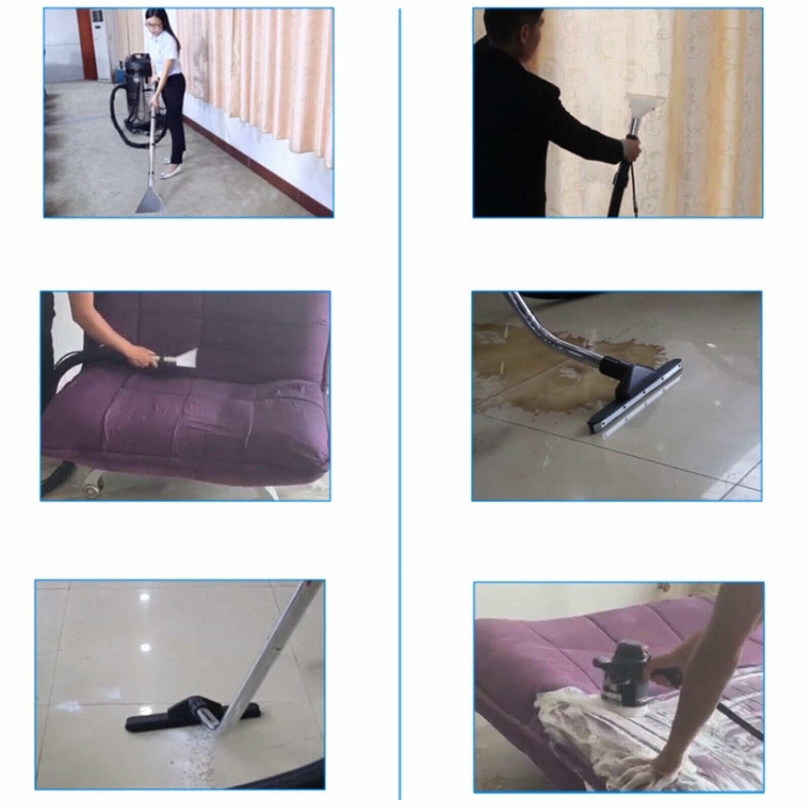 use, such as in hotels, dry cleaners, offices, housekeeping companies, conference halls, restaurants, etc. It is used to clean carpets, floors, sofas, curtains, gaps, and corners with dust and water stains.