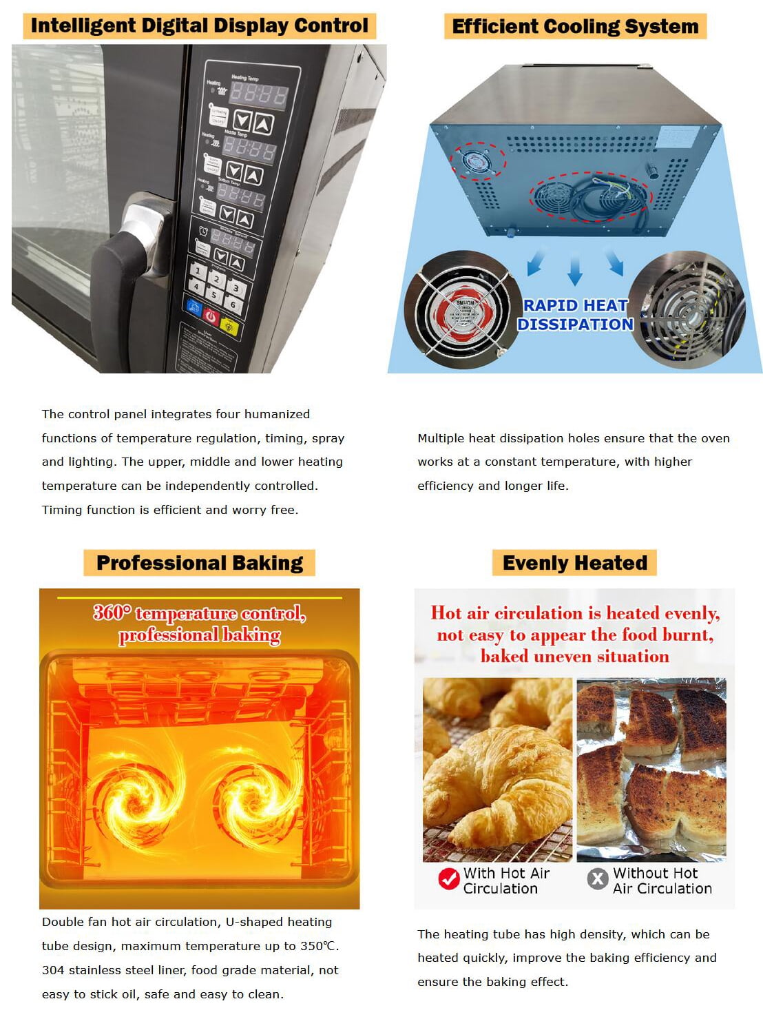 - Multiple heat dissipation holes ensure that the oven works at a constant temperature, with higher efficiency and longer life.