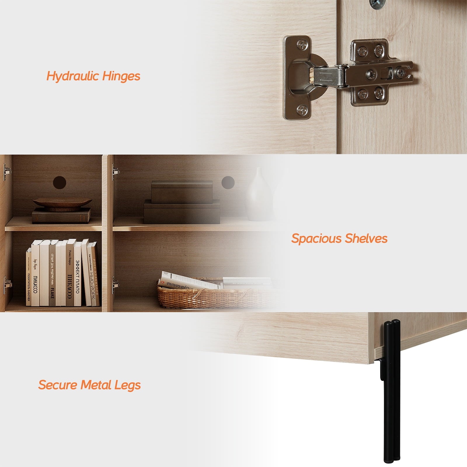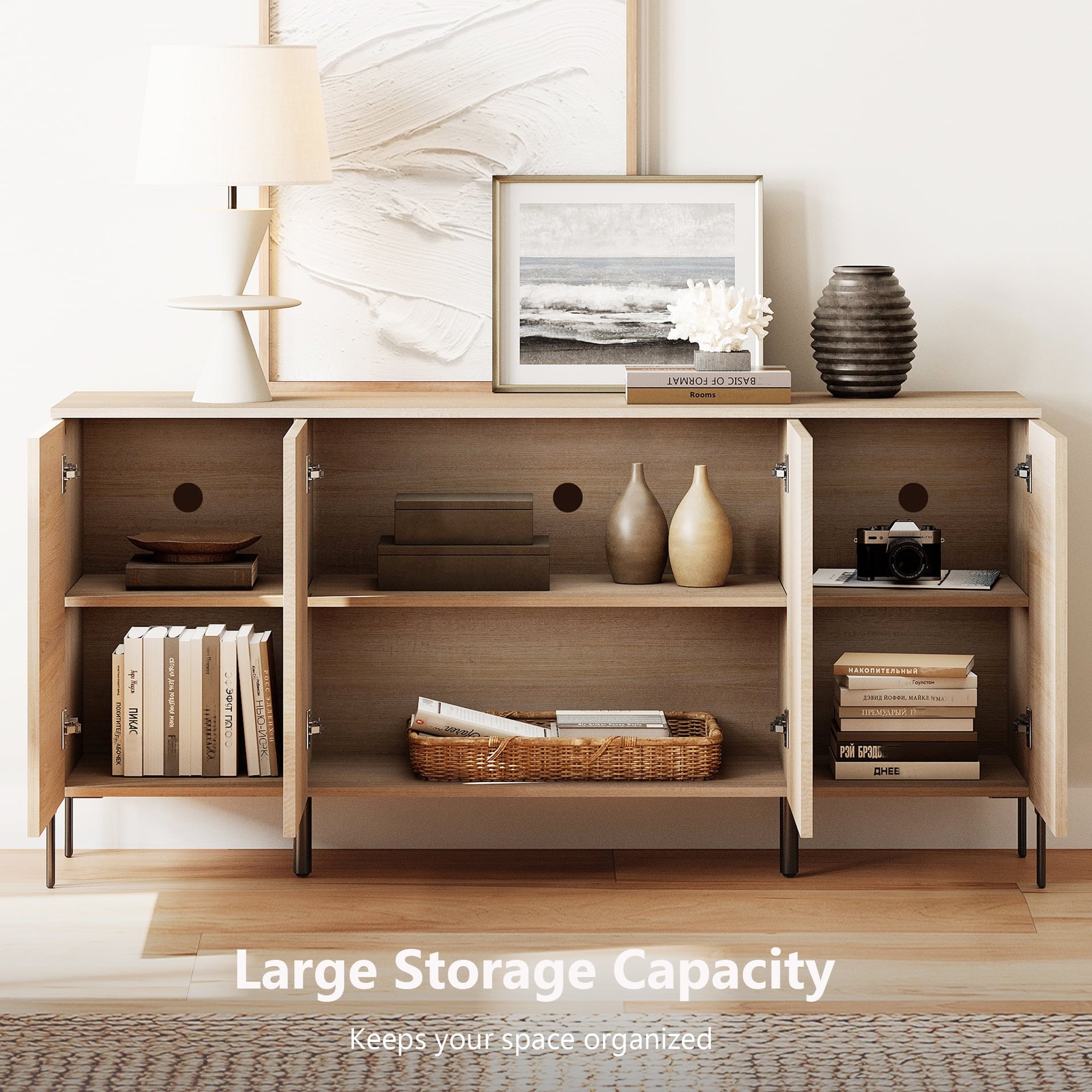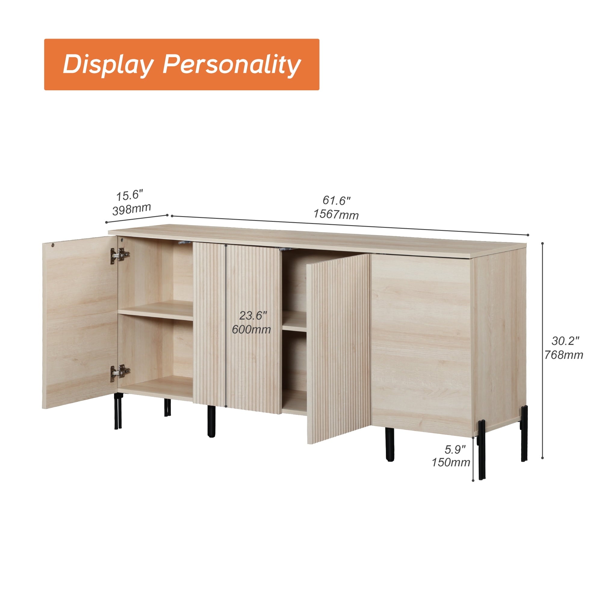 - Ample Storage Space: Four cabinet doors reveal spacious shelves, perfect for storing media components, gaming consoles, or cables. The top surface offers plenty of space for your TV and sound system.