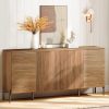 - Modern Design with Cylindrical Legs: The modern tv stand features a sleek, contemporary design with double thin cylindrical legs, adding a refined touch to the overall look. The clean lines, subtle reeded texture, and elegant legs bring a sophisticated, modern appeal to any space.