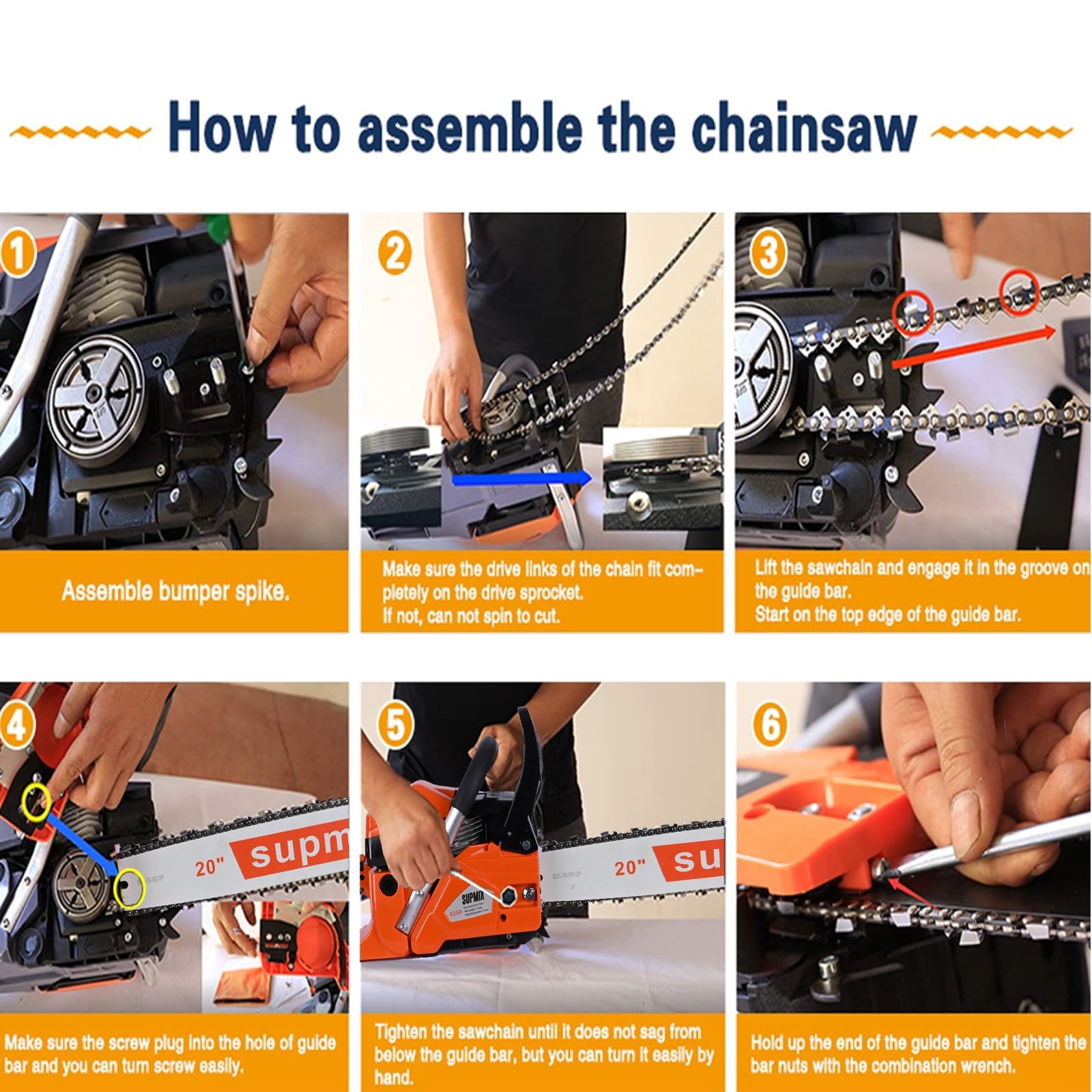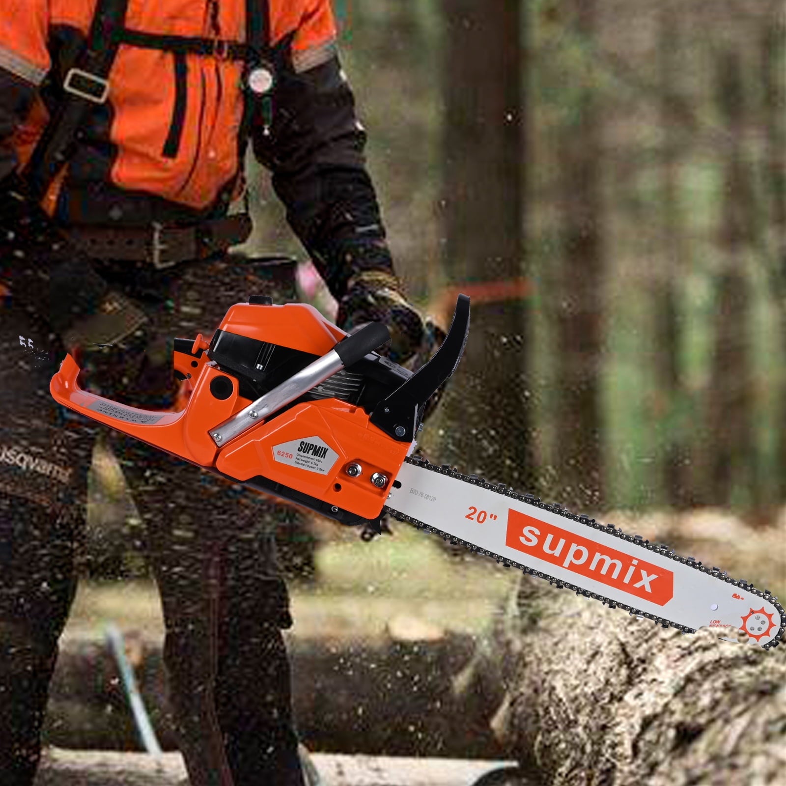 • 20-Inch Guide Bar: Supmix gas chainsaw with a 20-inch bar and low-kickback chain for efficient cutting of larger logs and branches, making it suitable for tree trimming and firewood preparation