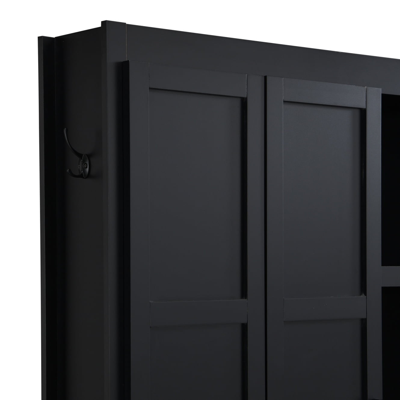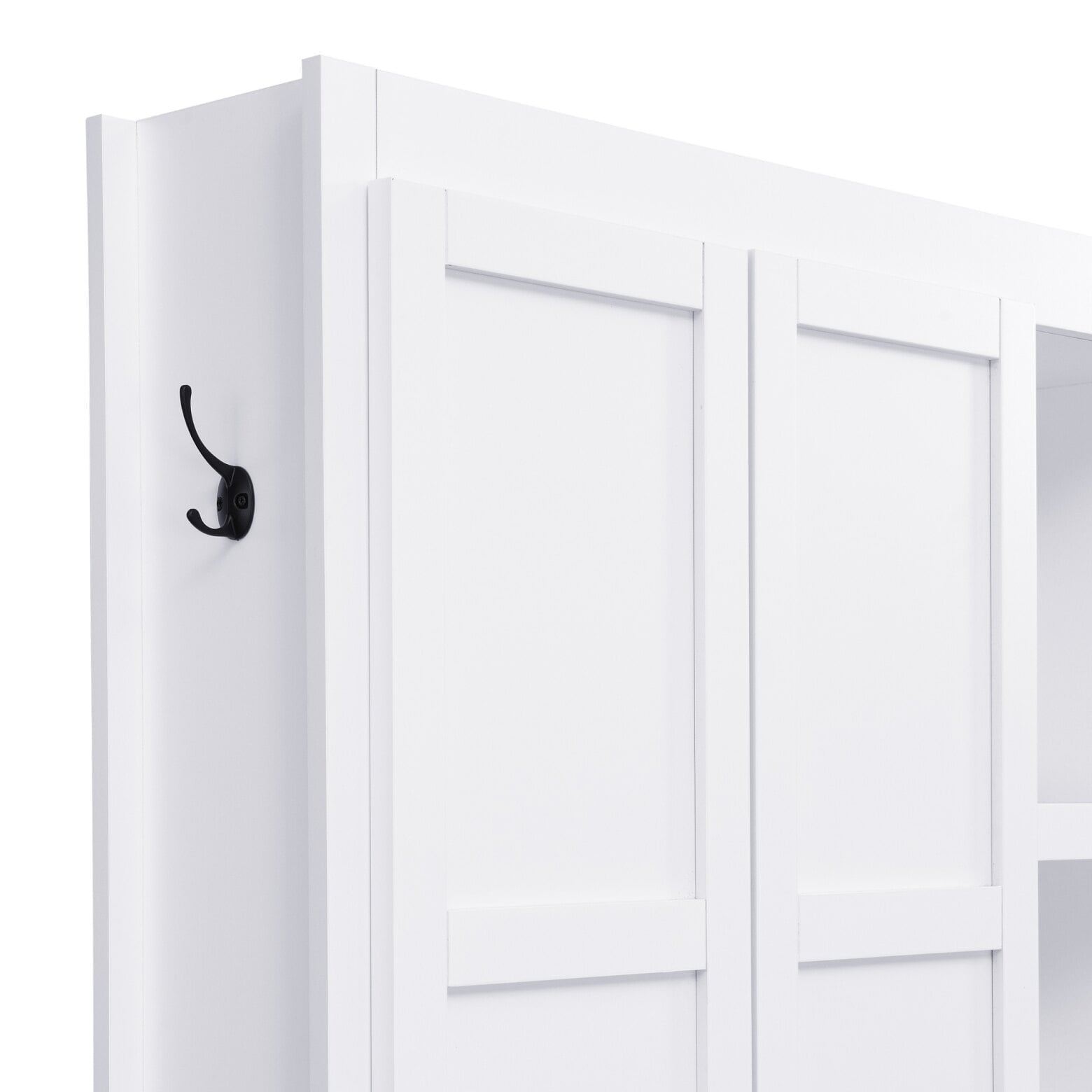 - 【Versatile Storage Options】This hall tree features four cabinets, each equipped with a hook for easy hanging. Additional hooks on both sides provide convenient storage for umbrellas, keys, and other essentials within arm’s reach. The open compartments at the bottom and in the middle also provide you with different storage options.