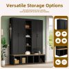 - 【Modern Farmhouse Aesthetic】The wood-grain finish on the seat panel infuses the cabinet with a cozy farmhouse charm, effortlessly complementing various home decor styles. Paired with sleek black handles, this hall tree will seamlessly fit into any corner of your home, enhancing both functionality and aesthetic appeal.