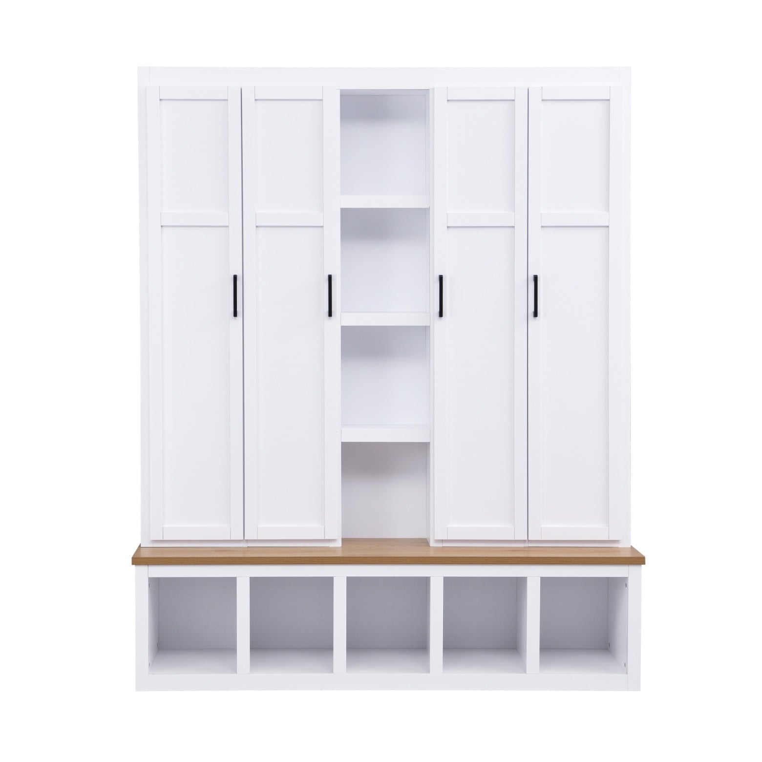 - 【4-in-1 Design】This hall tree combines a storage unit, display shelf, bench, and shoe cabinet into one seamless product, making it effortless to keep your entryway organized and clutter-free. The versatile design maximizes functionality, ensuring every item has its place for a tidy, welcoming entrance.