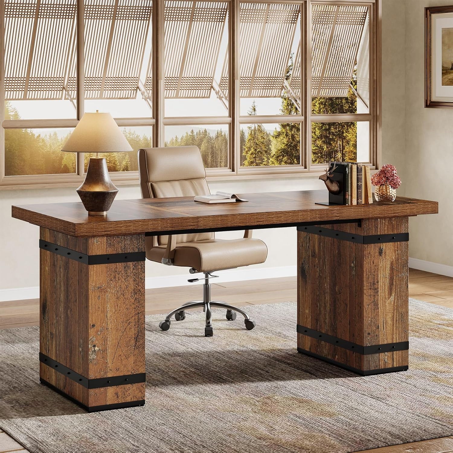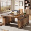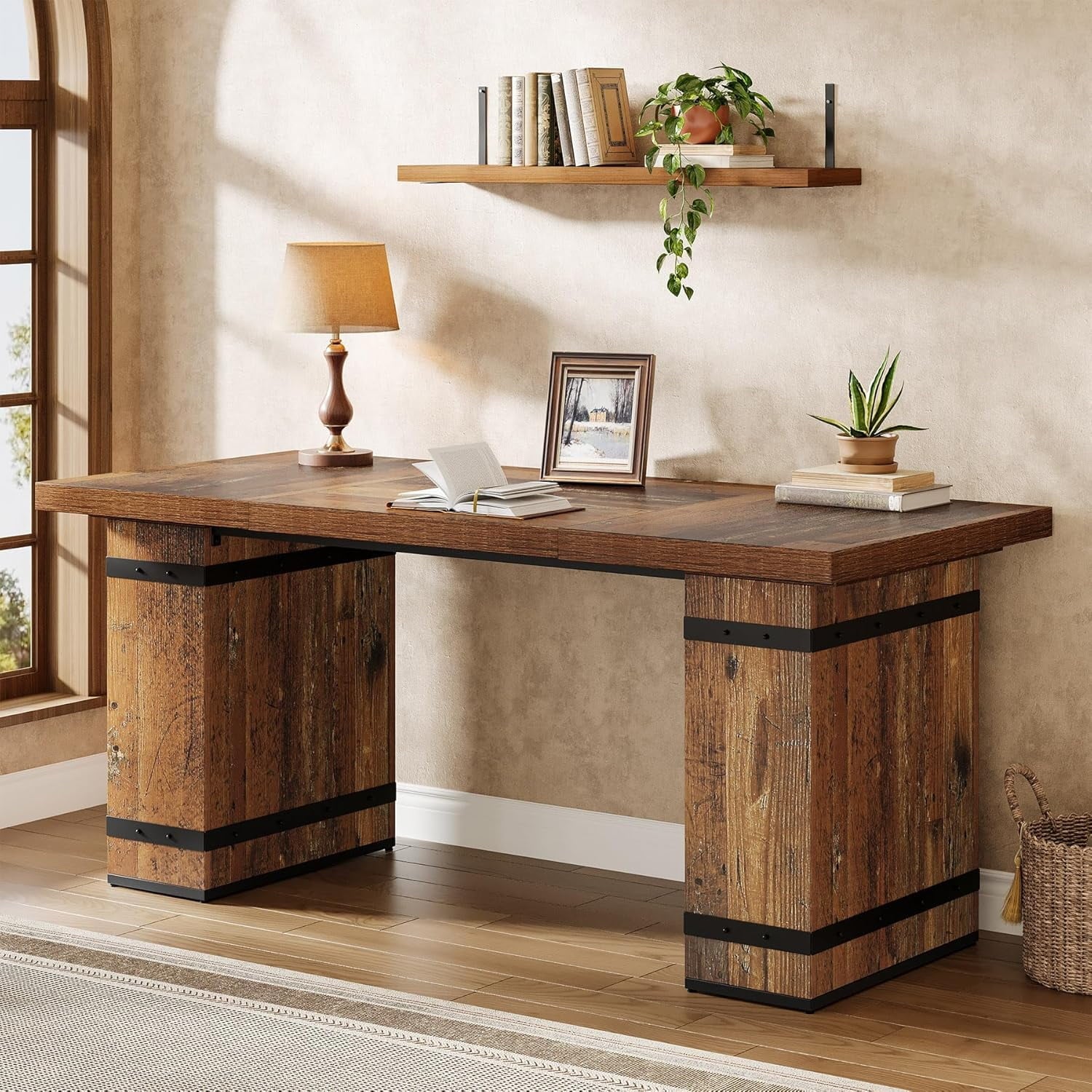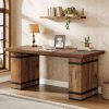 63-Inch Executive Desk, Farmhouse Home Office Desk with Heavy Duty Base, Large Business Workstation Table for Home Office, Mix-Brown