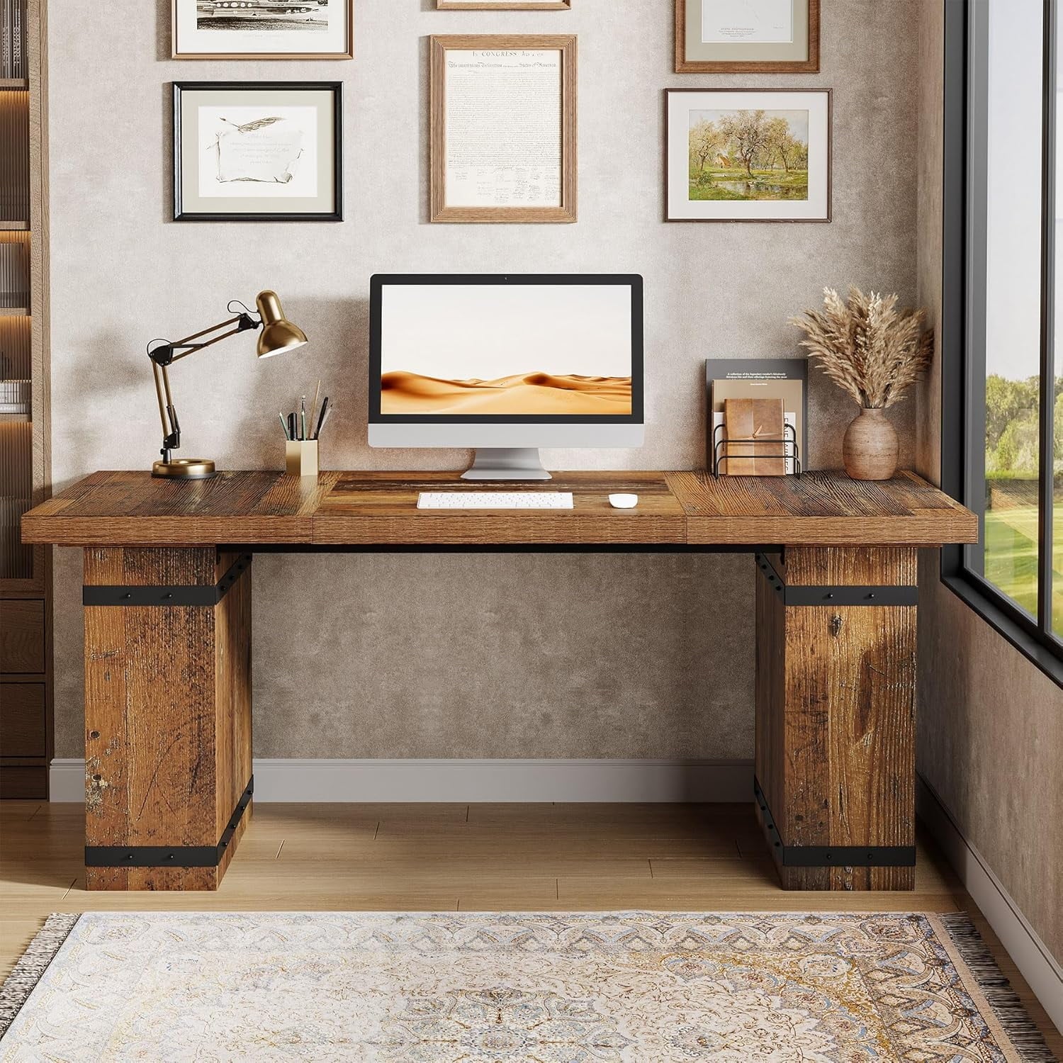 - Sturdy Construction: Designed for stability and durability with a 1.97″ thick desktop made from 3 wooden planks, offering ample space for office essentials.