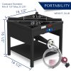 - HIGH PRESSURE- Included the 20 PSI “CSA” certificate regulator(QCC type1), 47-inch steel braided hose, spanner, hook, and connector for your convenience. The thickened base and heightened windscreen protect the burner’s flame from strong breezes is ideal for outdoor cooking.