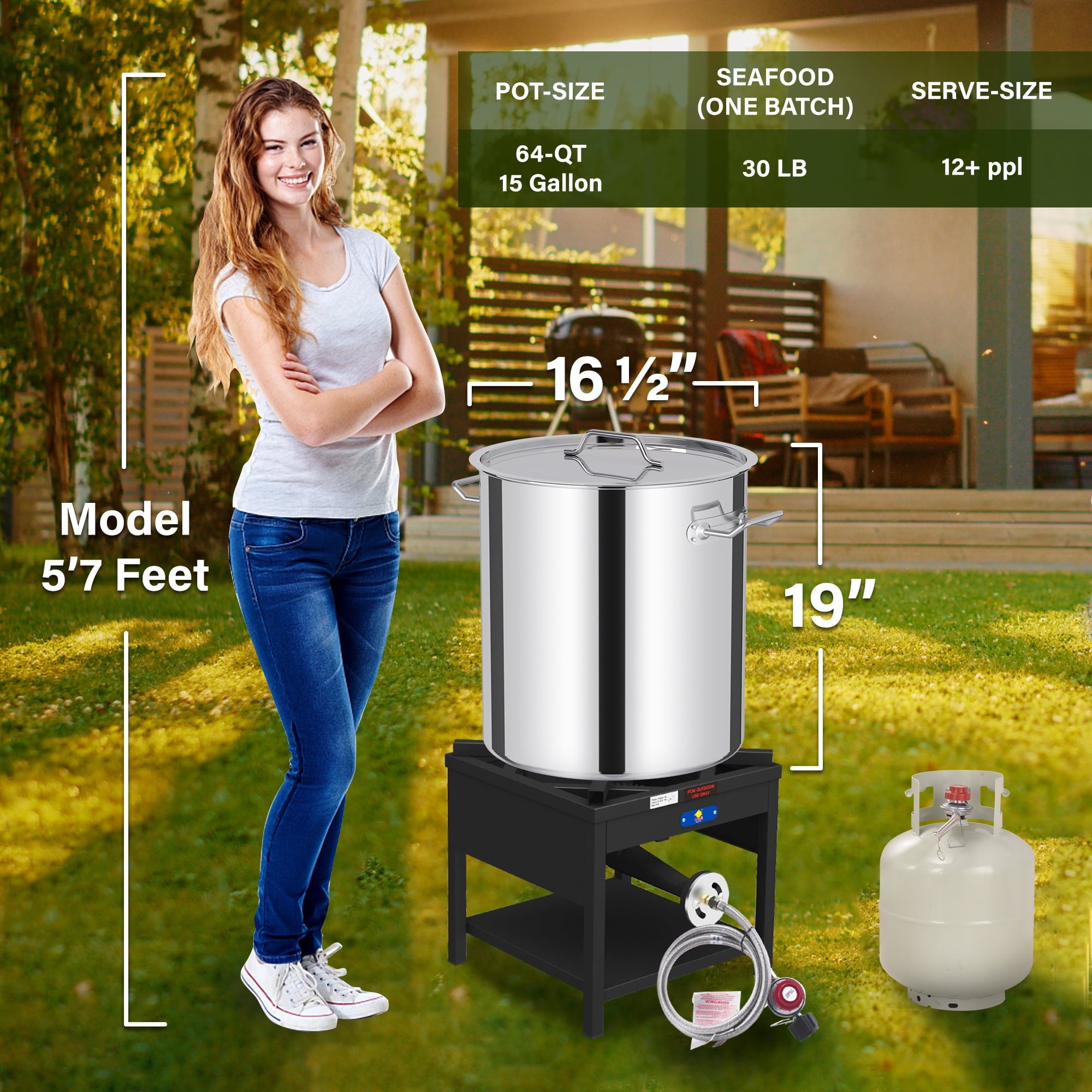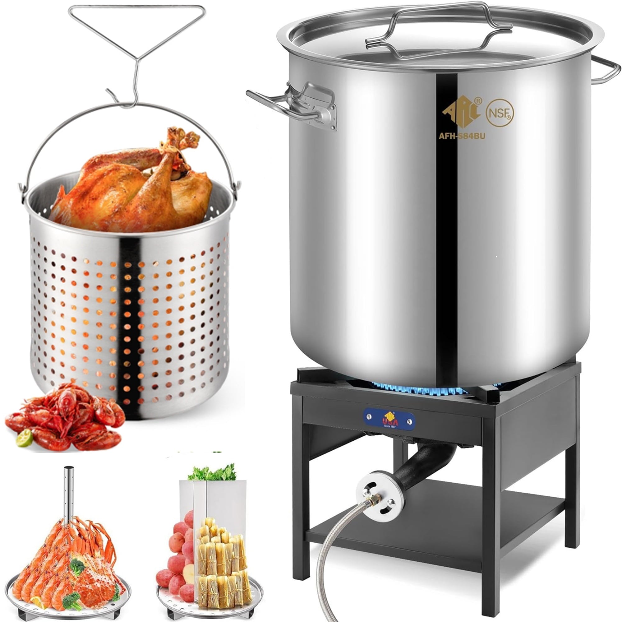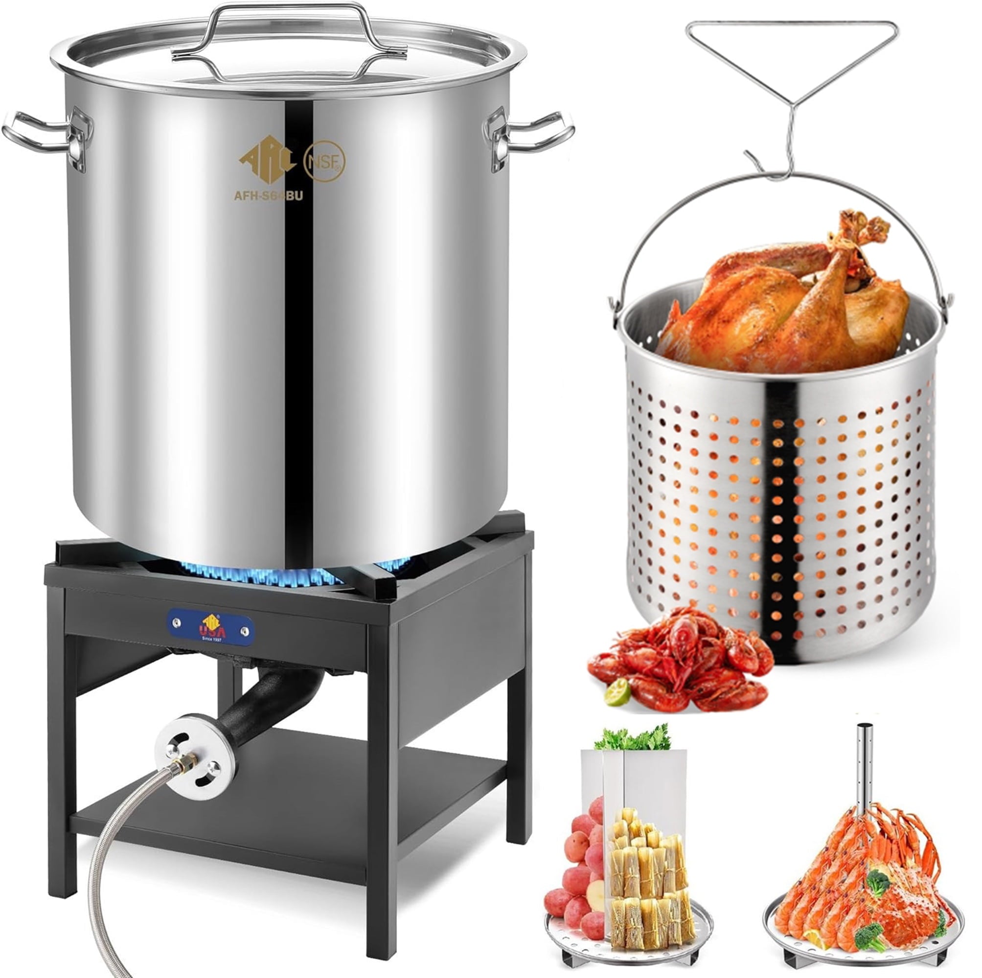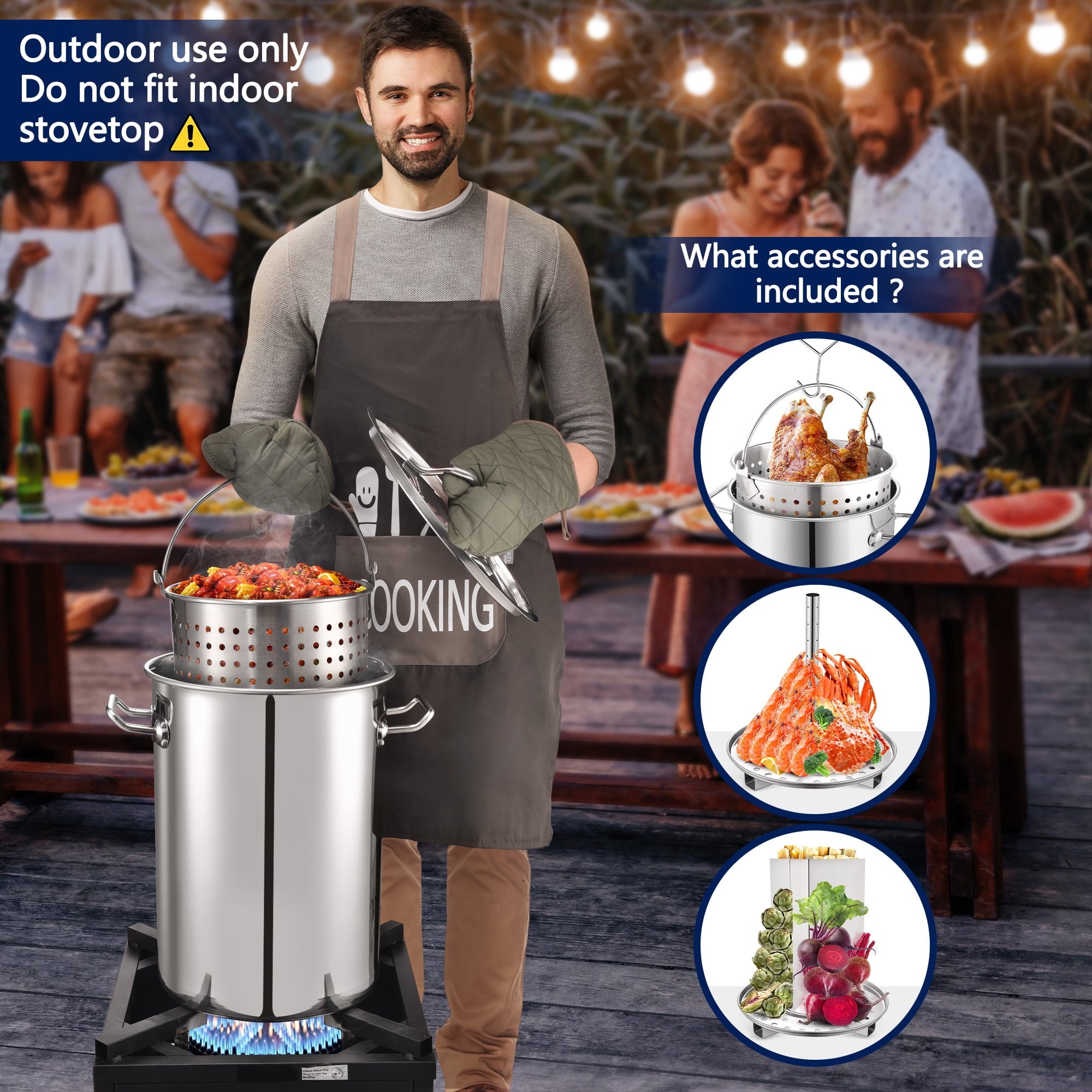- Versatile Large Stock Pot: This large stock pot is available in different sizes. You can enjoy this stainless steel pot all year round for crawfish boiler, lobster boils, shrimp boils, turkey frying, homebrewing, and tamale steaming. Due to the large size, these stock pots are not fit for indoor stoves.