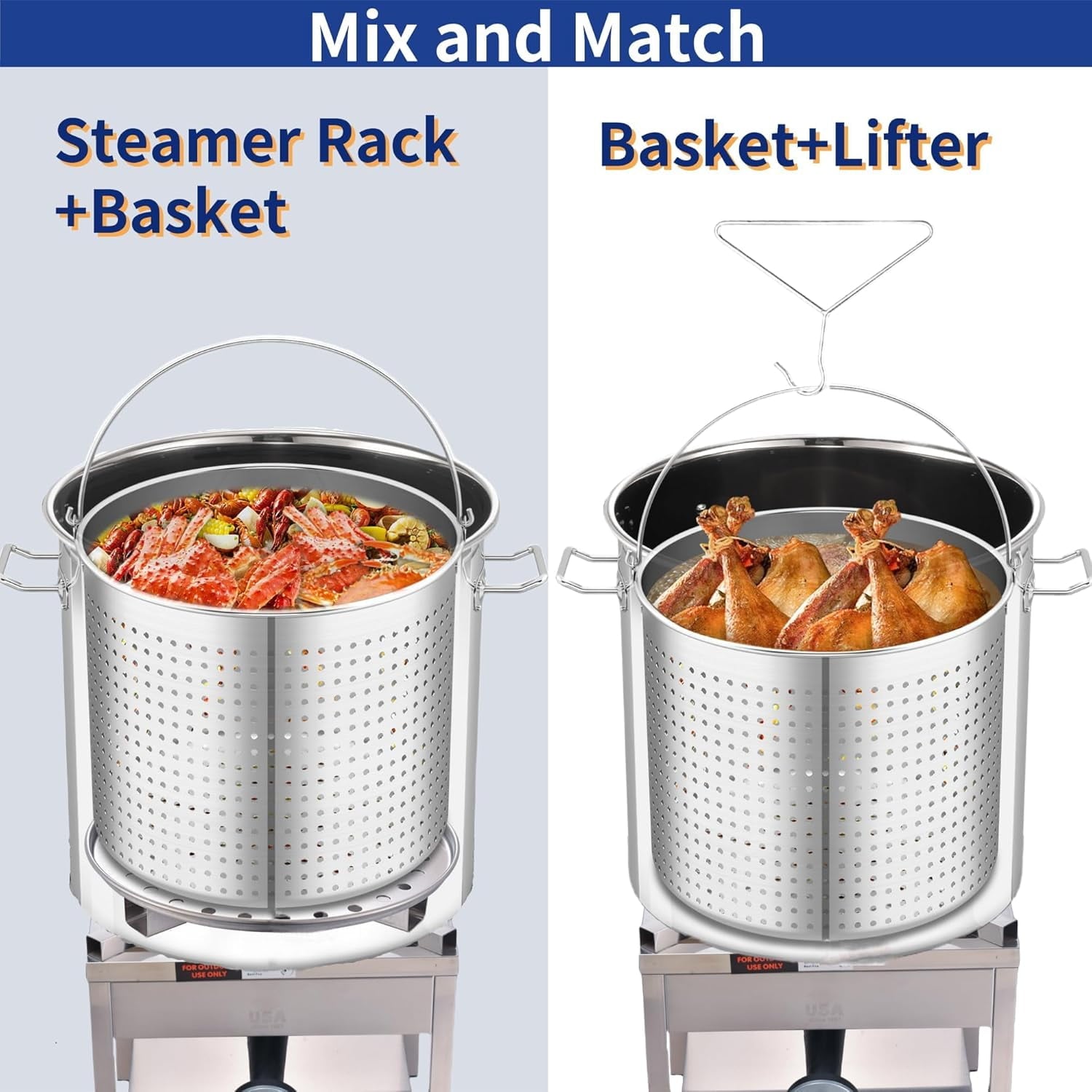 - Variety Of Combinations For Great Cooking: Great choice for frying turkey, cooking crawfish, seafood, shrimp, crab, lobster and tamale steamer for your party