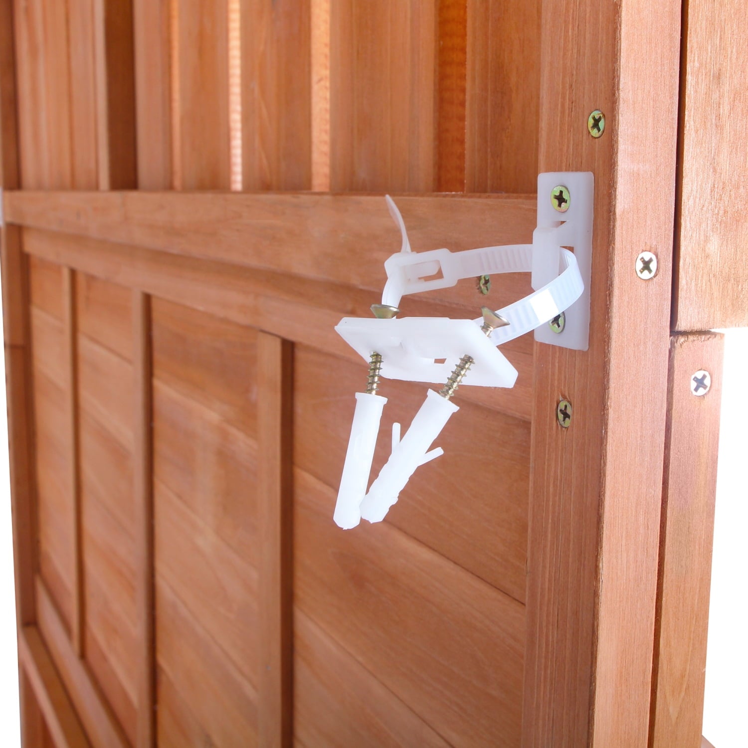 Designed with safety in mind, this potting bench features an anti-falling safety device for secure wall-mounting, ensuring stability. Supportive bars are also included to further strengthen the lower shelves.
