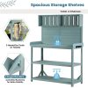 - [Ample Storage Shelves] If you are a big fan of gardening, this potting bench will be a great choice. With 65″ total height and 36″ potting height, 4 ample storage shelves are designed to keep your tools handy and in one place without bending over or squatting. Constructed with 1 upper shelf including 2 grids and 3 lower shelves, this potting table is ample enough for not only small tools but also extra soil, pots and other gardening supplies.