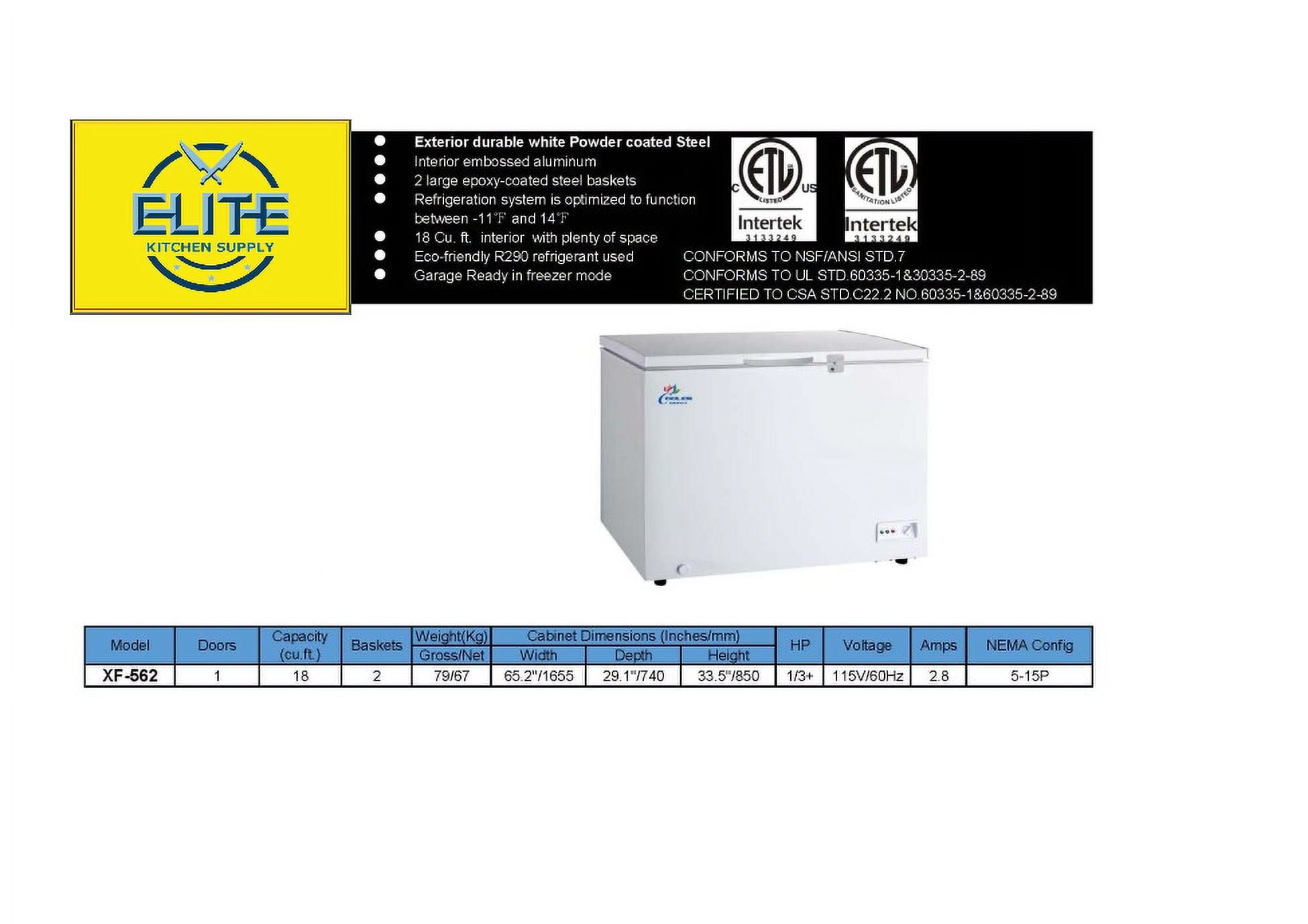 • Storage Capacity/ Effective Volume: 18 Cu. Ft.
