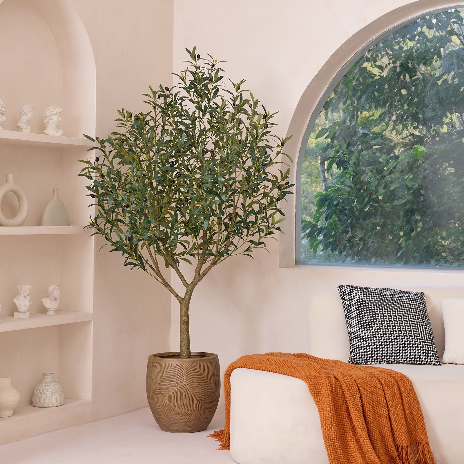 4.This large decorative faux olive tree is suitable for living rooms,bedrooms,corridors,and near office desks.Place it towards a corner of a room to give it a good airy feel. Suggest Area: Recommended for indoor use only or sheltered outdoor. Notes: Item may need to be re-shaped when removed from box. Product Warranty The fake plant was packaged very well.We value each customer and endeavor to offer excellent service during the purchase.Please feel free to contact us if you have any issues with our fake trees,and we will try our best to ensure your satisfaction.
