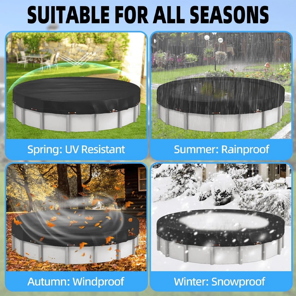 Upgraded Craftsmanship: To enhance your experience, we employ double-needle stitching and add waterproof tape on the backside, suitable for round pools, inflatable pools, hot tubs, and round trampolines.