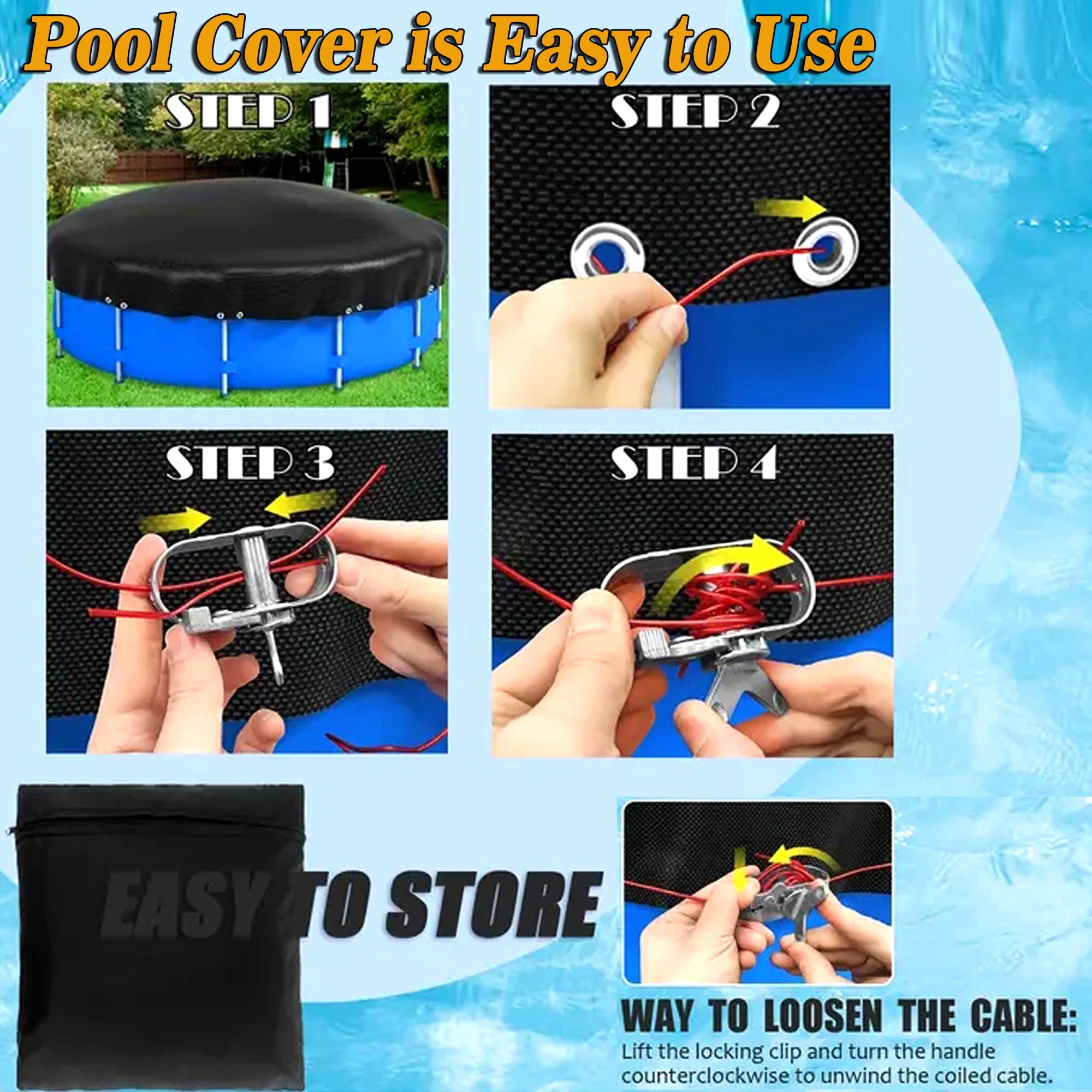 Outstanding Stability: Worried about the cover being blown away by the wind? Unlike drawstrings, we use high-quality metal winches and steel core cables. Simply tighten the winch to secure the cable, firmly anchoring the cover to the pool and providing strong wind resistance, ensuring excellent protection for your pool in any season or weather condition.