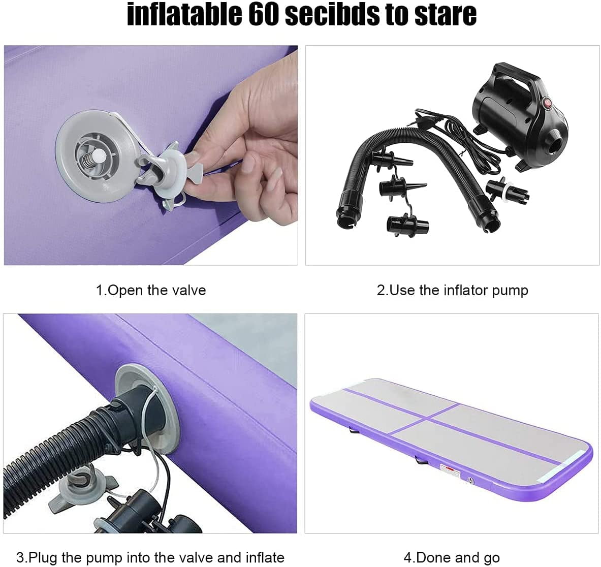 ABOUT ACCESSORIES: You will receive an Electric Air Pump for free when you purchase our product. Only take Less than 1 minutes to inflate or deflate. No noise during training. After inflation, the Air tumbling will maintain its pressure for days.