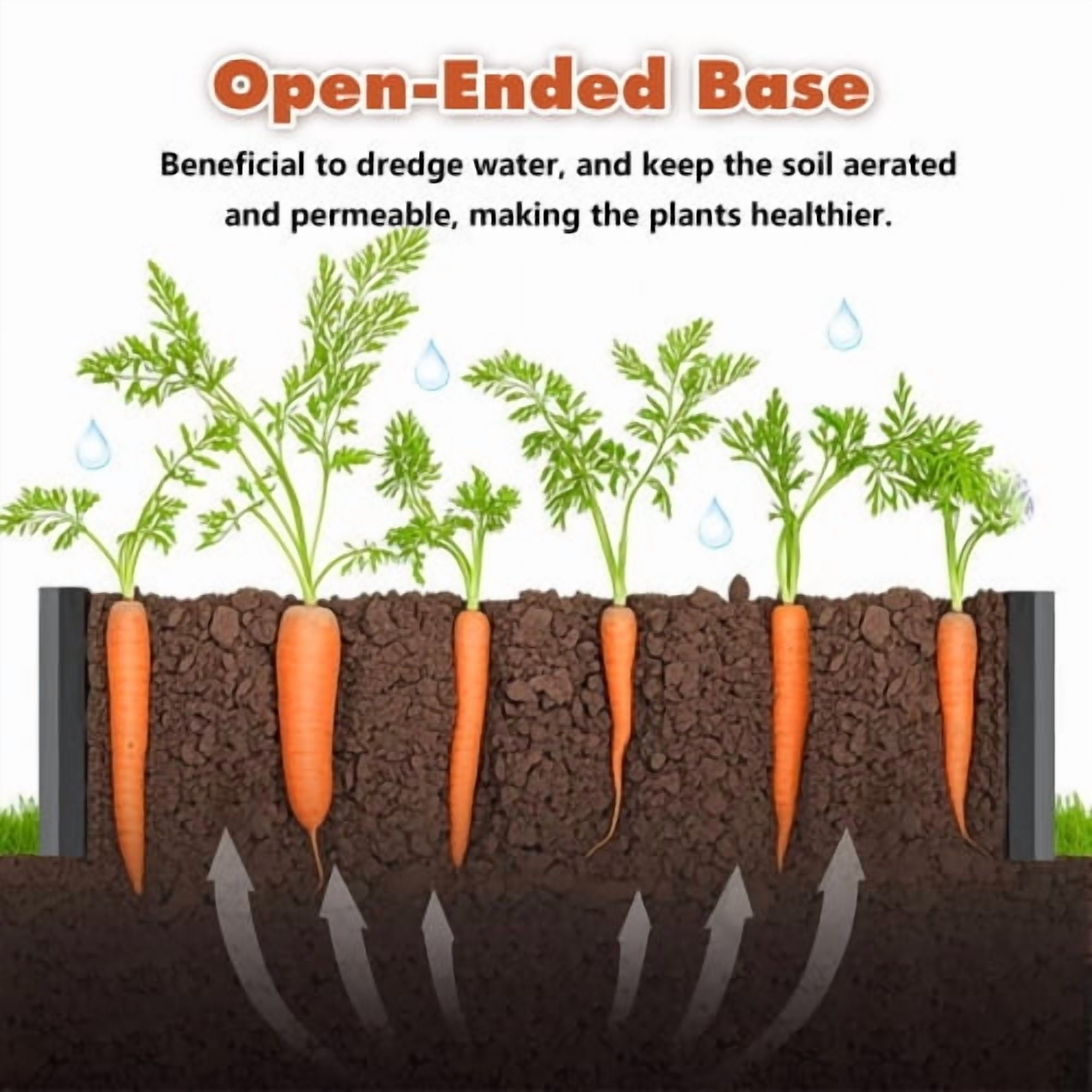 - 【Safe and stable】The edge of the planting bed is covered with hemming technology to prevent it from being scratched by sharp iron sheets. equipped with two Reinforcing Rods,keep your garden beds looking their best for years to come.Additionally, corner protection has been added to prevent bumps. Internal steel stabilizing struts help the metal panels retain their shape, preventing warping and soil seepage over time.
