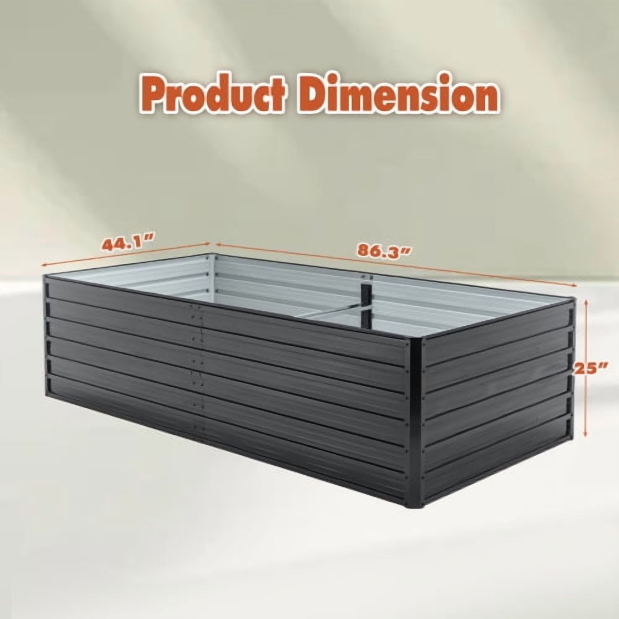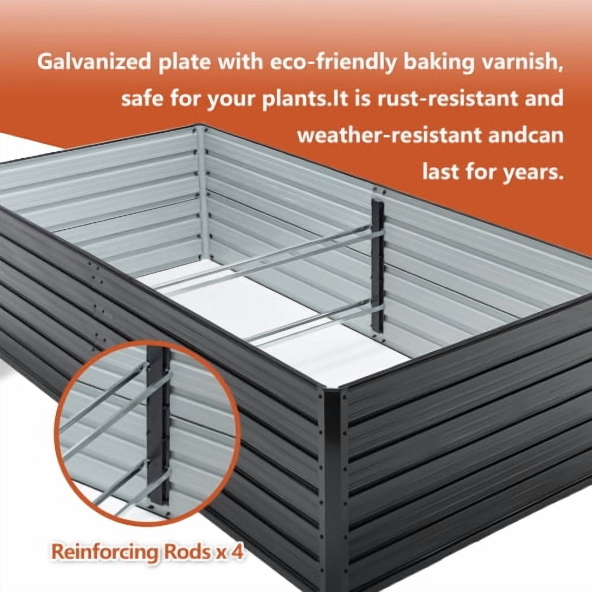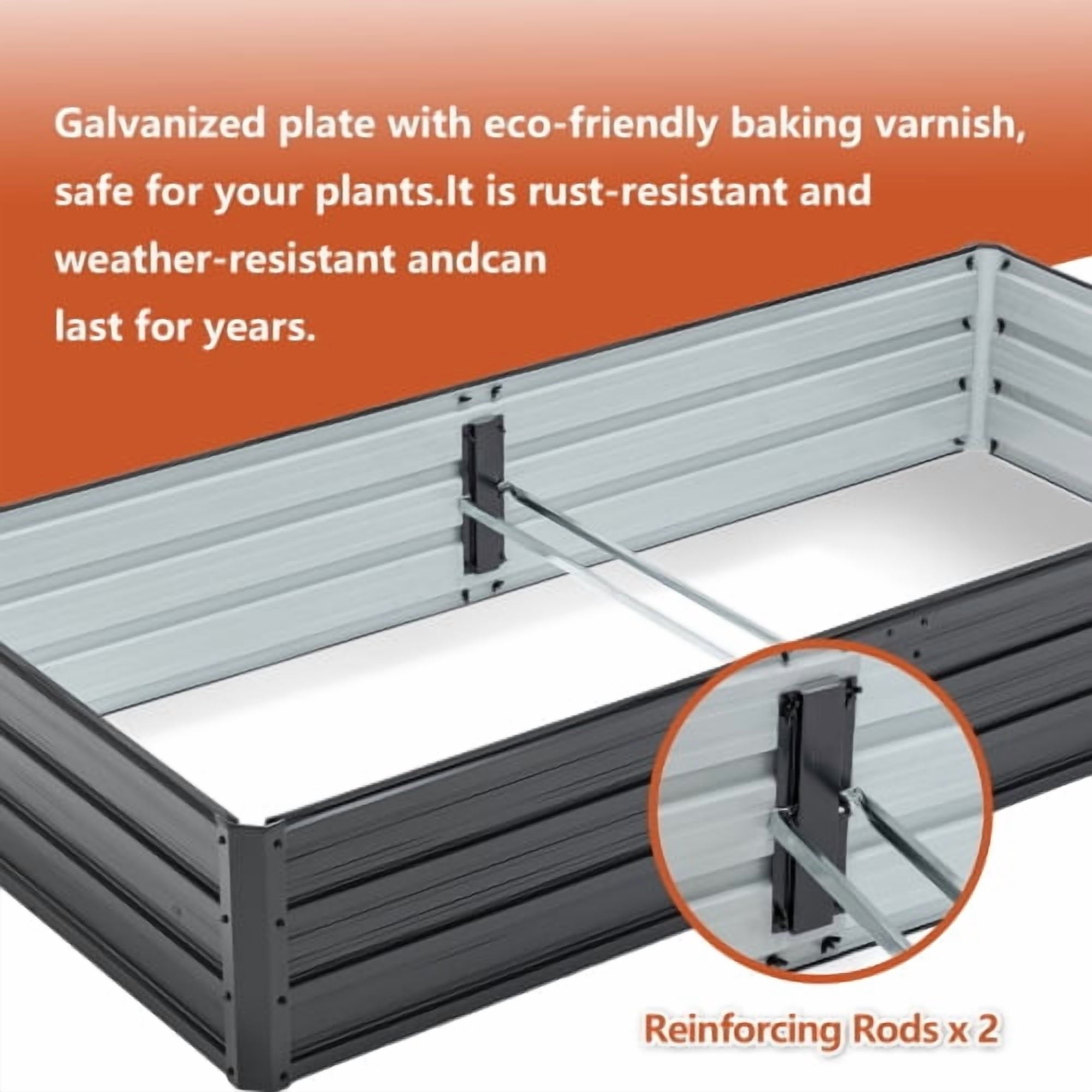- 【Durable Galvanized Raised Garden Bed】Galvanized plate with eco-friendly baking varnish,which can be exposed to sunlight, rain, snow and other environments for a long time safe for your plants.It is rust-resistant and weather-resistant andcan last for years,equipped with two Reinforcing Rods,keep your garden beds looking their best for years to come.