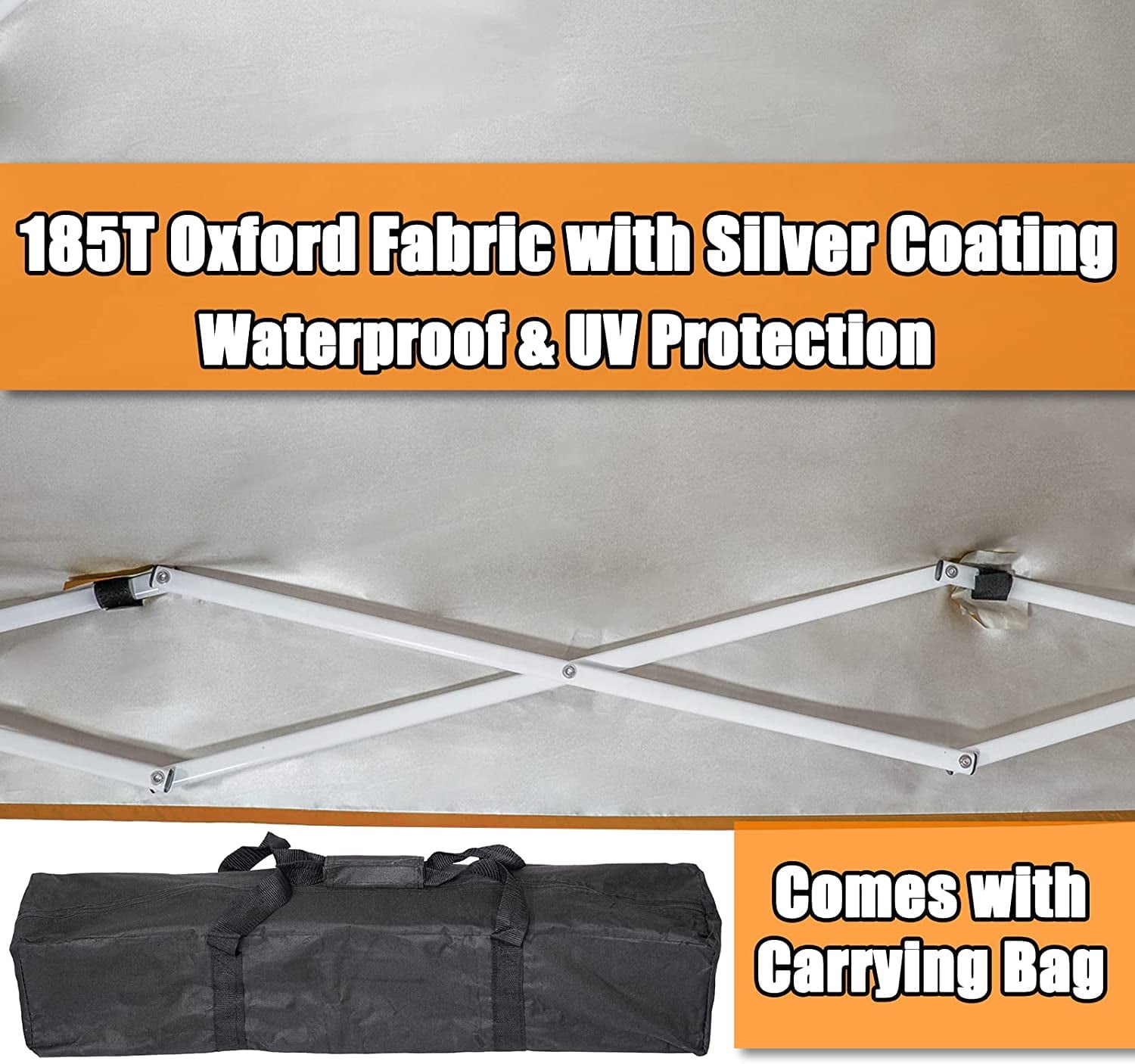 The tent can be used in a variety of outdoor scenes such as beaches, gardens, yards, etc. The top frame has a labor-saving slider device, which can be deployed and locked in place with a simple push.The 185T Oxford cloth with silver color coating has excellent UV resistance and water resistance, which can to provide you with clean and cool shadows. The included portable backpack can be easily incorporated into a tent and carried with you.