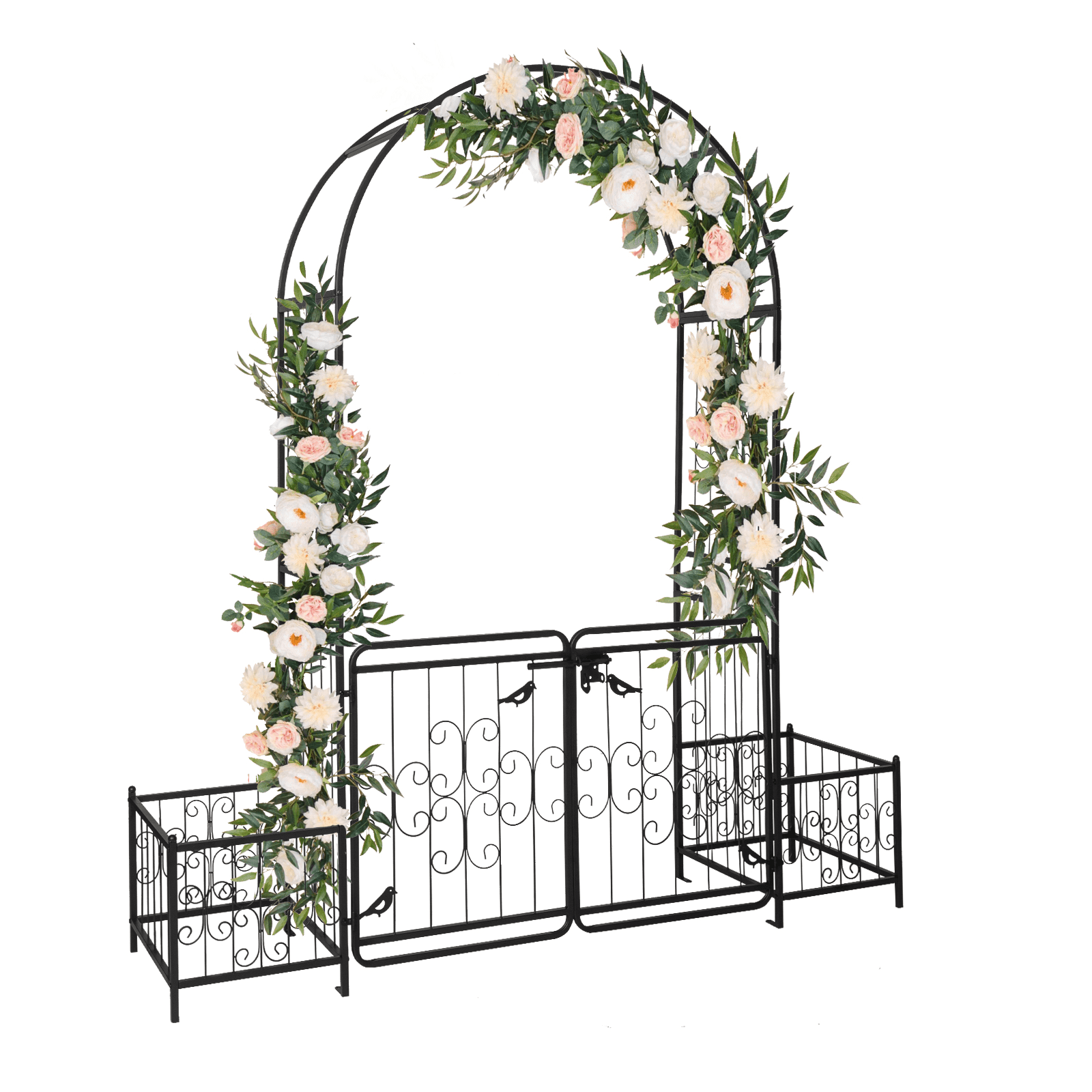 weather-resistant black powder coat, this arch withstands rust and decay while supporting climbing roses, vines, vegetables, and flowering plants. Simply stake it into the ground for instant installation – no tools required!