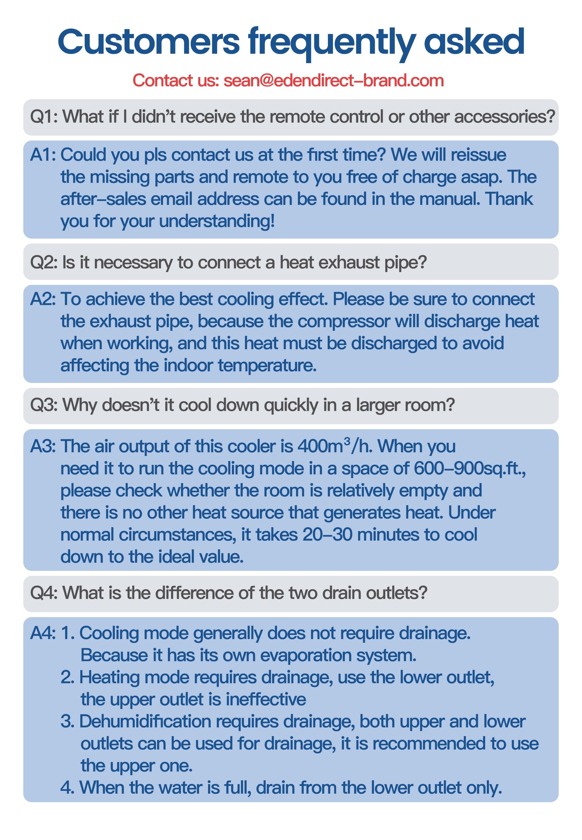 - 【Safe to use】Automatic defrost function in dehumidification and cooling mode. Continuous drainage is available during operation. It also automatically detects the machine temperature and determines if antifreeze is required so that the machine still performs well at low ambient temperatures. The compressor also has stop-and-start protection when the machine is running to maximize safety in use.