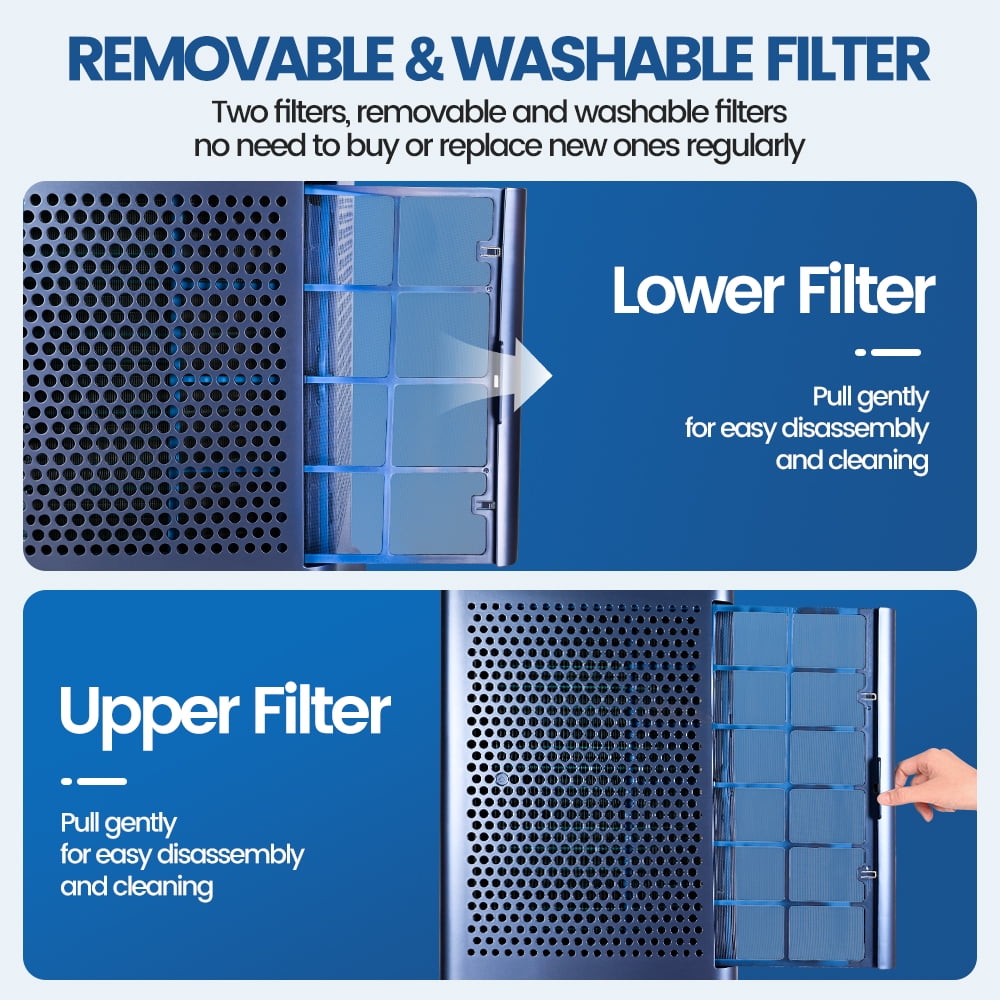 - 【Highly Intelligent Operation】Our portable air conditioner has a dual LCD screen display that allows you to easily switch between power, mode, fan speed, temperature, and negative ion functions without having to get up from the couch or bed.