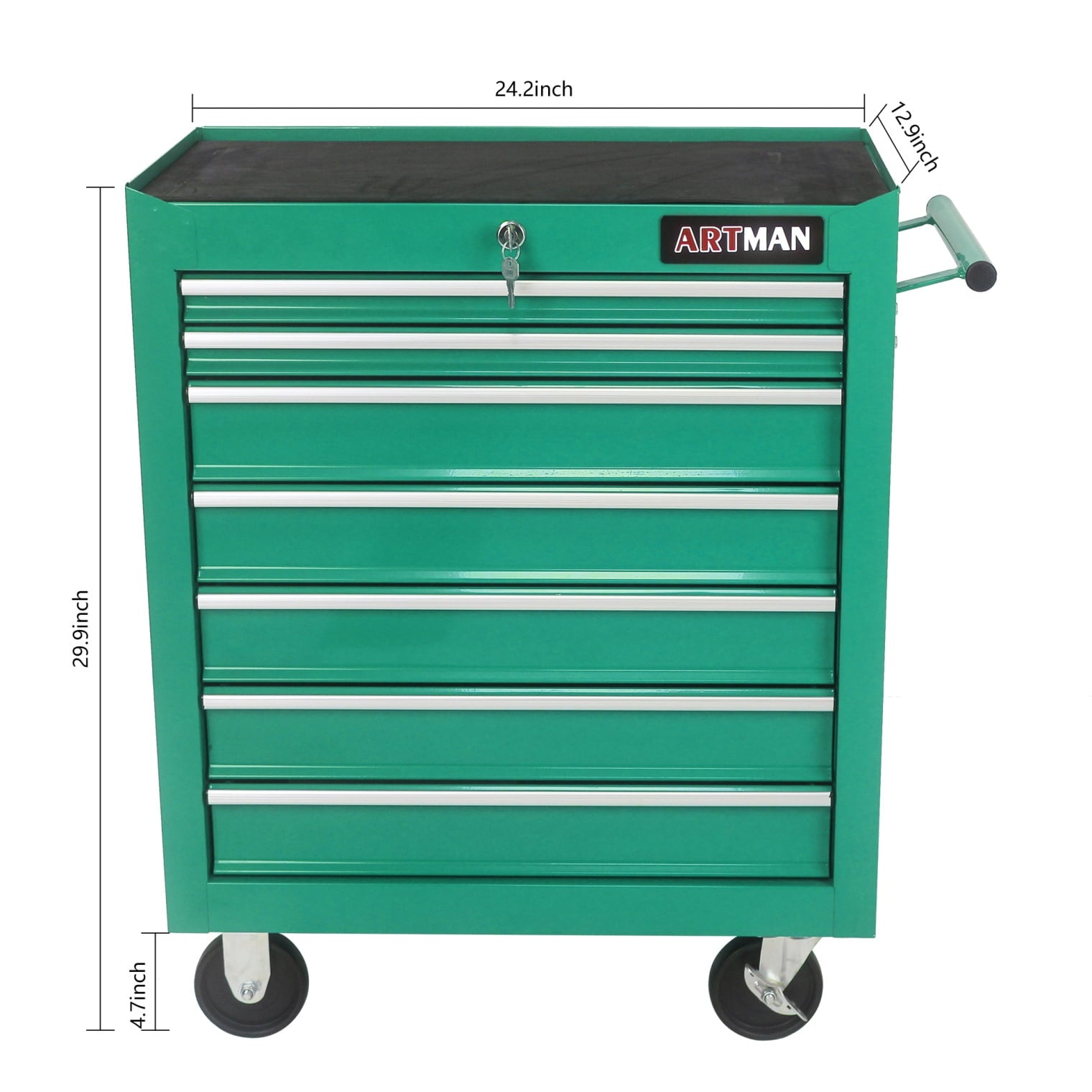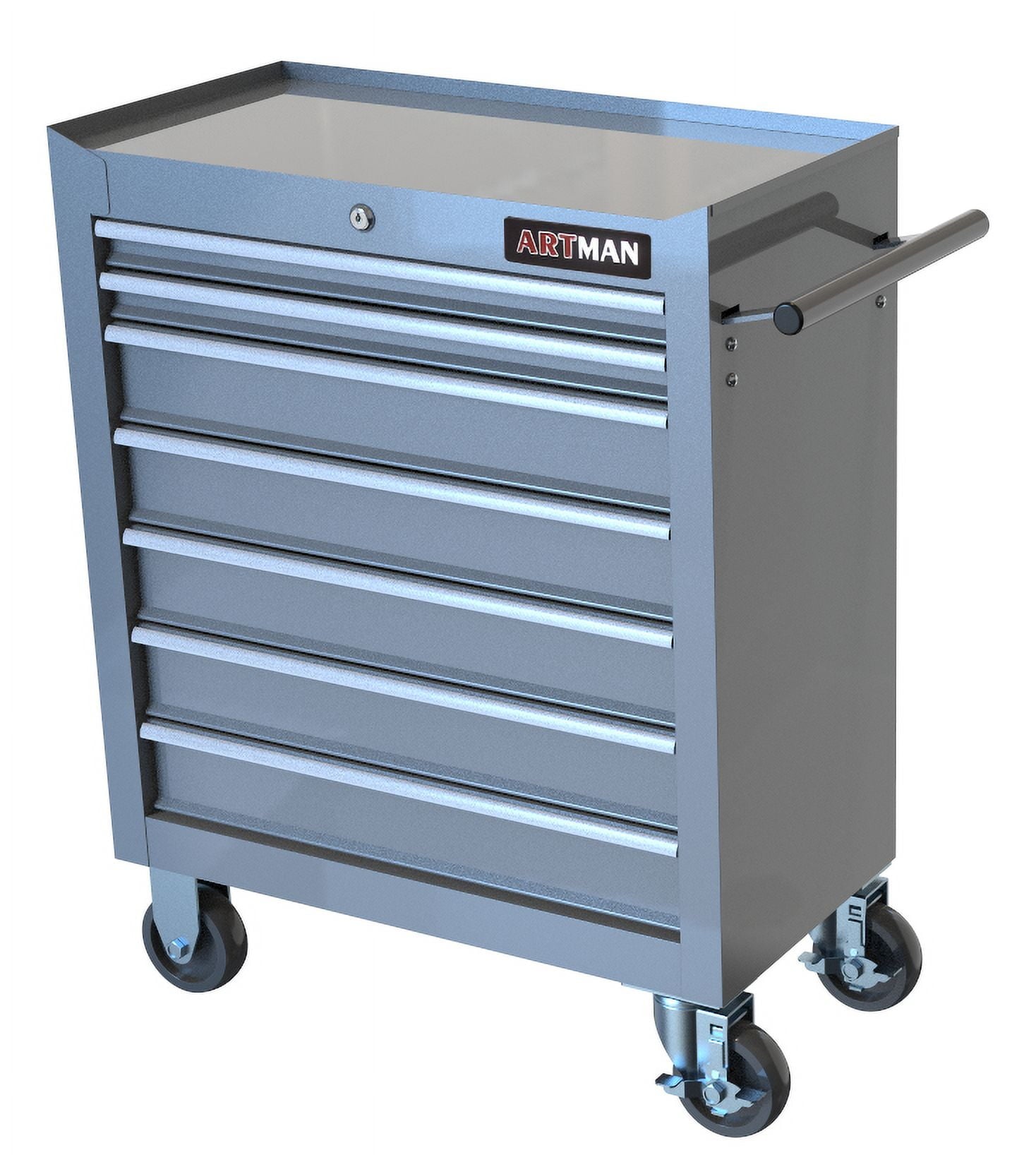 Our 7-drawer metal rolling tool chest with wheels is a versatile and practical tool storage solution for your garage, warehouse, workshop, or repair shop. With a locking system, it ensures the security of your tools and equipment. The toolbox is equipped with wheels, making it easy to move around and transport your tools wherever you need them. The 7 drawers provide ample storage space for organizing your tools, parts, and accessories. You can easily categorize and access your tools with the multiple drawers, keeping everything in order and within reach. The sturdy metal construction ensures durability and long-term use, making it a reliable choice for heavy-duty storage needs.The locking system adds an extra layer of security, keeping your valuable tools safe and preventing unauthorized access. This is especially important in busy environments like workshops or repair shops where tools may be shared or stored for extended periods.The toolbox’s wheels allow for easy mobility, making it effortless to move the tool chest around your workspace or transport it to different locations. This feature is especially useful when you need to bring your tools to different areas of a large garage or workshop.