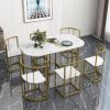 Elegant Dining Chairs: This 7-piece dining chair set features a unique triangular seat and semi-circular backrest that enhances your dining experience, providing maximum comfort and style. Each chair features a sleek, modern design that perfectly complements the modern look of the table. Perfect for hosting intimate gatherings or family dinners, this set adds functionality and elegance to your living space.