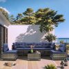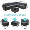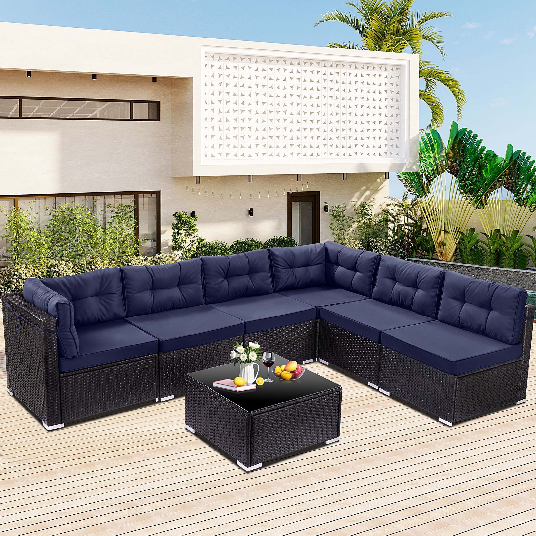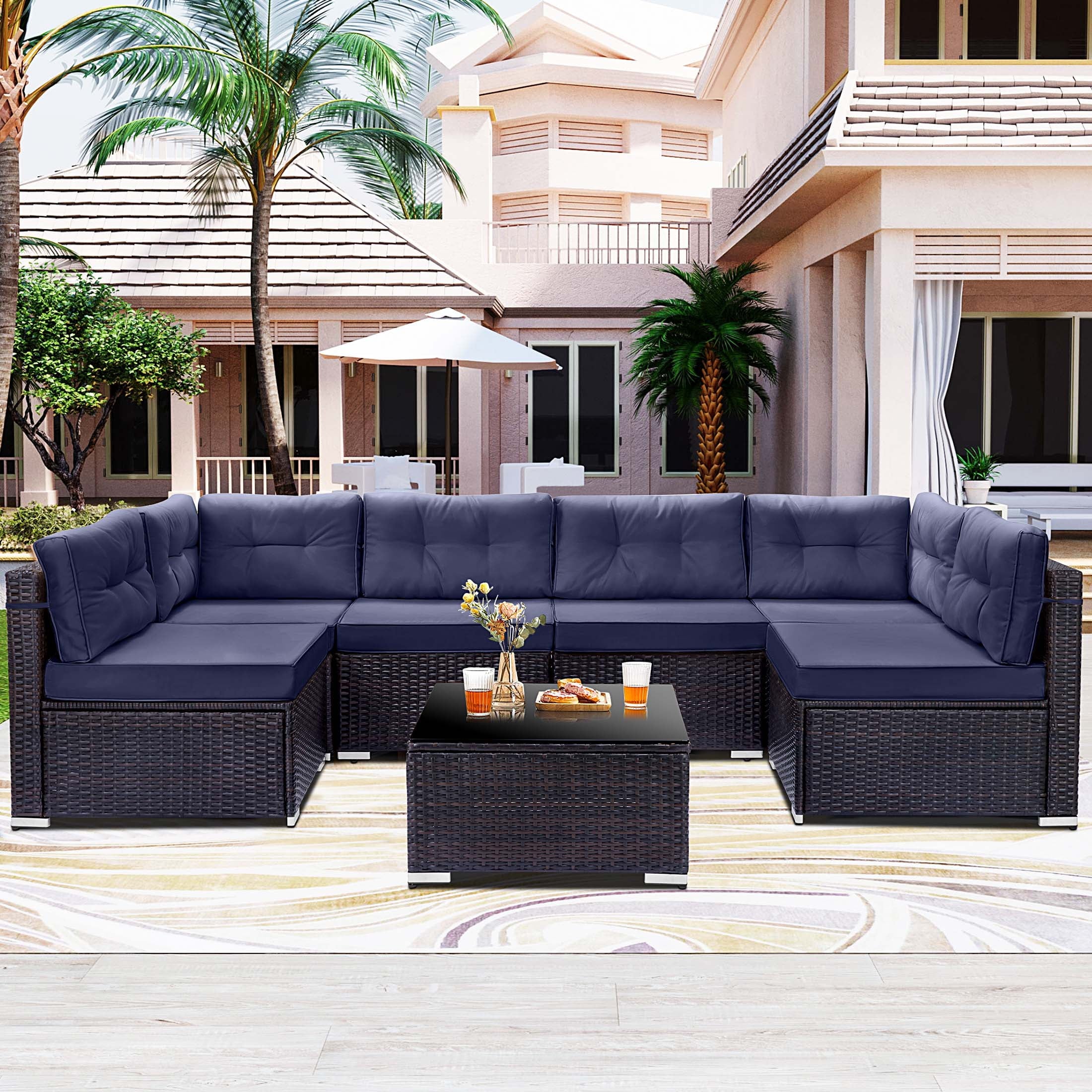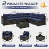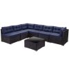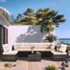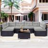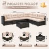 Home Outdoor Conversation Sets 7 Piece Rattan Sectional Sofa Set, Outdoor Conversation Set, All-Weather Wicker Sectional Seating Group with Cushions & Coffee Table, Morden Furniture Couch Set for Patio Deck Garden Pool