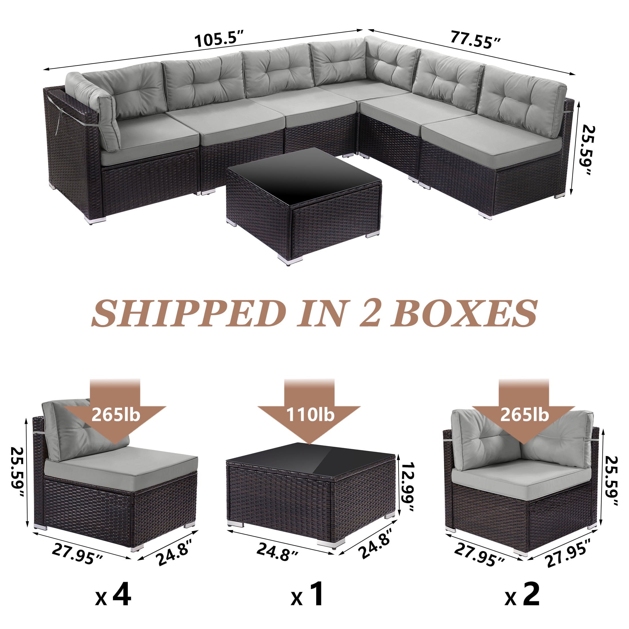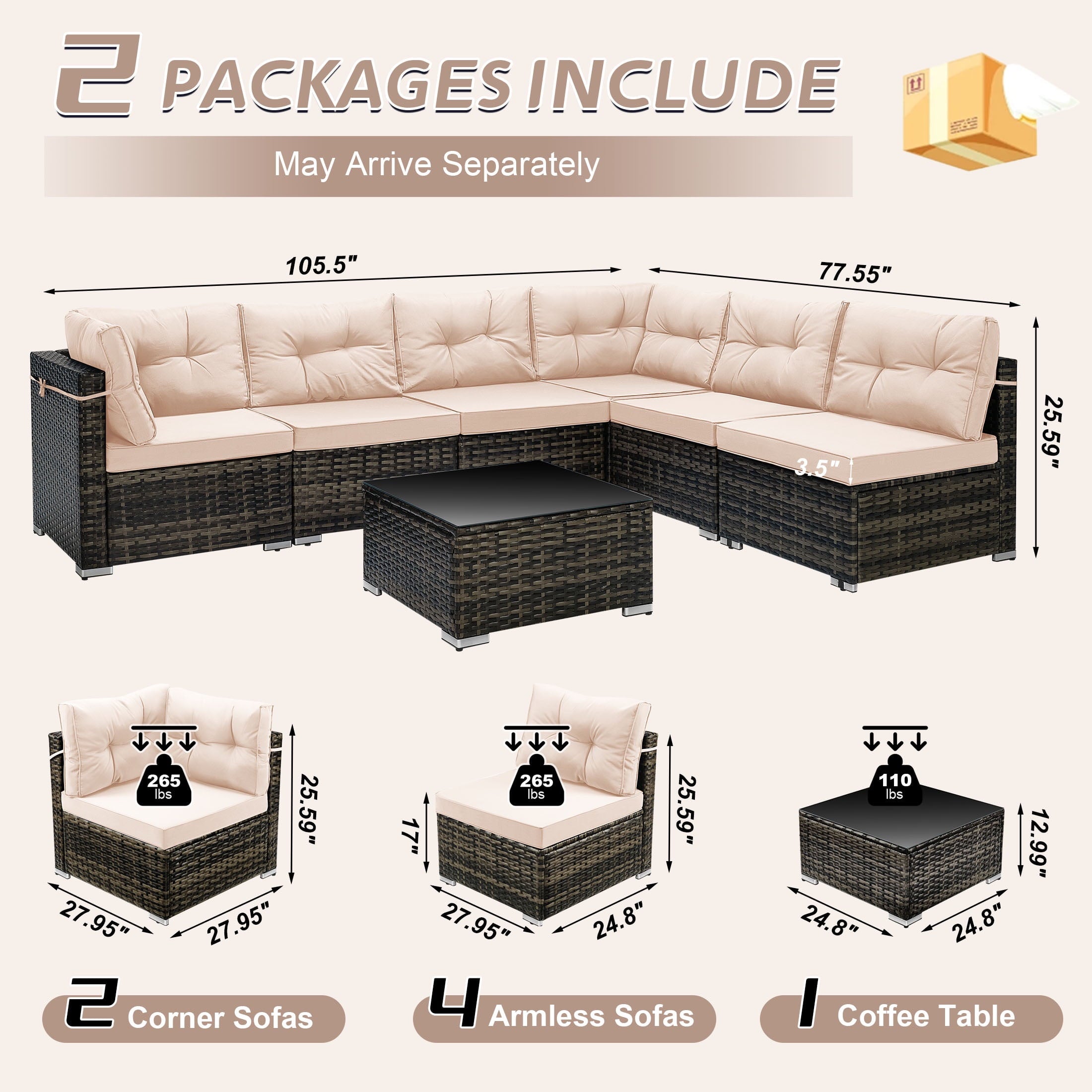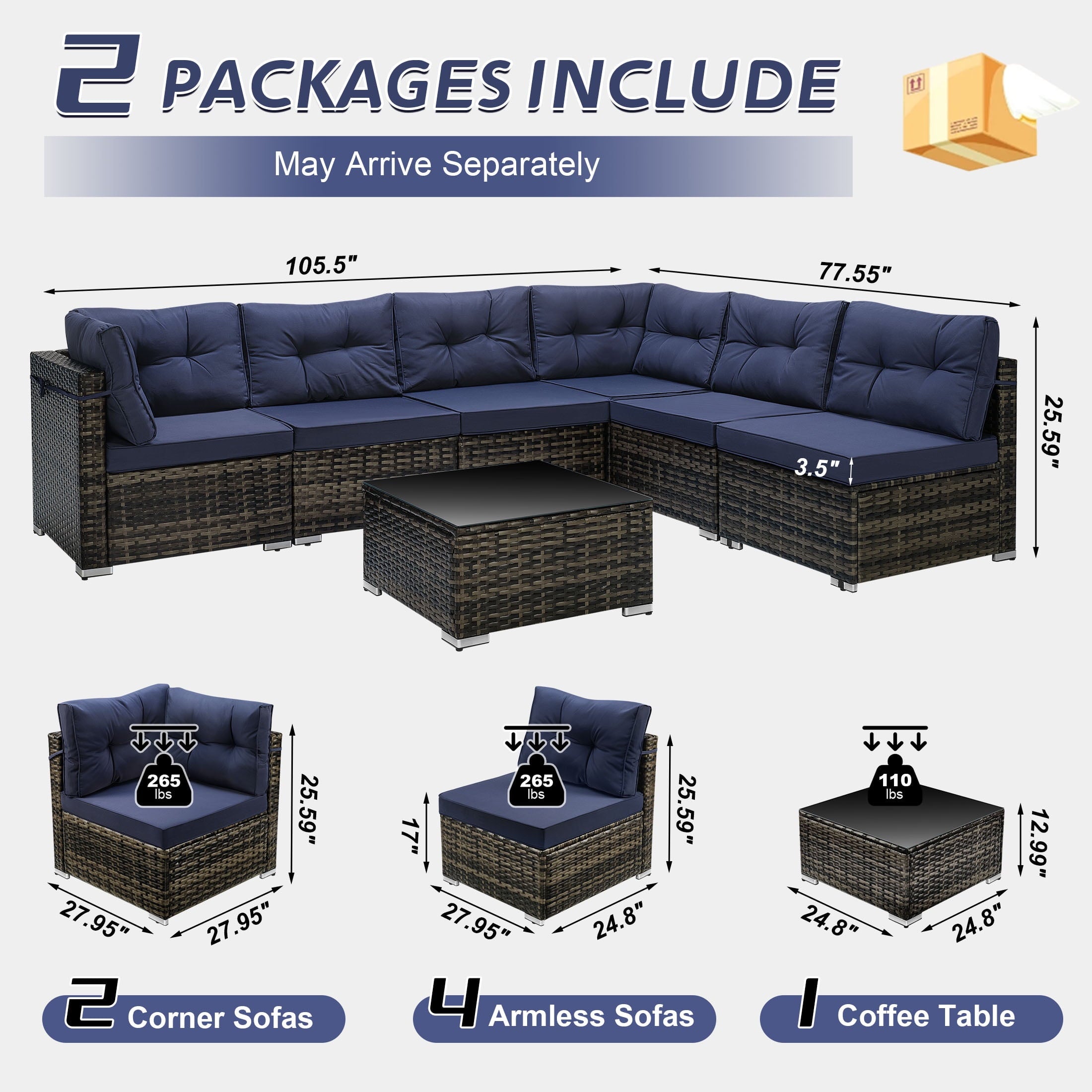 • [Easy Assembly] – Our sectional wicker sofa set is with detailed instructions. Normally 2 adults are recommended with 60-90 minutes estimated assembly time.