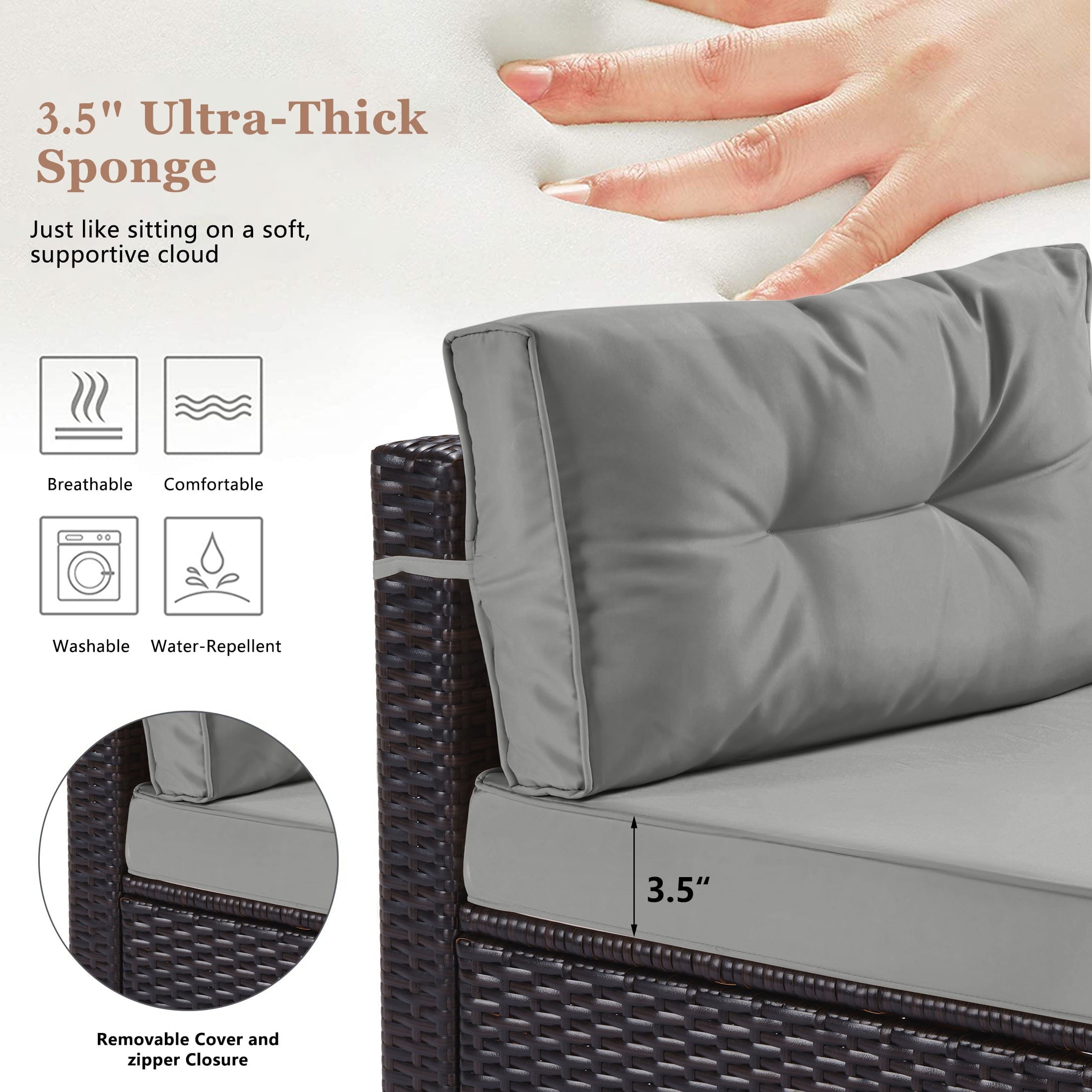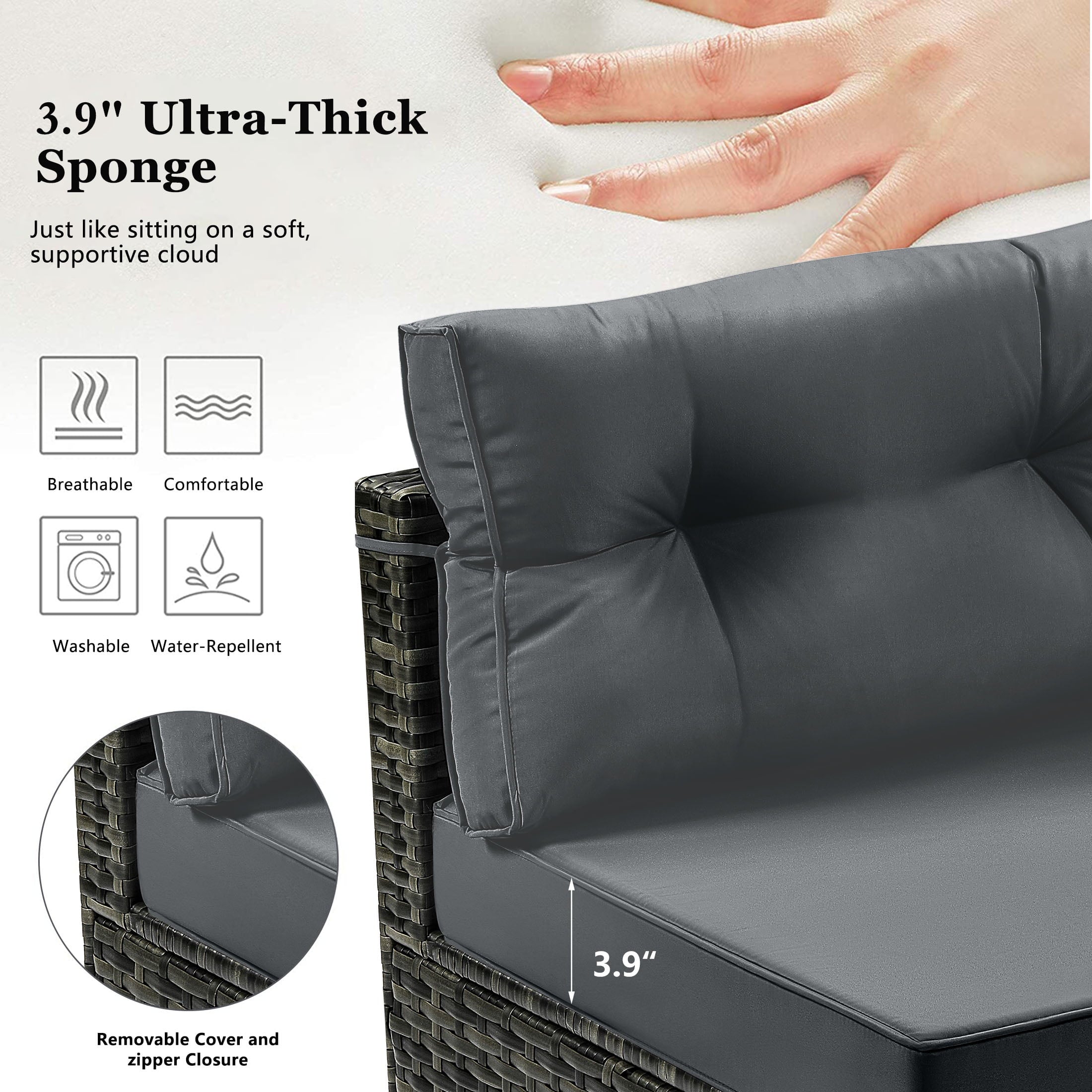 • [Easy Cleaning] – Comfortable cushions with back cushions and pillows will be perfect for your leisure. Cushion covers are removed with a quick zip and are machine washable! It will look brand new after a quick wash.