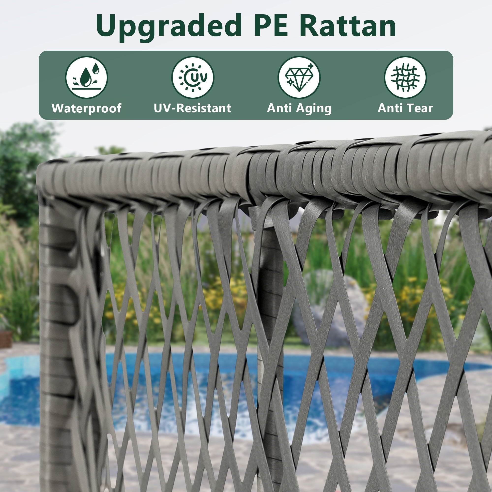 - 【ALL-WEATHER MATERIALS】: This wicker patio furniture set features all-weather PE wicker that is rated at 1500 UV hours, is easy to clean, and extremely resistant to the sun, rain, heat, and cold to not crack, sag, or fade. The wicker is hand-woven over powder-coated steel frames to withstand the outdoor elements, providing superior durability and toughness.