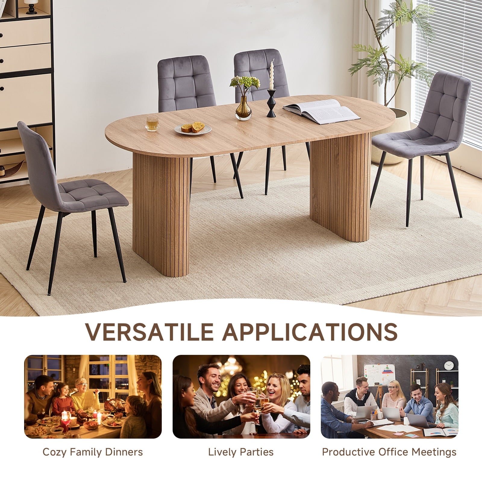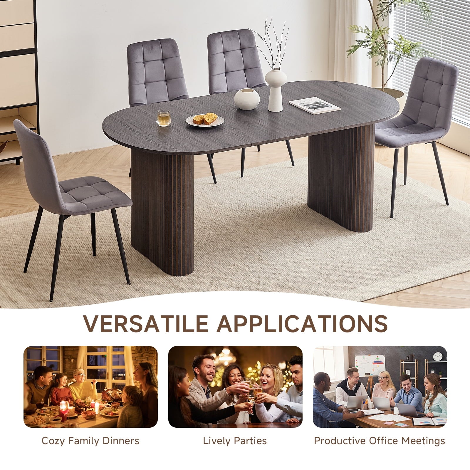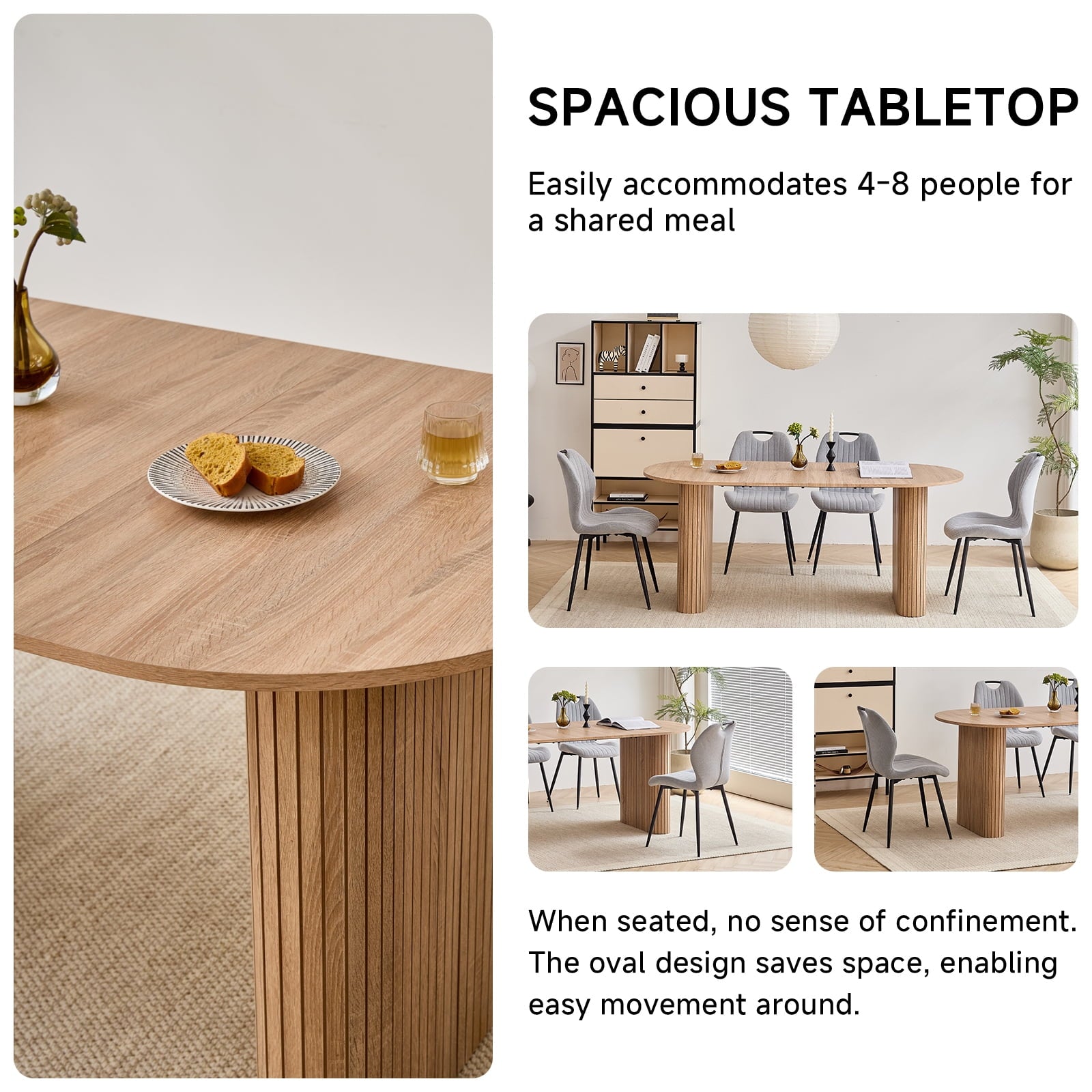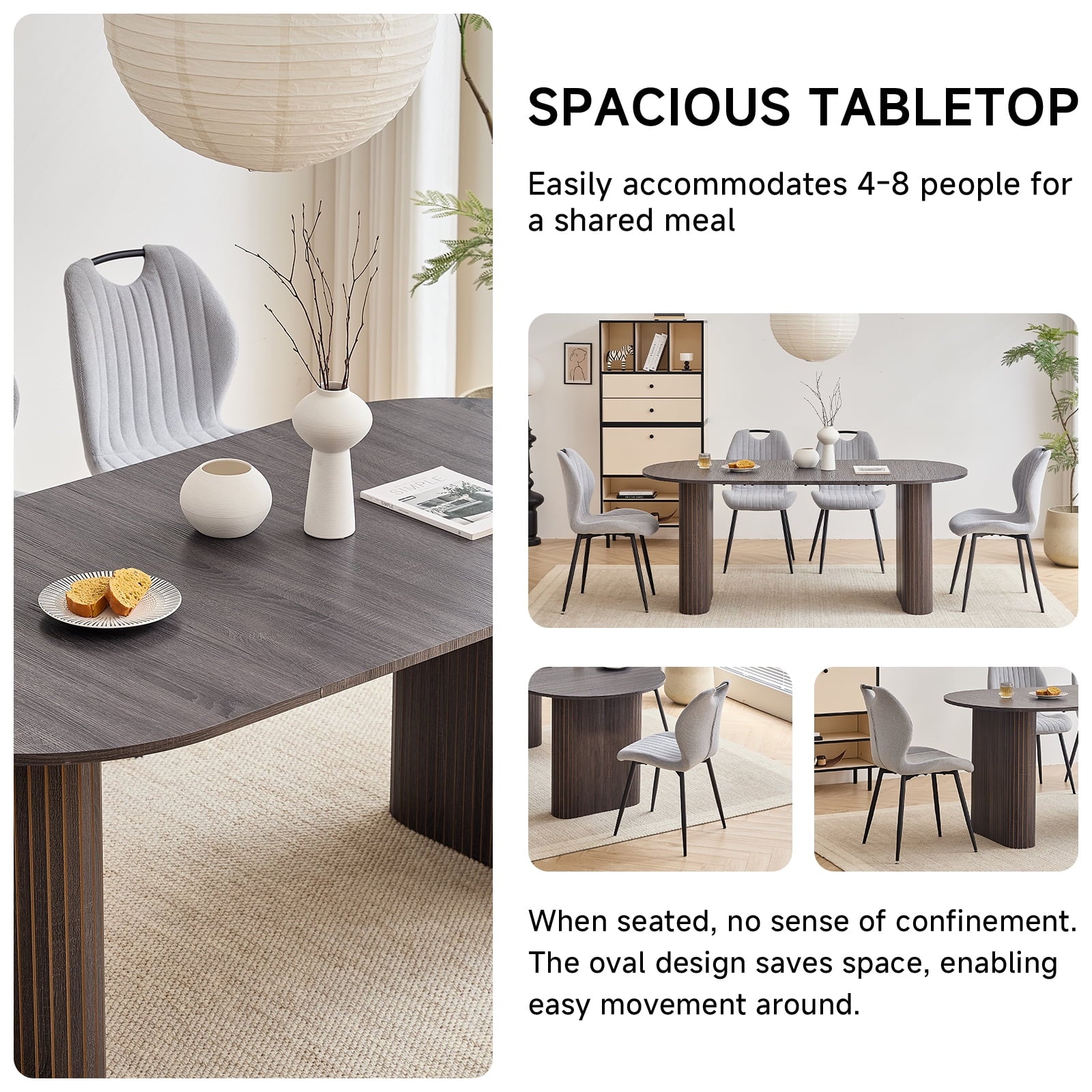- 【 Multi-functional Dining Table 】 This oval dining table is designed with minimalist modern aesthetics and neutral tones in mind, seamlessly blending into various environments. It can be a modern dining table for warm daily meals or gatherings, an office desk for comfortable work, or a professional conference table for collaborative discussions. Whether in the dining room, kitchen, home office or living room, this table can naturally blend into daily family life.