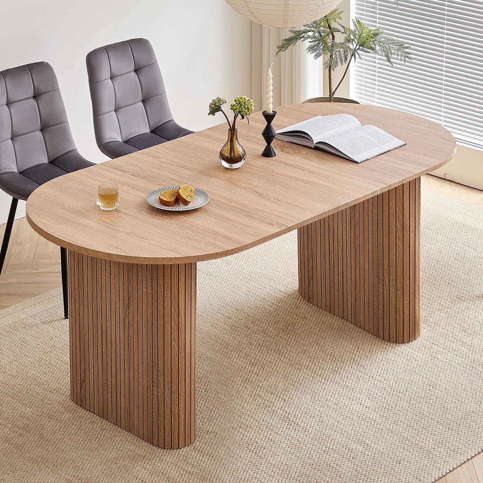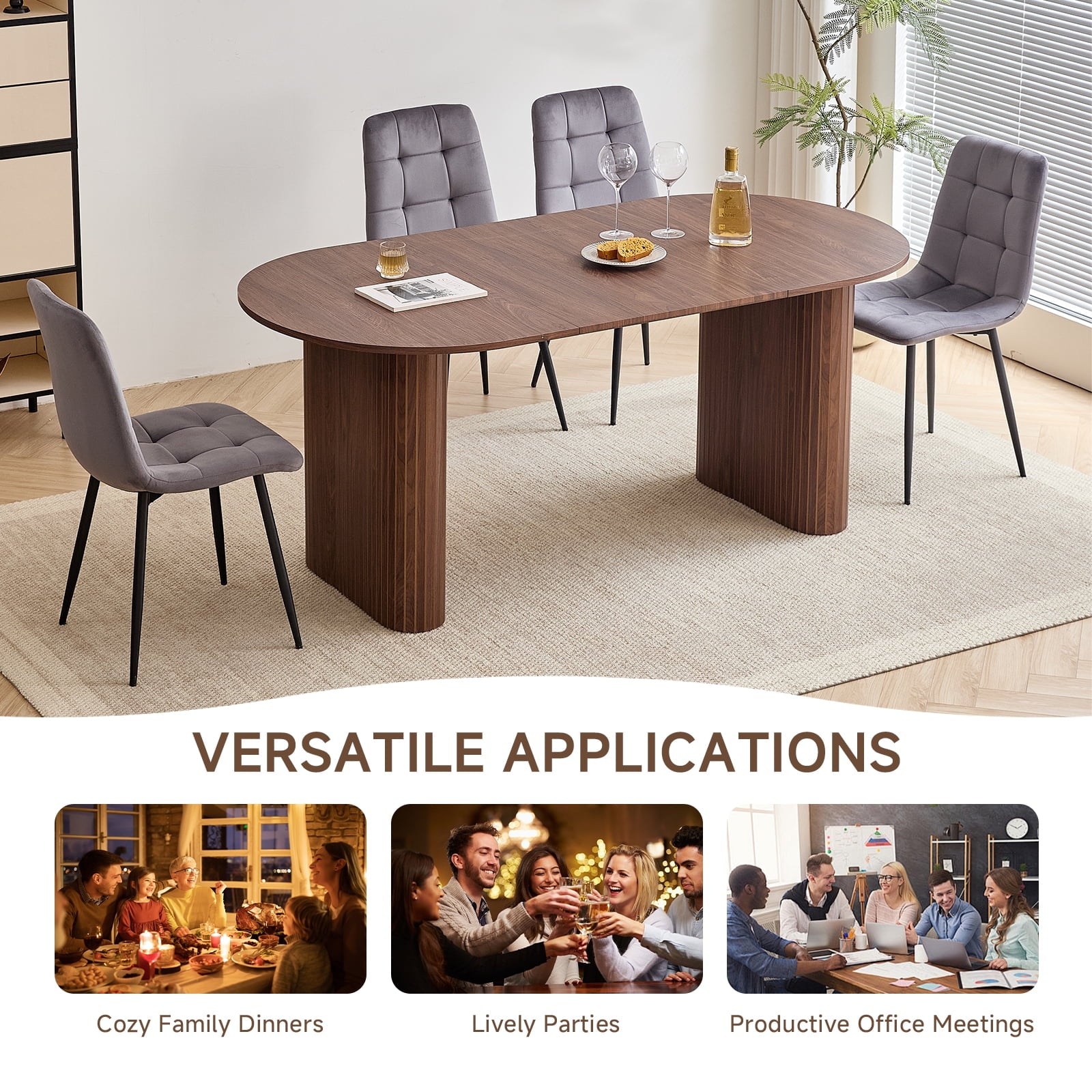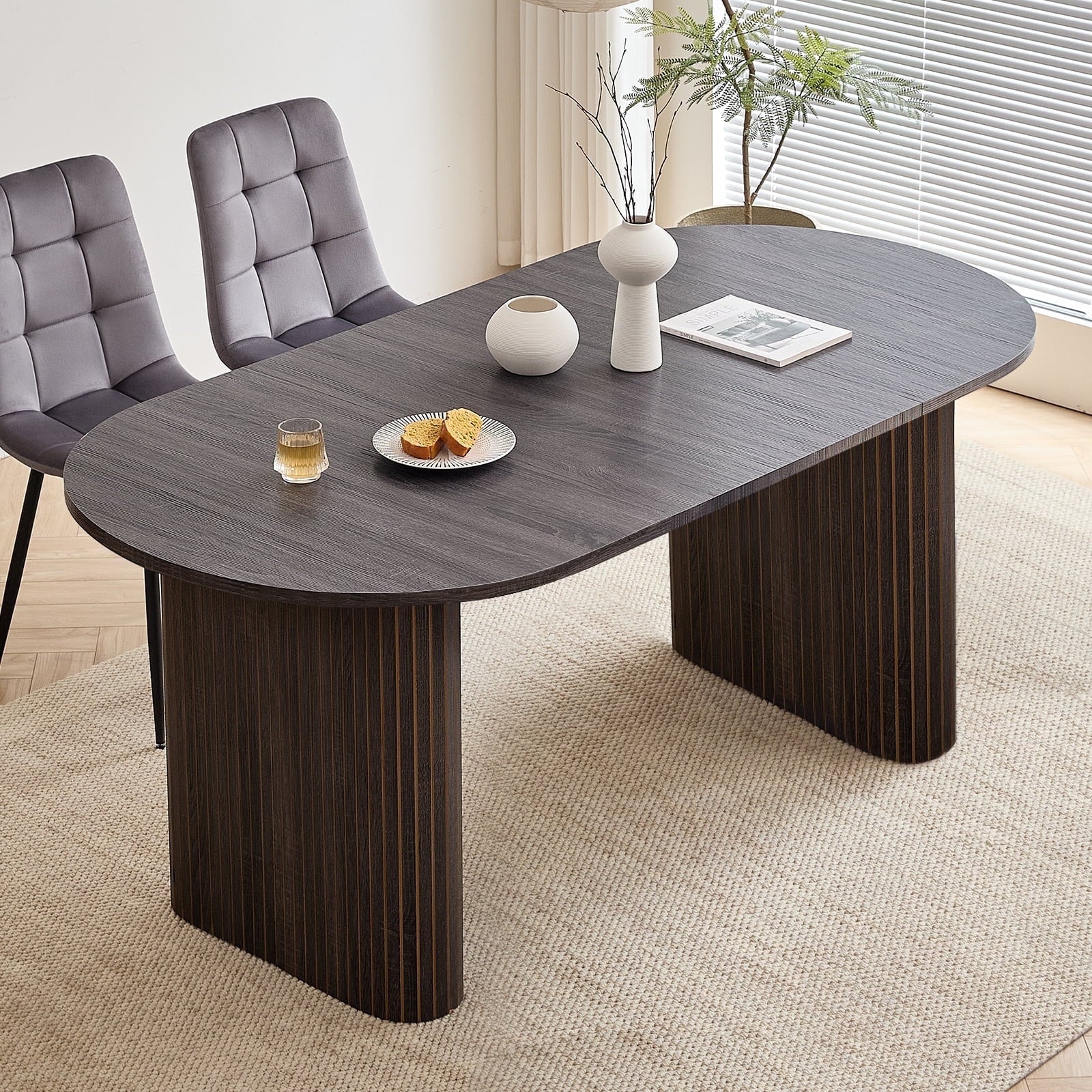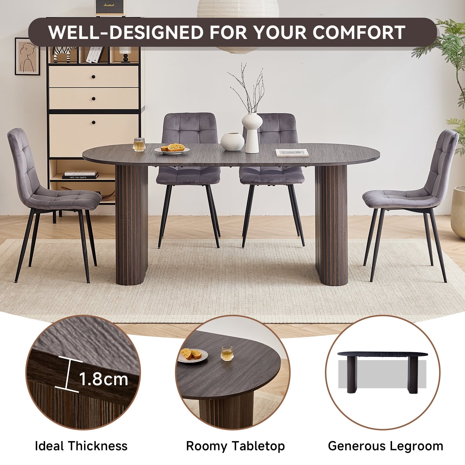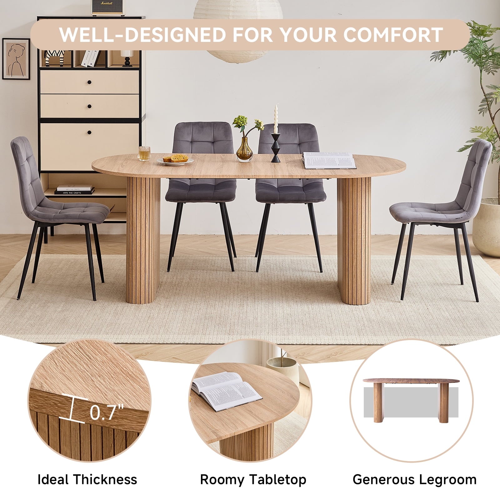 - 【 Multi-functional Dining Table 】 This oval dining table is designed with minimalist modern aesthetics and neutral tones in mind, seamlessly blending into various environments. It can be a modern dining table for warm daily meals or gatherings, an office desk for comfortable work, or a professional conference table for collaborative discussions. Whether in the dining room, kitchen, home office or living room, this table can naturally blend into daily family life.