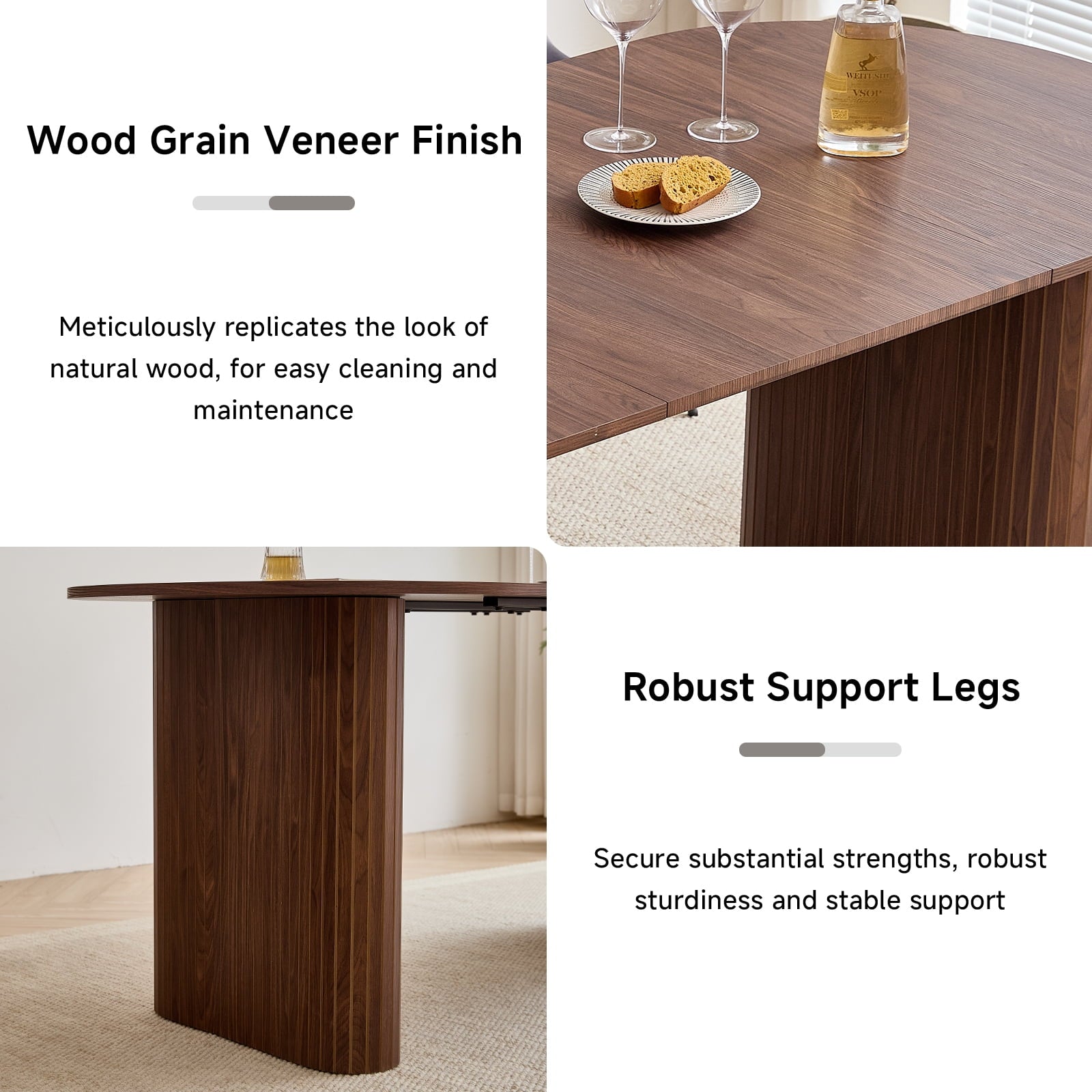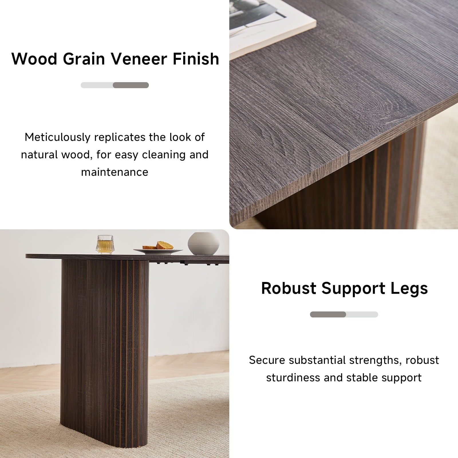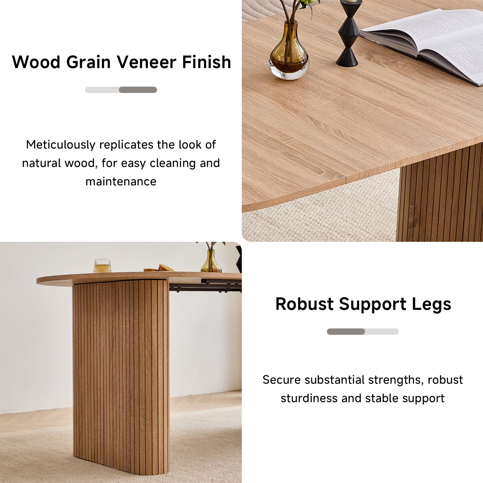 - 【 Thickened and sturdy base 】 The thickened oval table legs give the table a clean and modern visual effect, with smooth lines and balanced proportions, bringing people a pleasant and relaxed mood. The warm and neatly arranged wood grain patterns surround the exterior. The scientific force support design makes the table more stable. Inside, the reinforced metal frame adds an extra layer of protection for the table’s durability and stability, making it both beautiful and reliable.