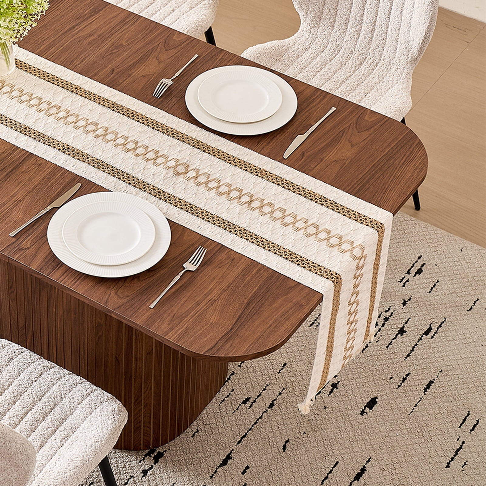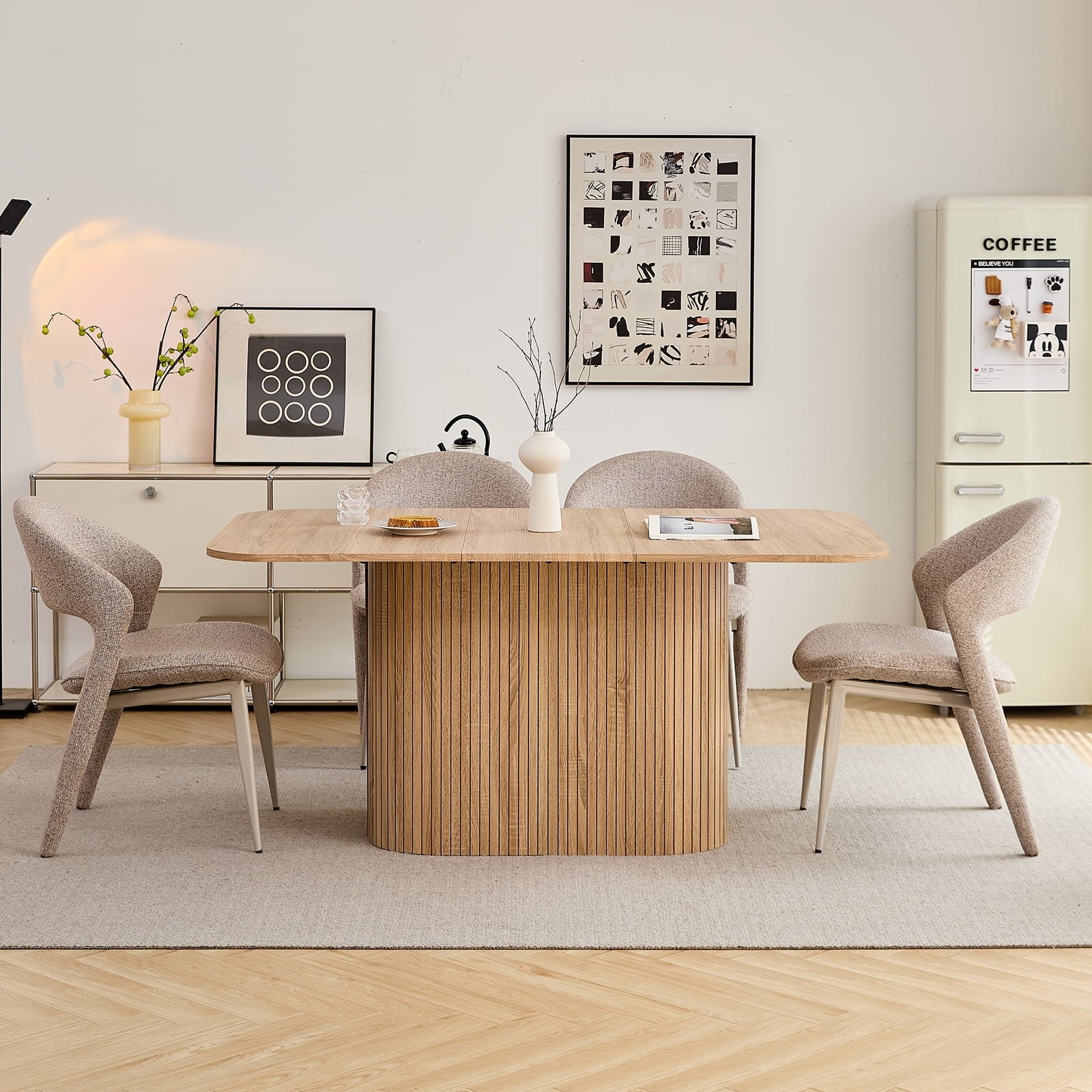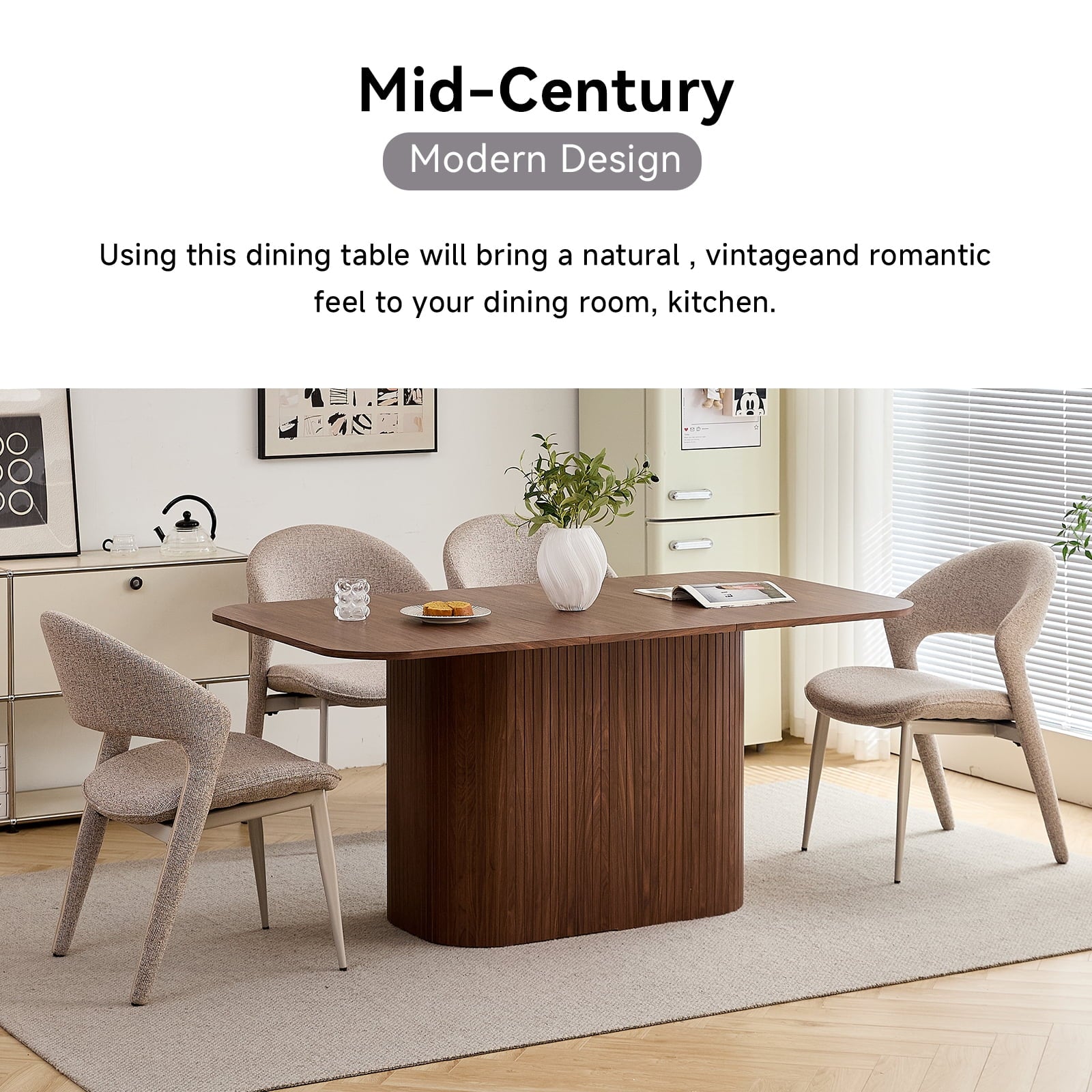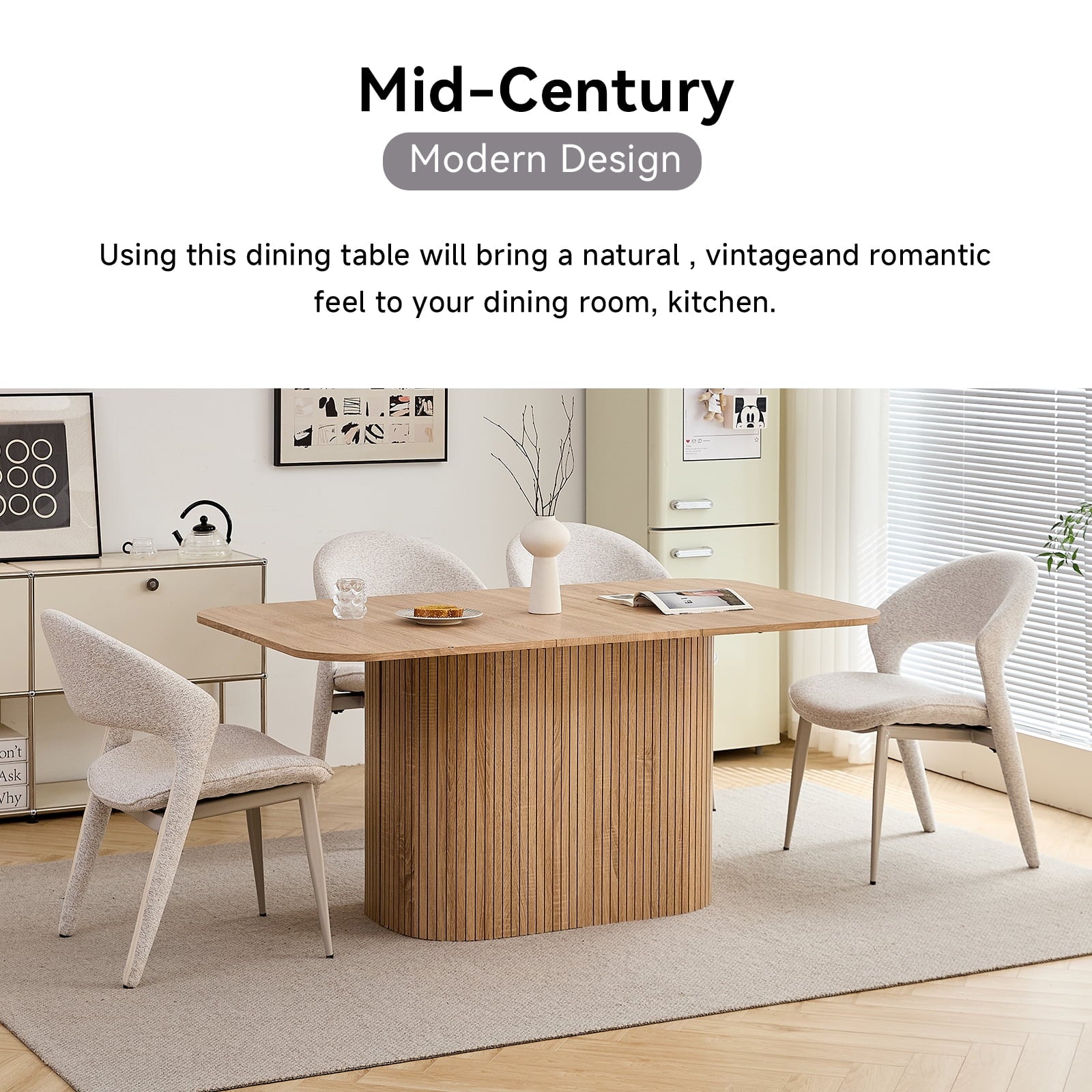 • The table’s rounded corners boost safety (reduces bumps) and sleek look, while making it easier to move. This thoughtful detail enhances both the function and flow of your dining space, adding practicality to aesthetics.