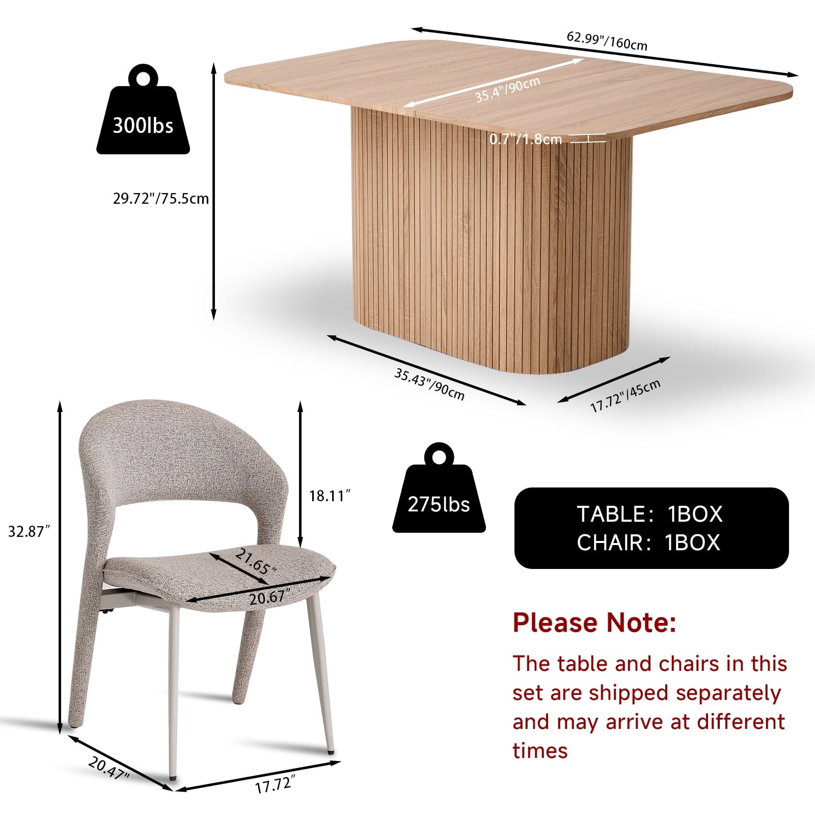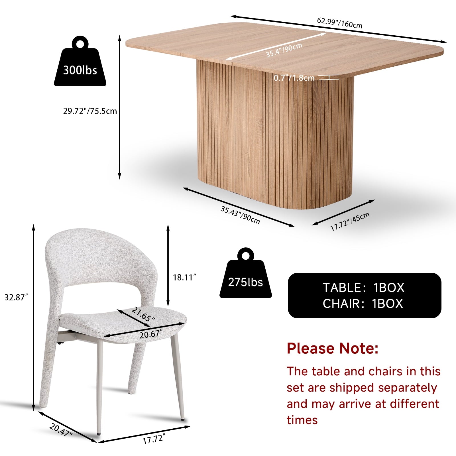 • Efficient Assembly: all parts, hardware and a step-by-step manual are included (table/chairs need assembling). It ships in two boxes for easy handling; two people are recommended for efficient, safe setup.