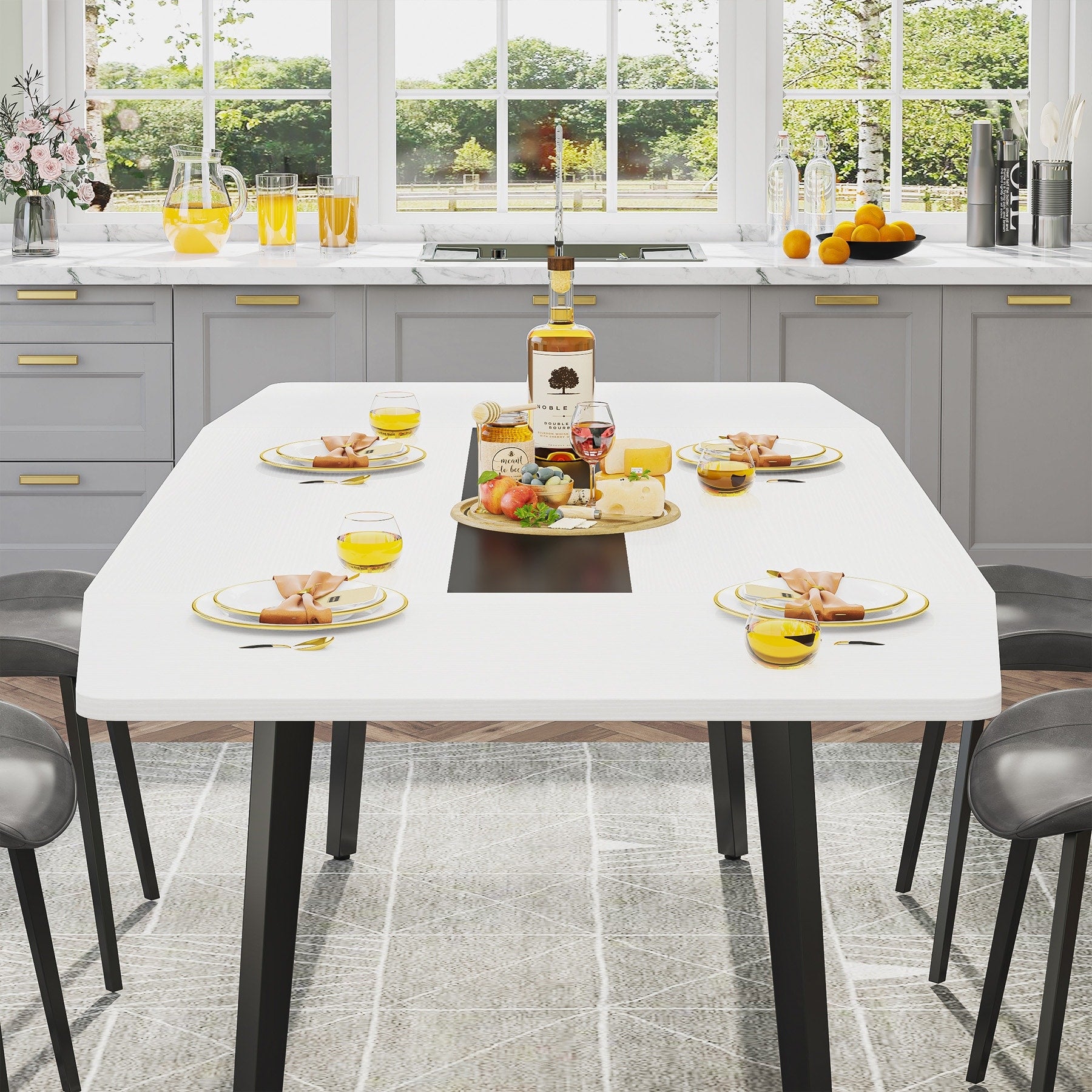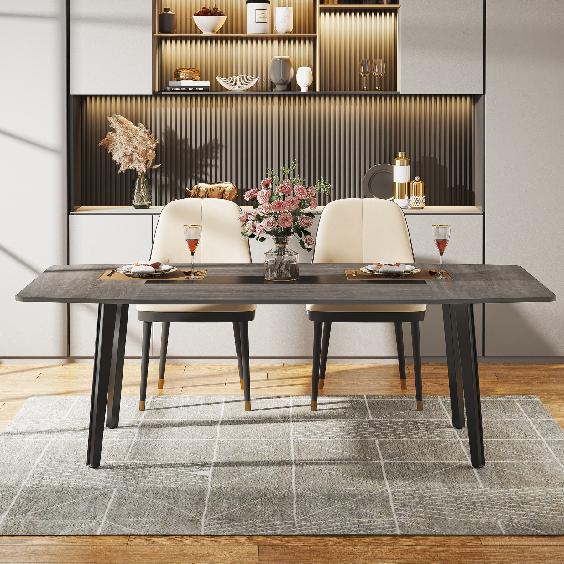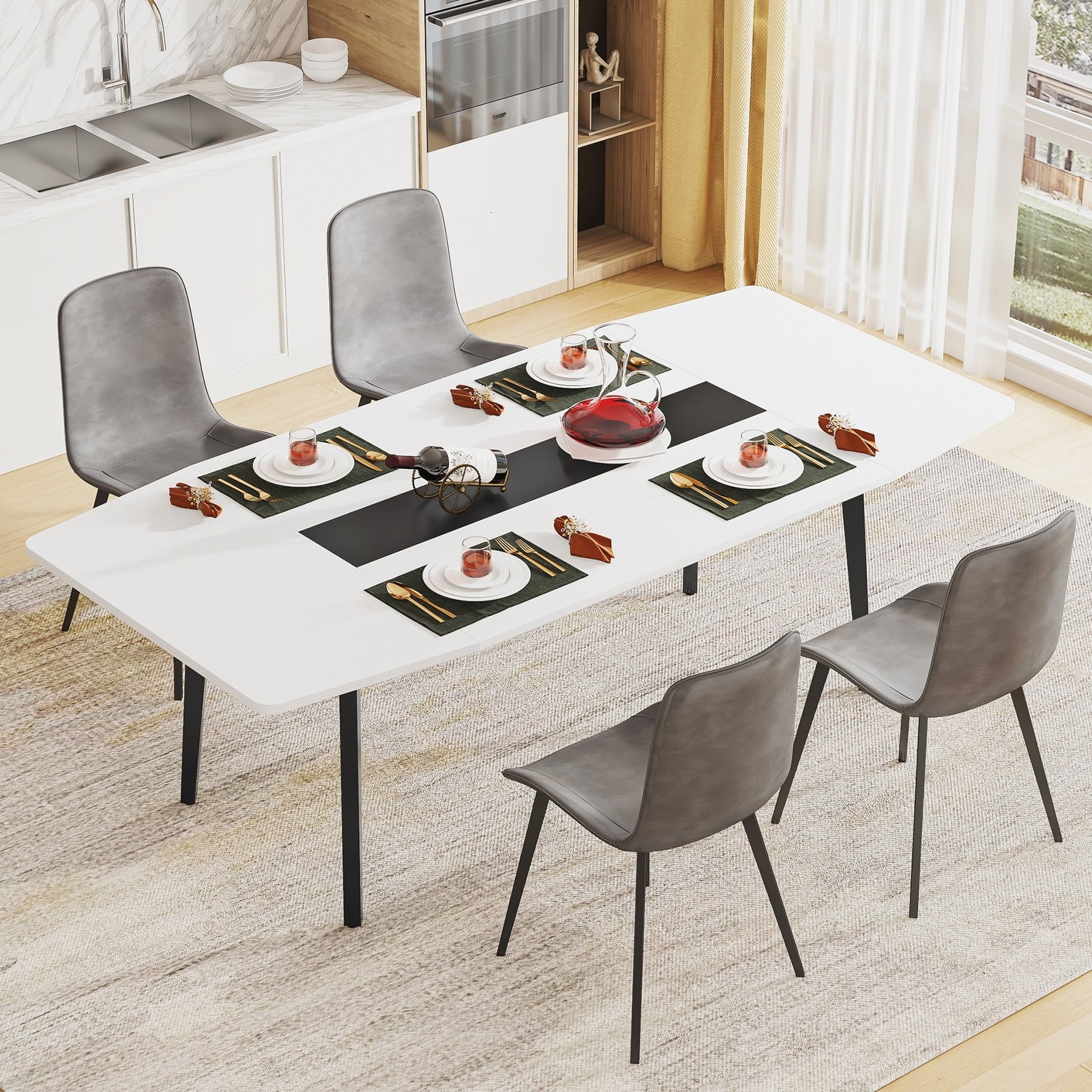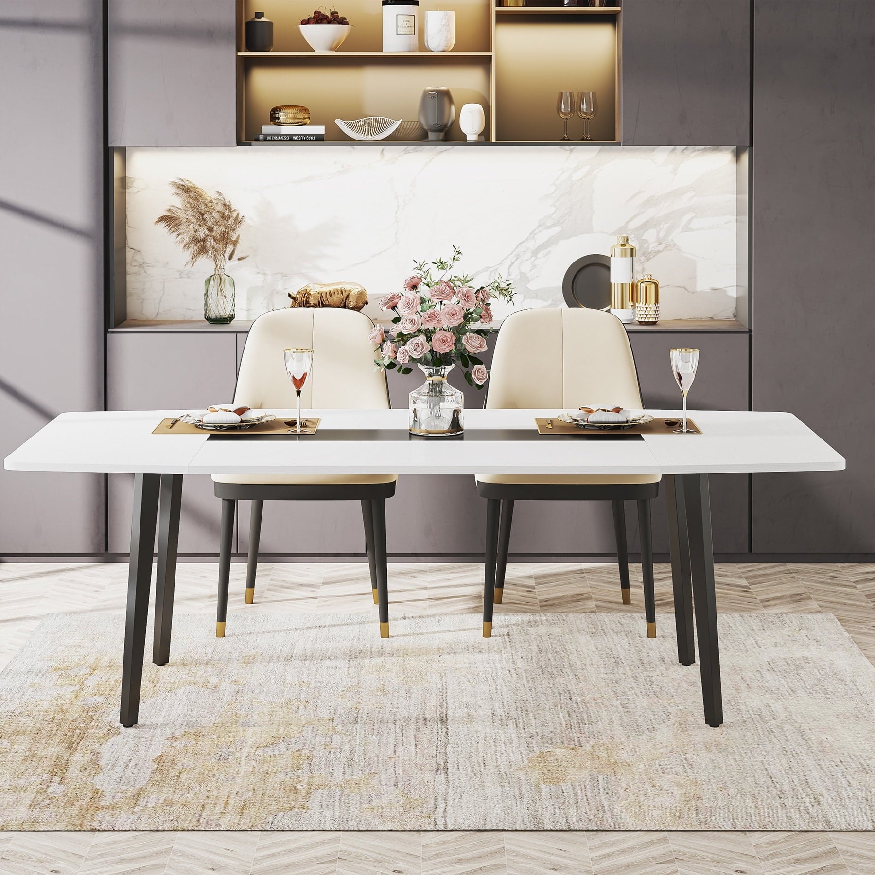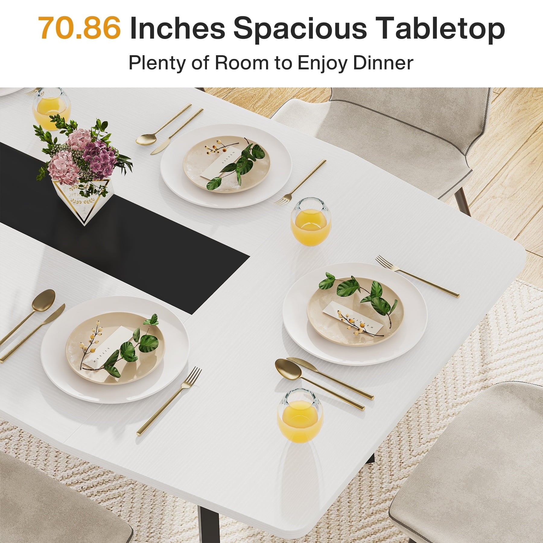 Spacious TabletopMeasuring 70.86” L x 35.43″ W, our boat-shaped kitchen table can comfortably accommodate 6-8 people and still provides ample space for all your dining essentials – from flatware to decadent desserts, perfect for hosting dinner parties or family gatherings.