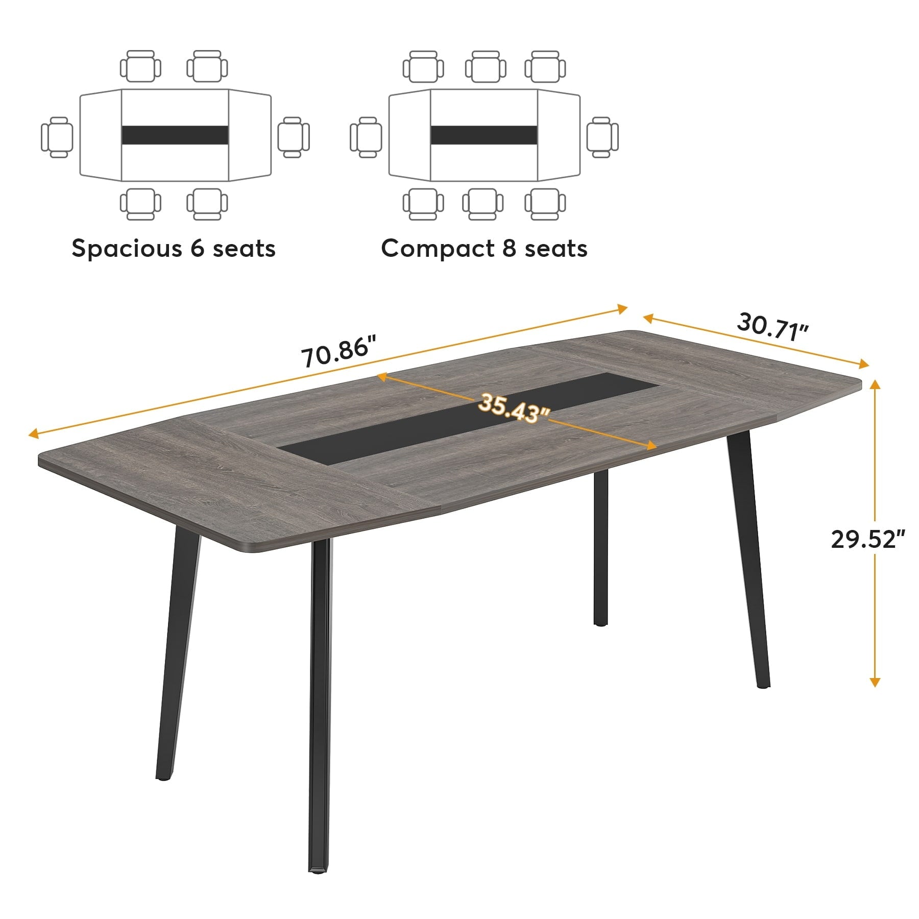 - Product Size: 6FT Conference Table: 70.86″(L) x 35.34″(W) x 29.52″(H), for 6-8 people