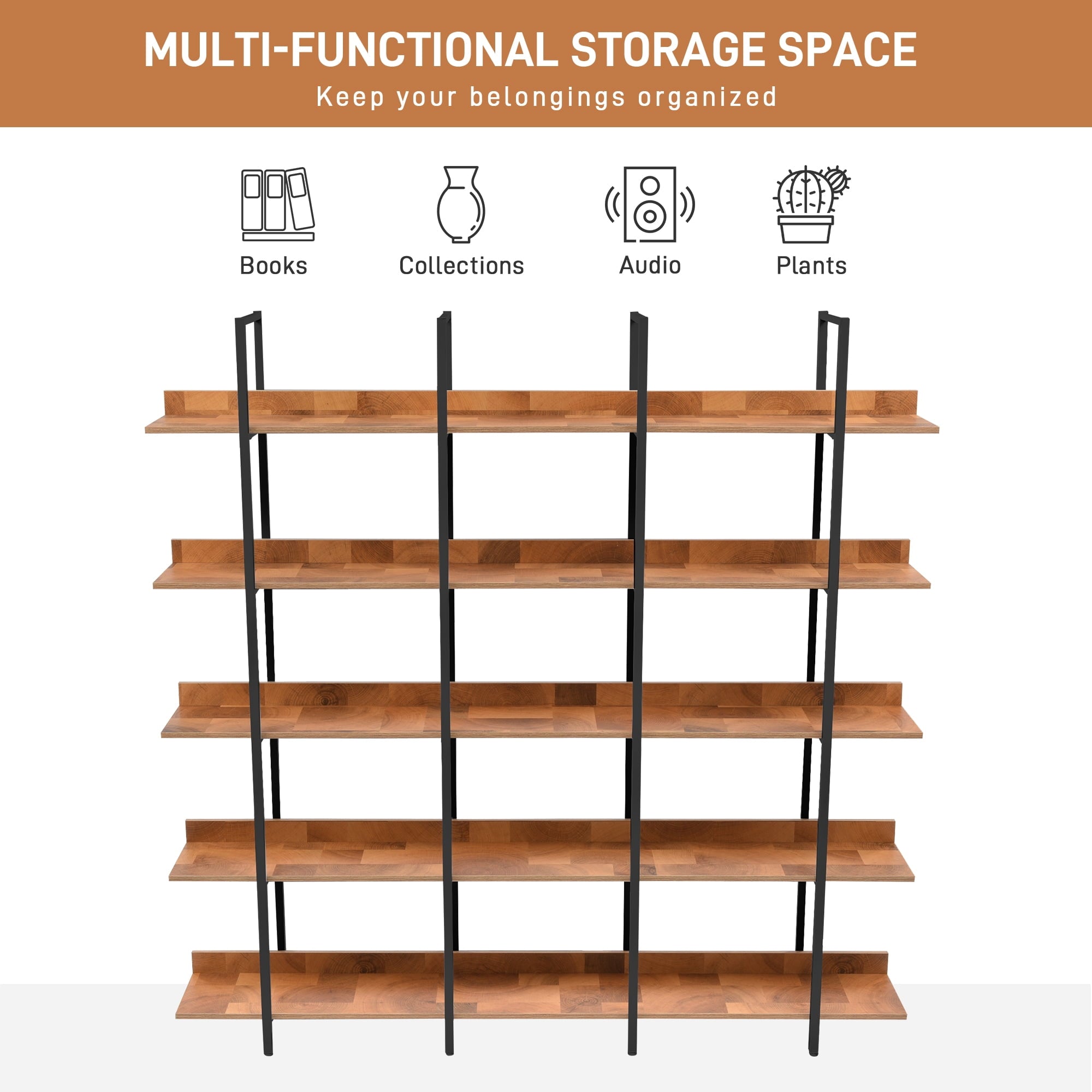 - Spacious 5-Tier Storage – Each Shelf Holds 80 Lbs (400 Lb Total) for Books, Decor, And Collectibles