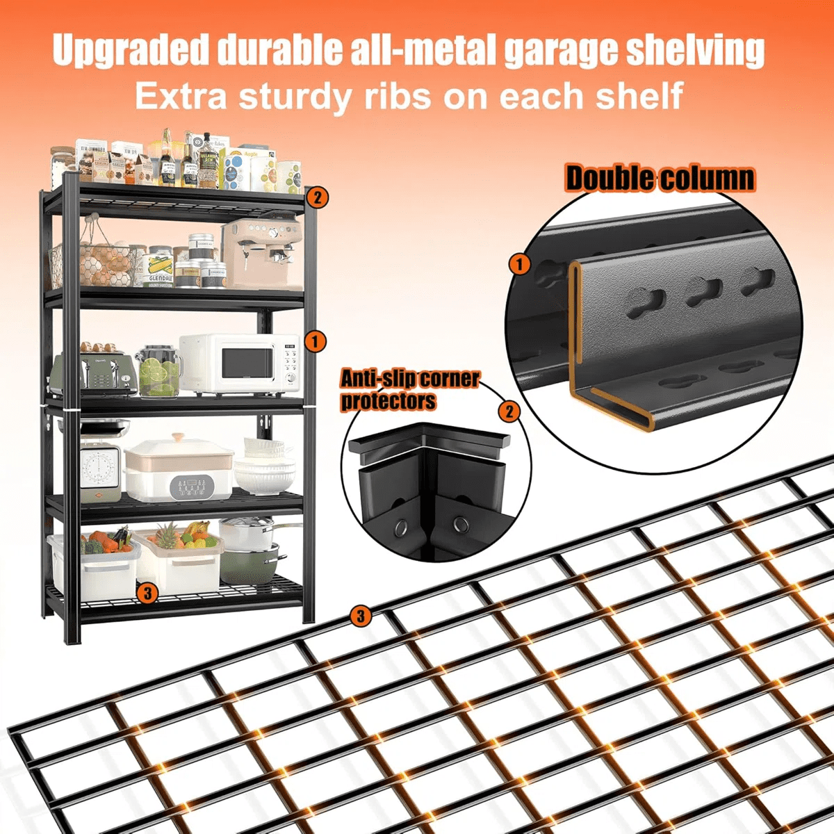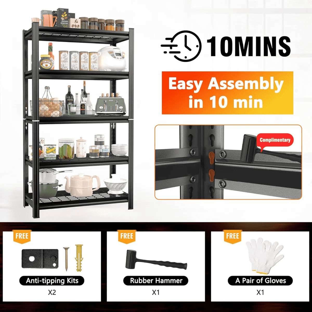 Shelf Capacity: 5 Open Shelves (80 Lbs Each) with Raised Edges To Prevent Items From Falling