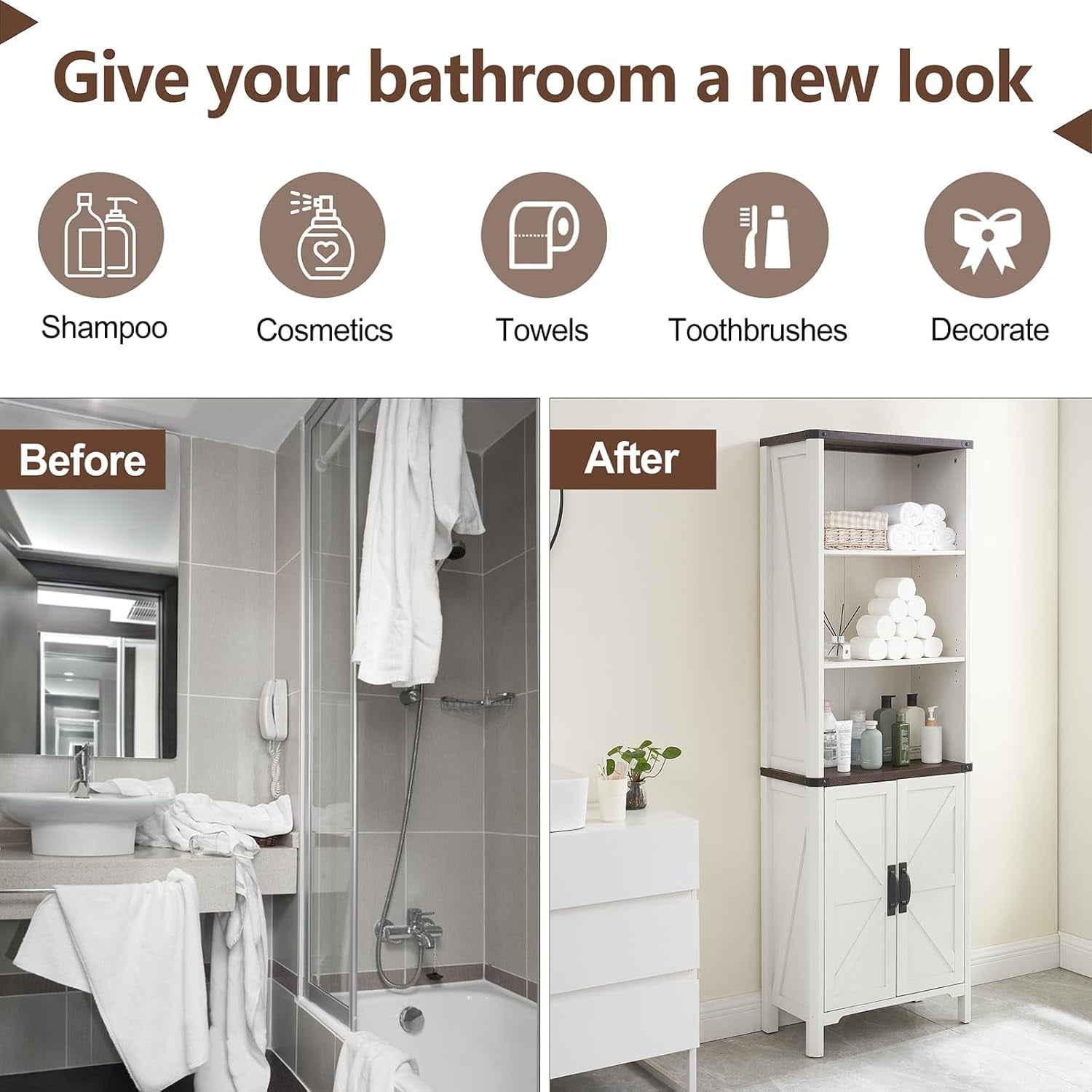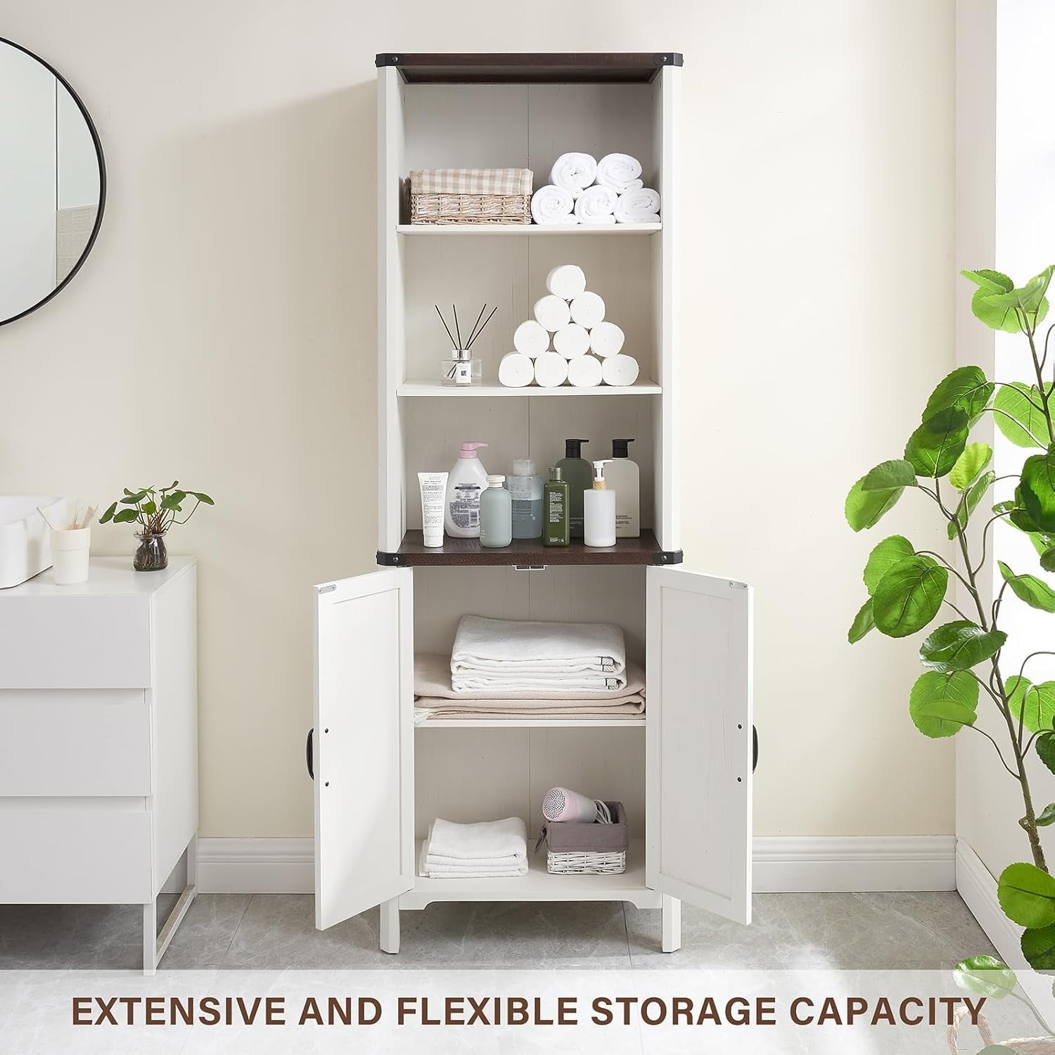 Sturdy and Secure: This bathroom organizer and storage cabinet is made of high-quality wood for exceptional durability. The strong base provides excellent stability and load-bearing capacity for the bathroom cabinets