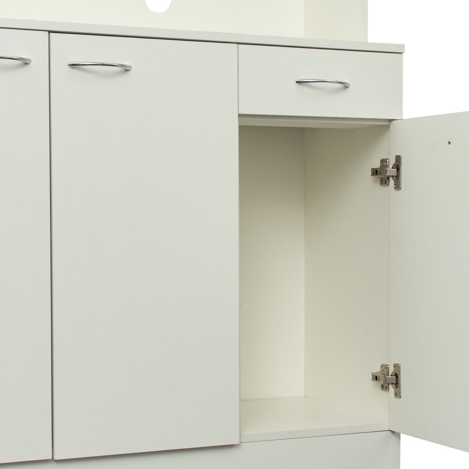 • SMART STORAGE SOLUTION: Whether you’re looking for a microwave cart, or you’re looking for a way to store all of your kitchen essentials, including pots, pans, cutlery, glasses, and even food, our large kitchen storage cabinet is the perfect solution!