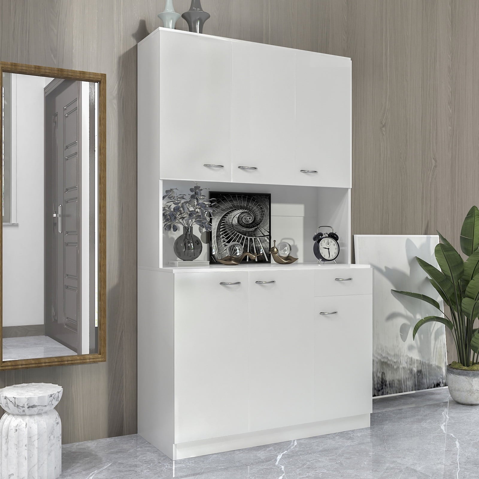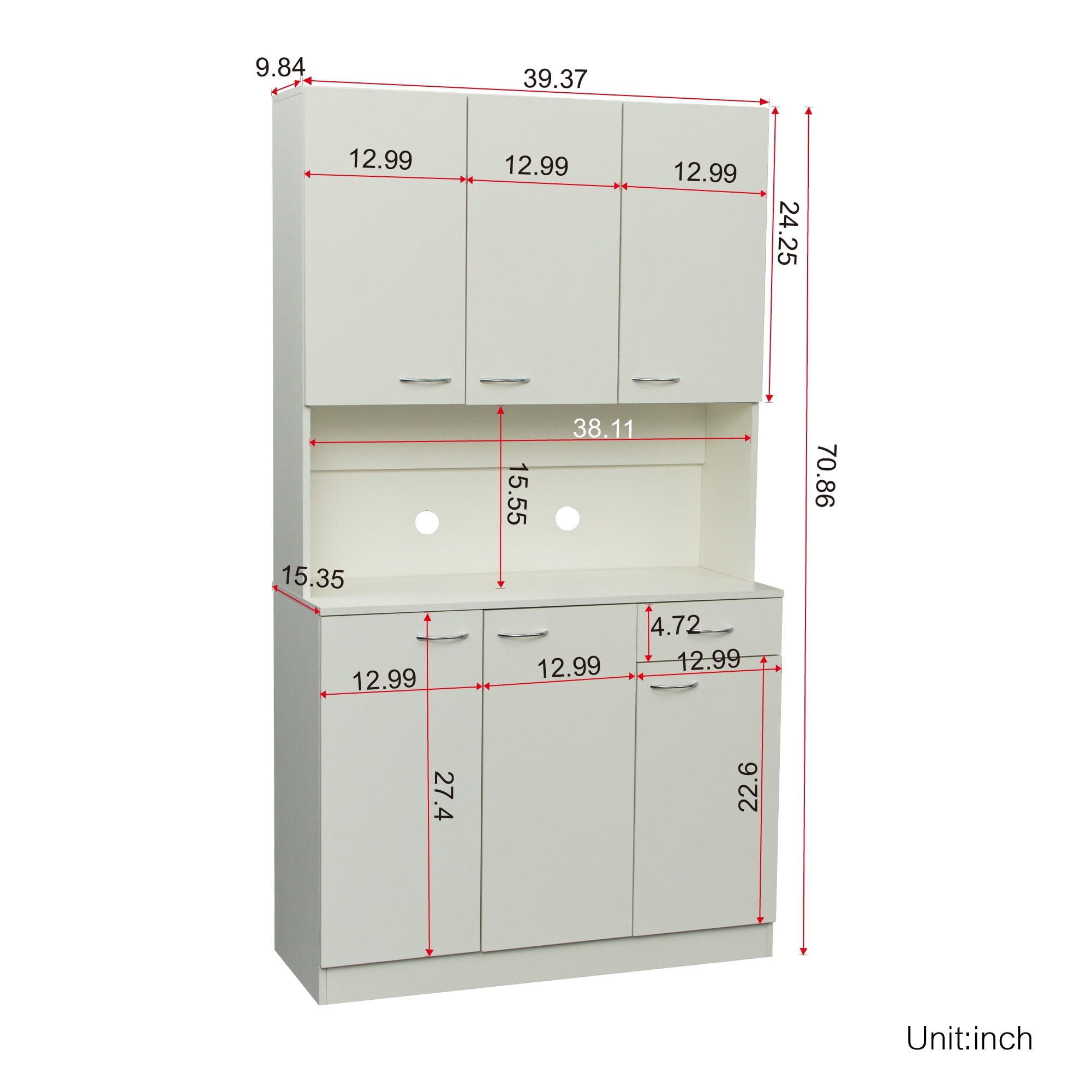 Home Cabinets 70.87″ Tall Kitchen Cabinet with 6-Doors, 1-Open Shelves and 1-Drawer, Freestanding Kitchen Pantry Cabinet, Microwave Storage Cabinet, White