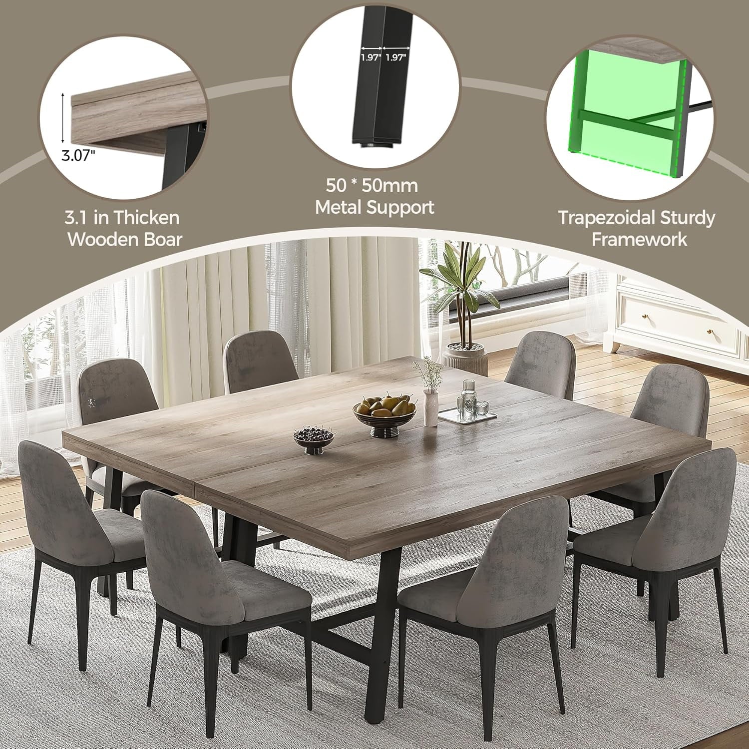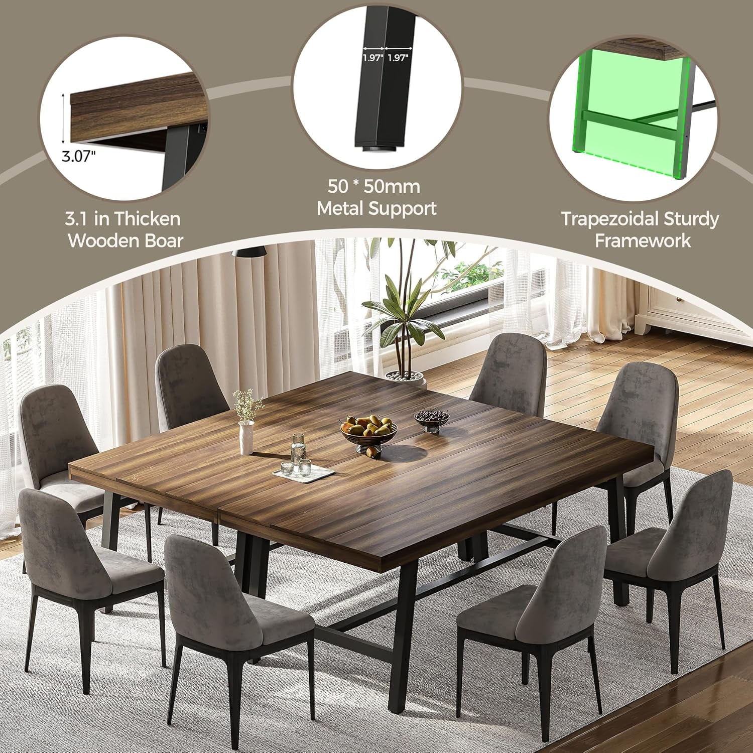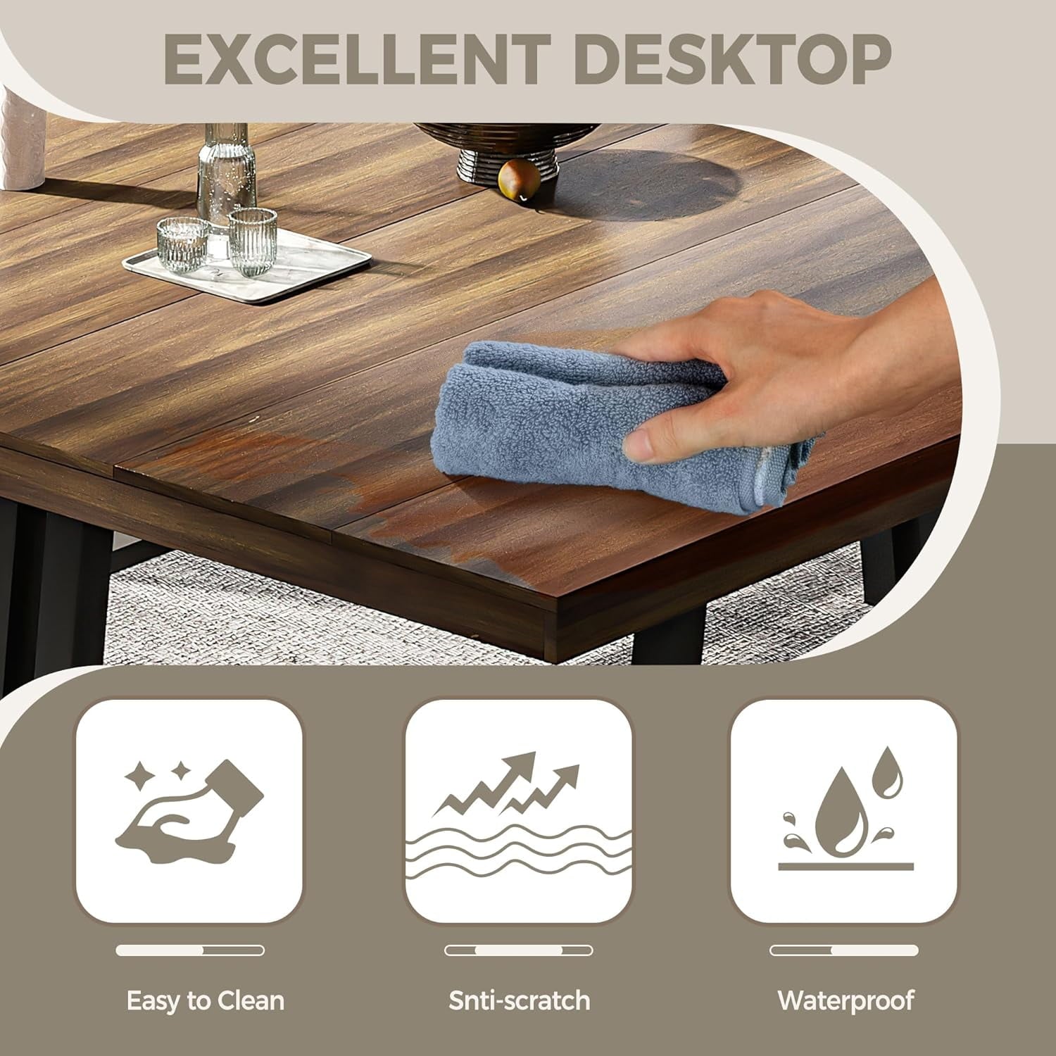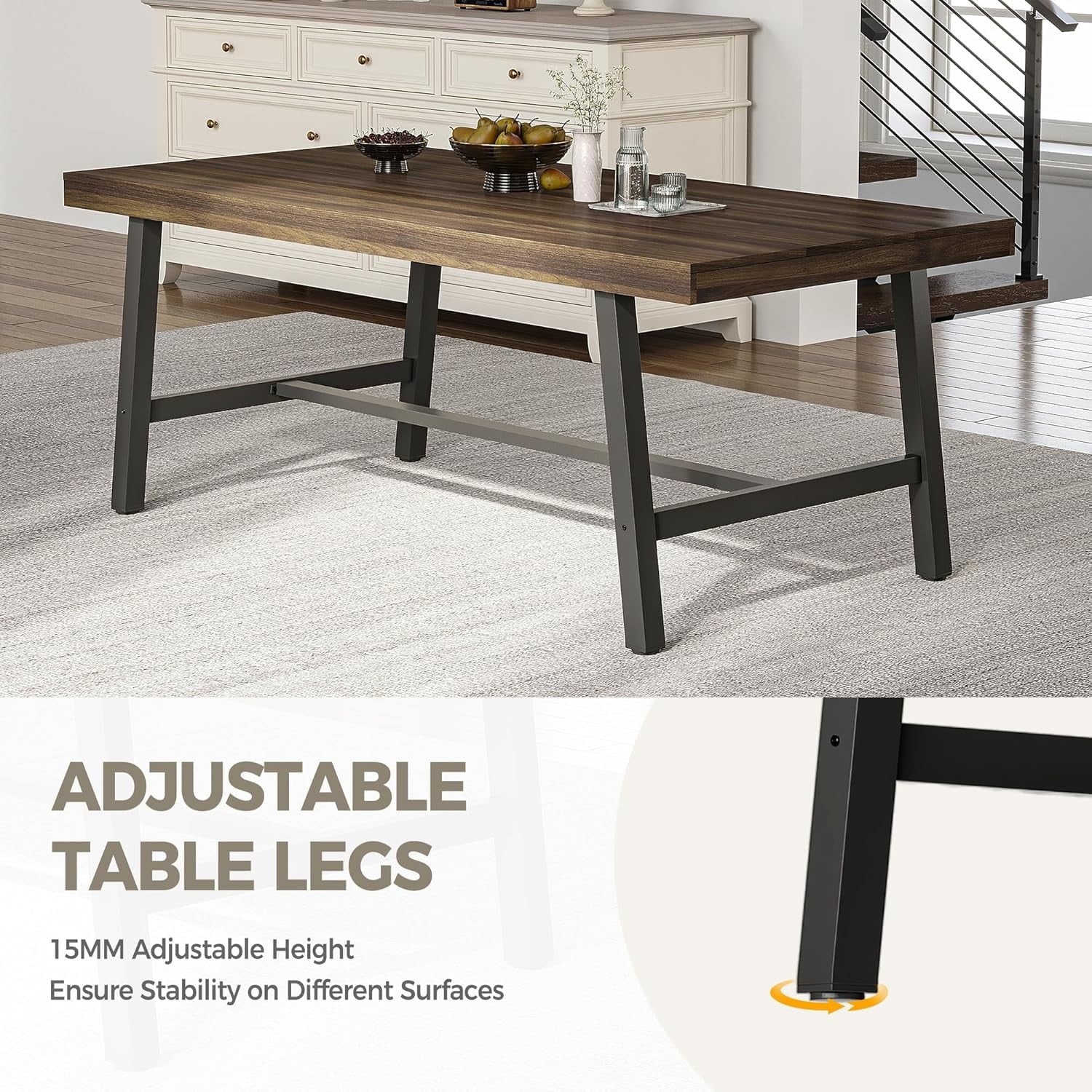 - Rustic Farmhouse Style: This rectangular kitchen table with thickened edge offers a simple yet stylish design suitable for both kitchens and living rooms. It features a durable leg base with metal, providing both elegance and stability, and complements various decor styles.