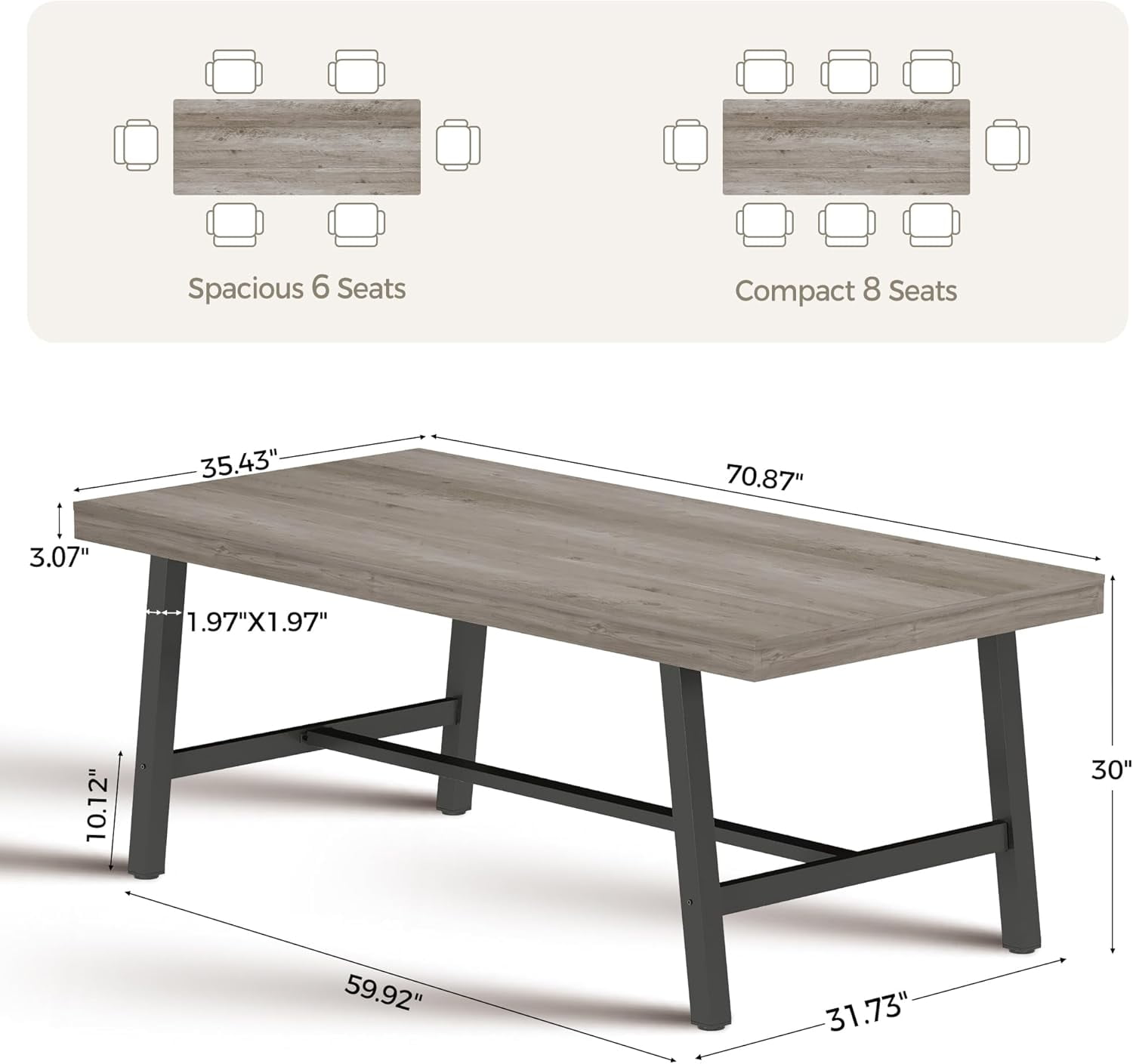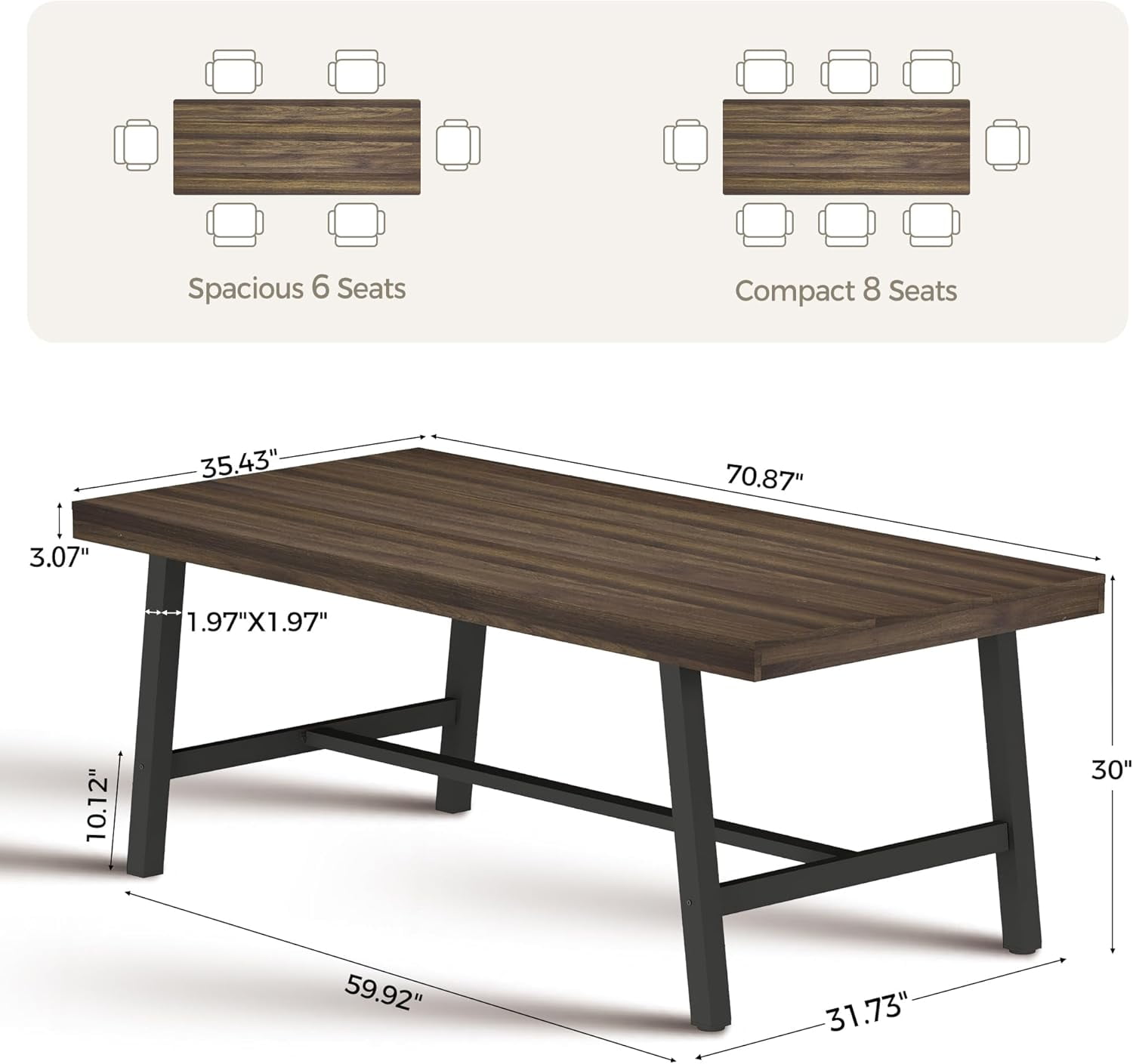 - Large Long Dining Table: This rectangle dining table overall size: 70.87″L x 33.46″W x 31.37″H, this spacious dining table comfortably seats 6-8 people, offering ample space for a joyful and relaxed meal with family and friends.