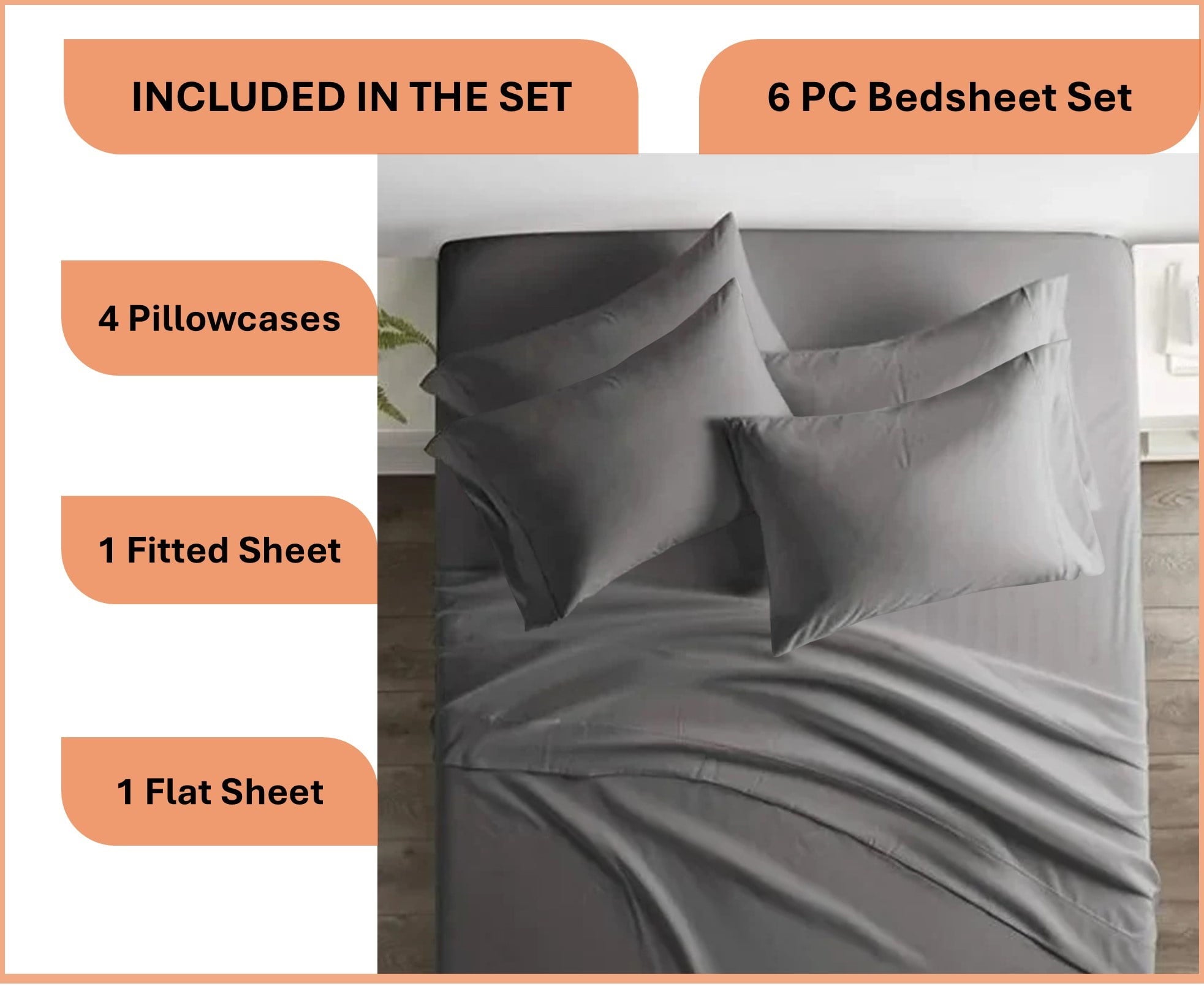 • ✔ Extra Pillowcases (6 PC Sheet Set): This bedding set comes with extra pillowcases which will complete your bedding needs in one place. No need to buy extra pillow cases from somewhere else. Set Comes with 1 Fully elastic Fitted Sheet + 1 Fitted Sheet + 4 roomy Pillowcases.