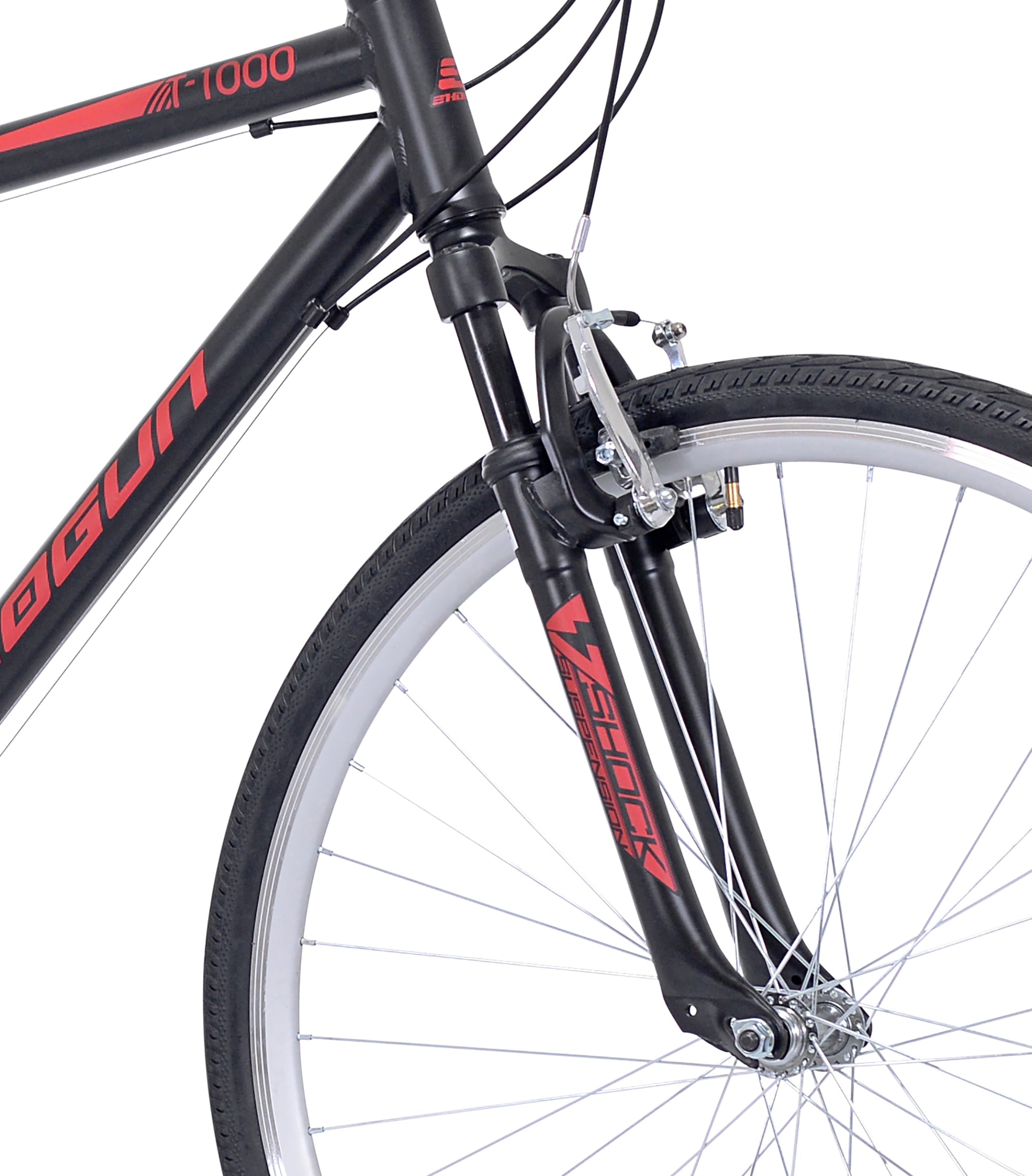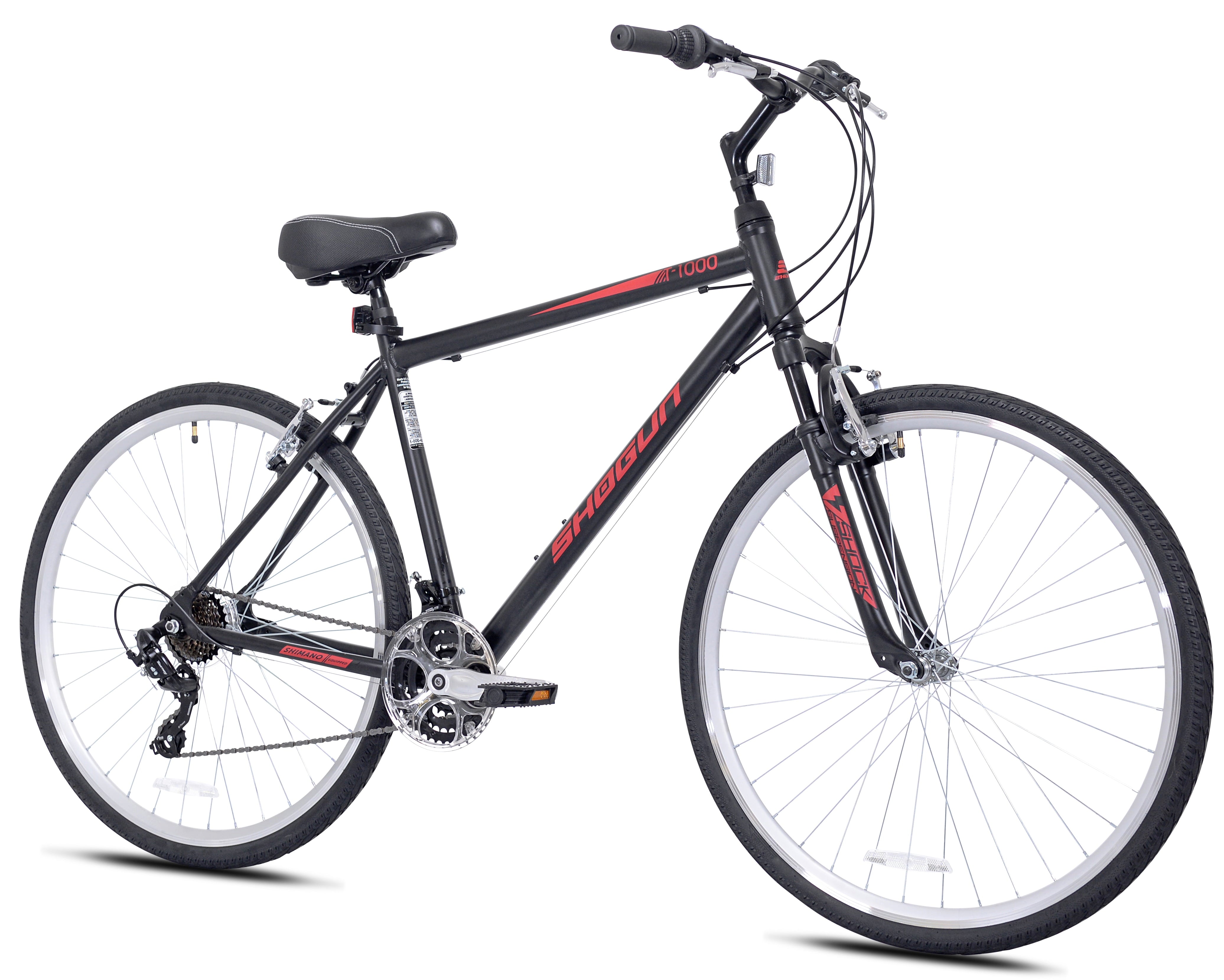 The Shogun T1000 bicycle is a great option for your daily commute or neighborhood adventures. Built with a lightweight aluminum frame and an alloy crown front suspension fork, rest assured that you’re getting a smooth and comfortable ride. The 21 speed drivetrain is equipped with twist shifters, allow you to effortlessly change gears and tackle a wide variety of terrains. The front and rear linear side pull brakes provide reliable stopping power in any weather conditions. Plus, with the deluxe padded saddle and quick-release adjustable seat post, you can customize your ride for maximum comfort. Designed with lightweight alloy wheels and smooth hybrid road tires, the Shogun T1000 is both efficient and nimble. Whether you’re commuting to work, running errands, or simply enjoying a leisurely ride around the neighborhood, the 700c Shogun T1000 has you covered.