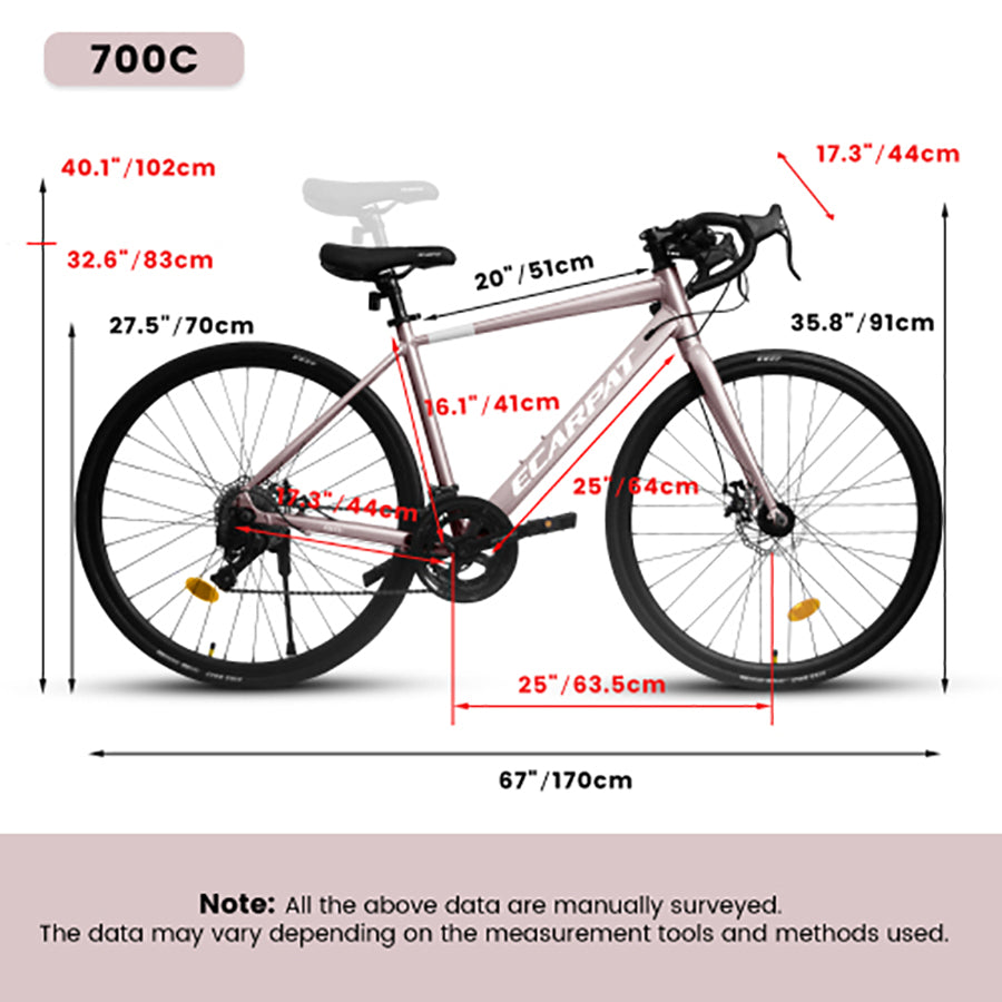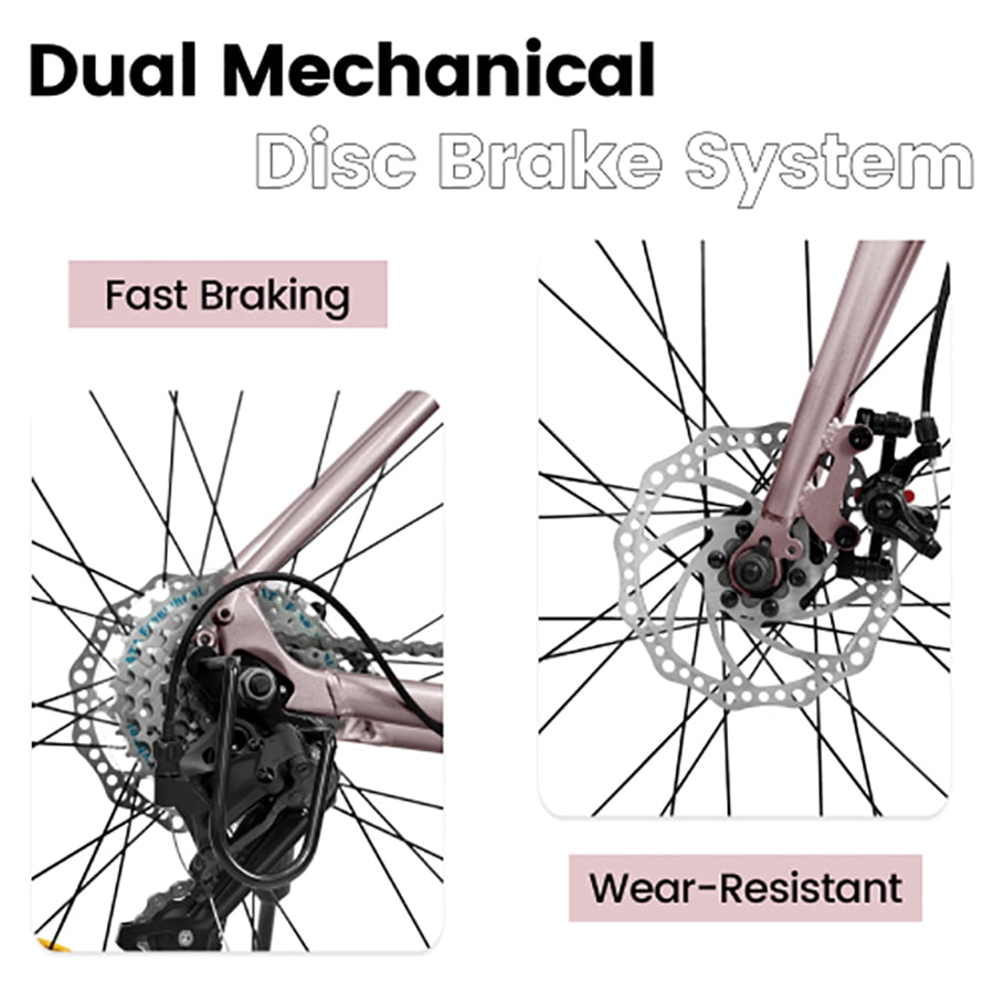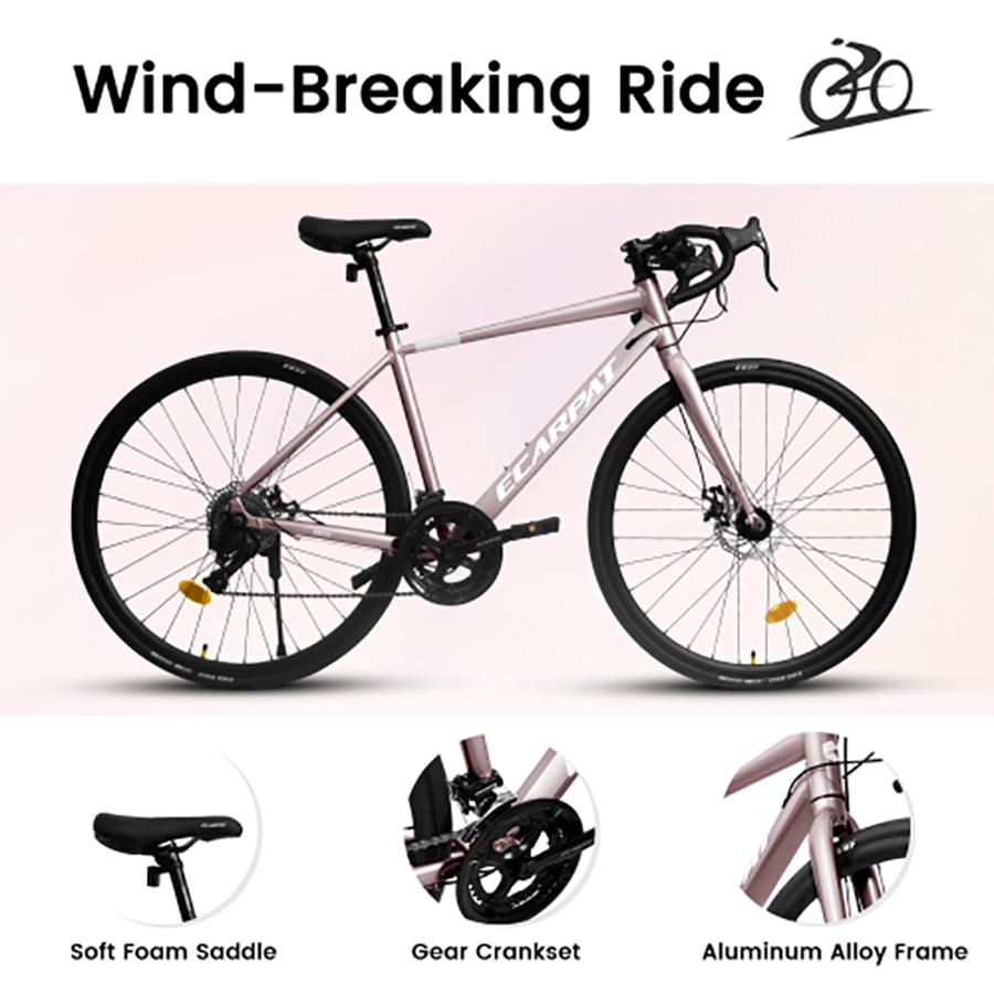 700C Road Bike, 16-Speed Outdoor Bike Disc Brakes, Light Weight Aluminum Frame, Racing Bike City Commuting Road Bicycle for Women
